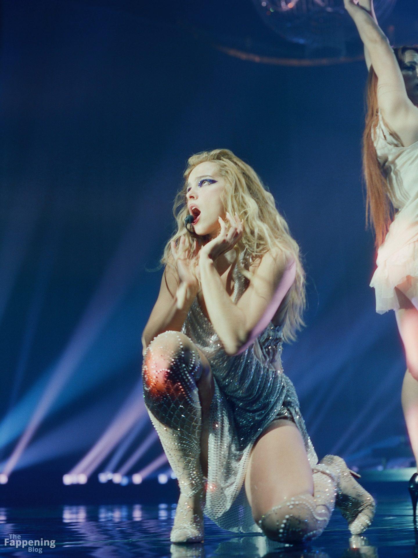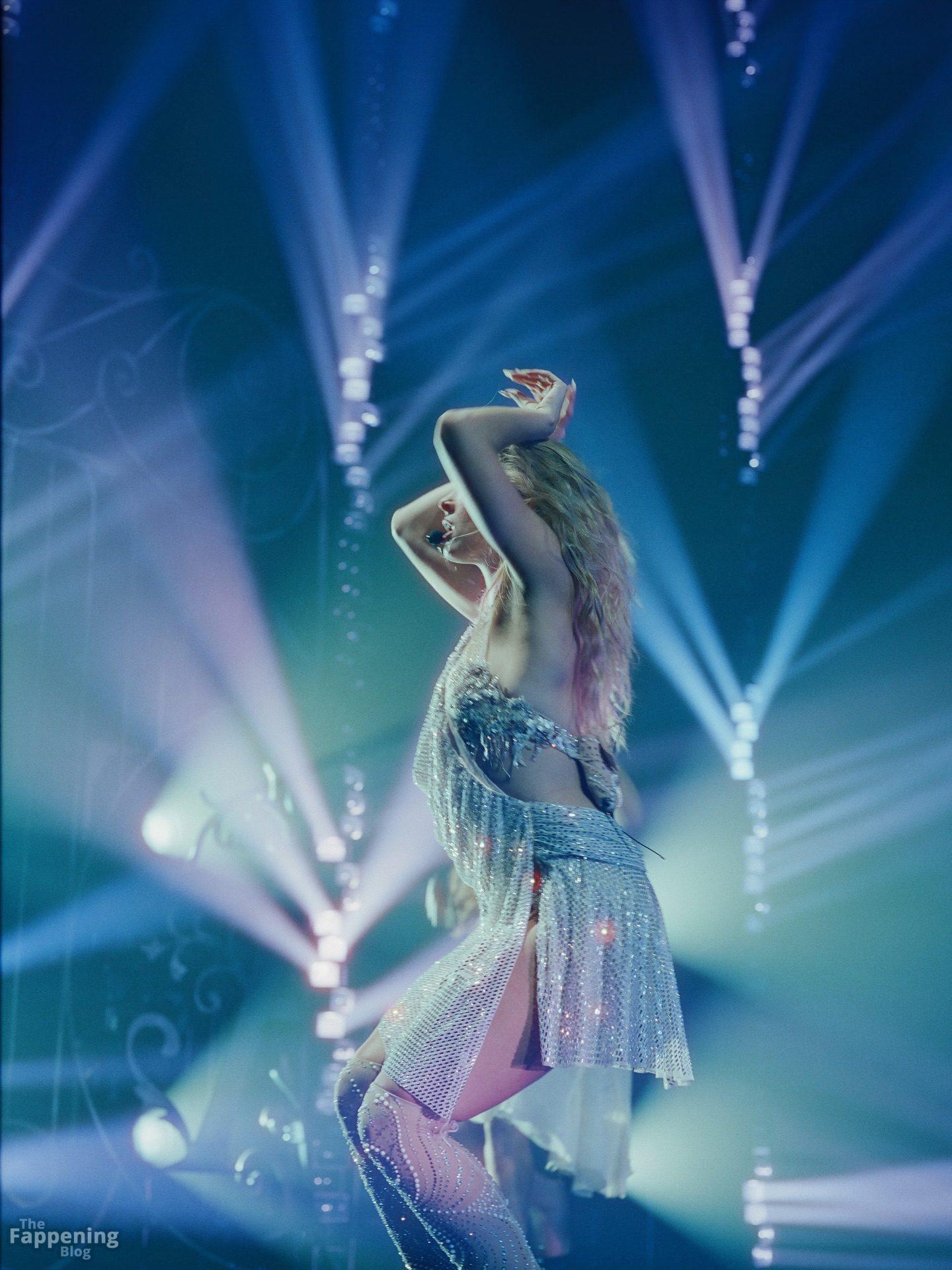 Addison Rae stripped down to a sheer bra, panties, and lace garters for her tour pics, flashin’ her ass, legs, abs.