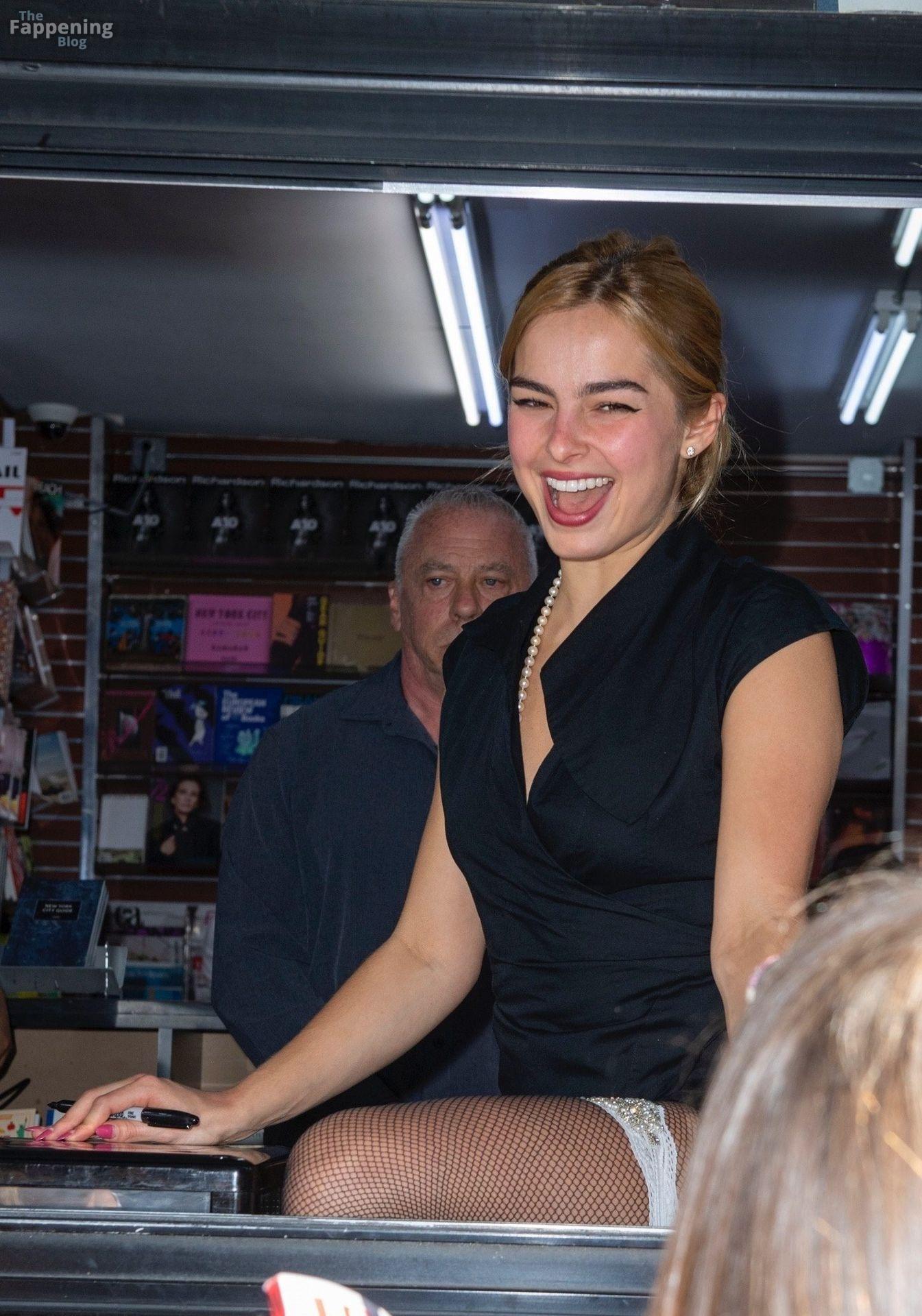 Addison Rae showed off her thighs, lace garter, and sexy legs at her NYC magazine signing.