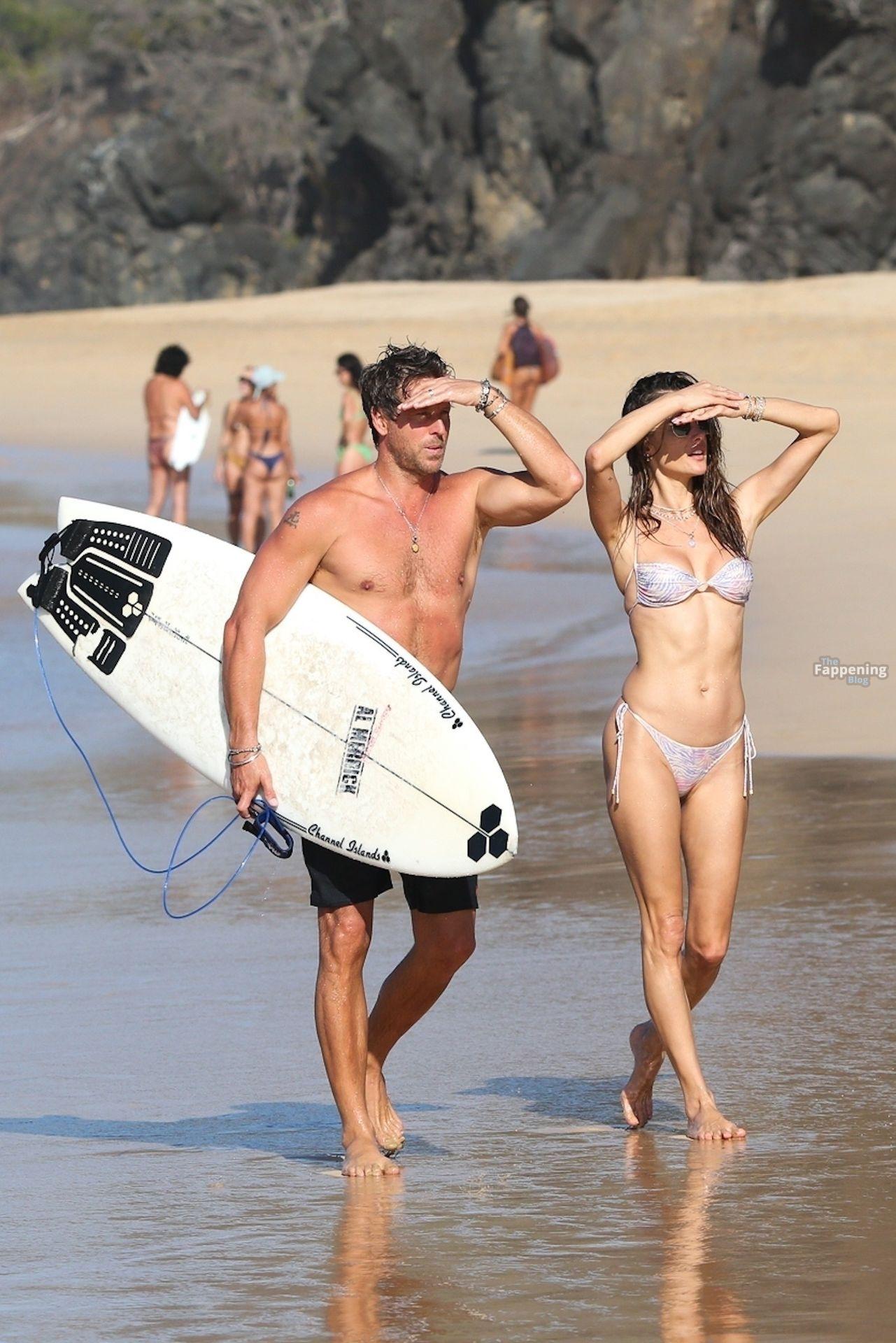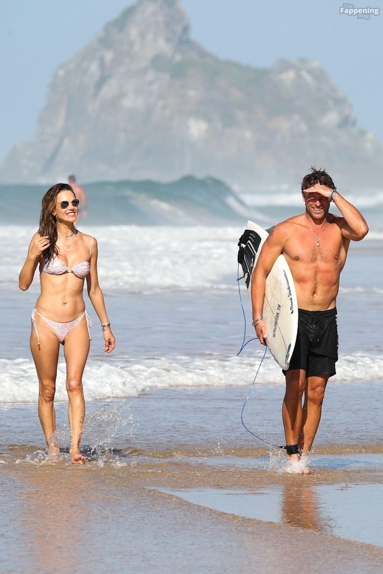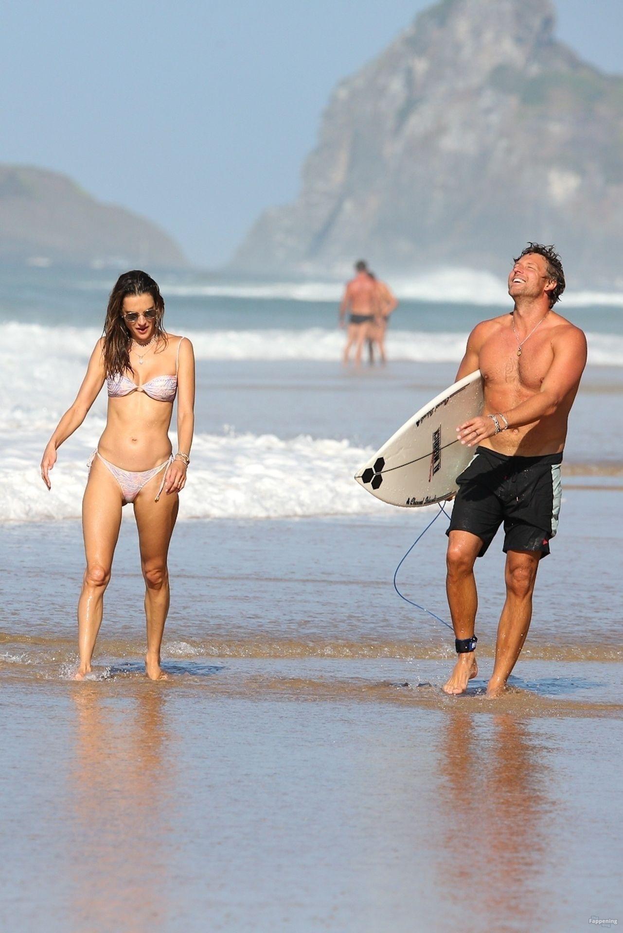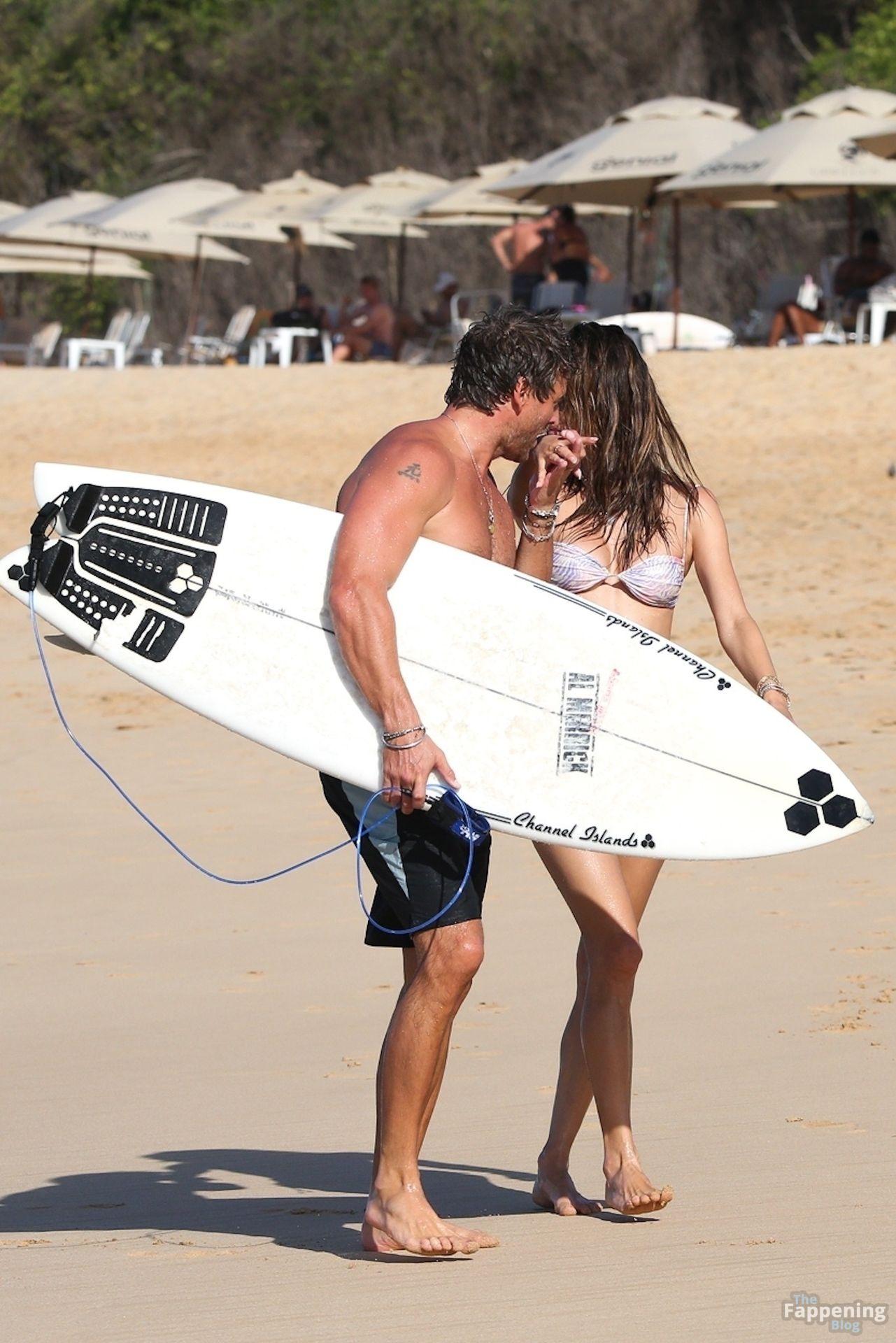 Hot supermodel Alessandra Ambrosio was spotted soakin’ up the sun while her boyfriend Buck Palmer surfs at Cacimba do Padre beach in Fernando de Noronha. Alessandra and Buck packed on the PDA in the waves before takin’ dip in the ocean. Alessandra then relaxed on the beach as she watched her BF hit the waves on his surfboard.