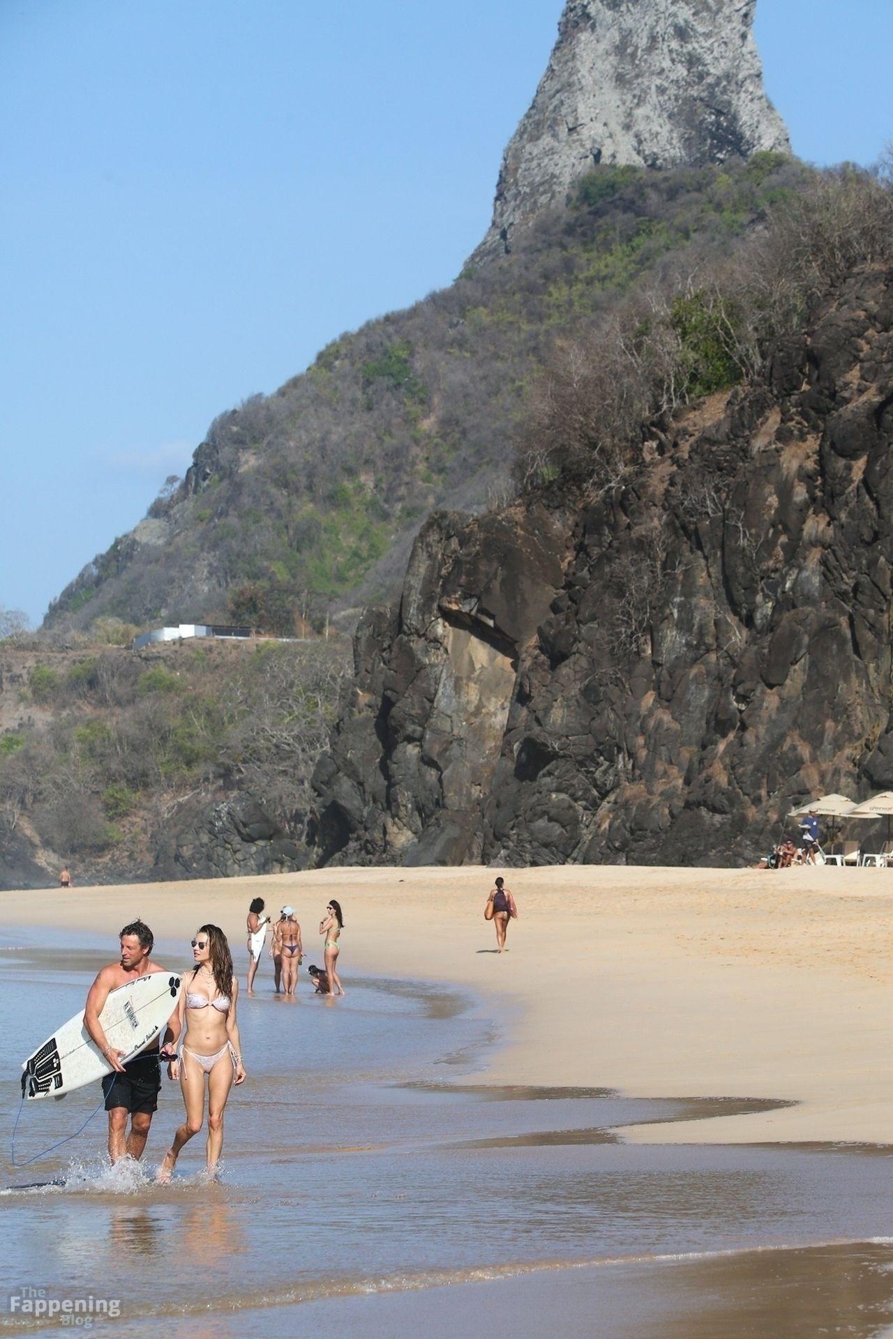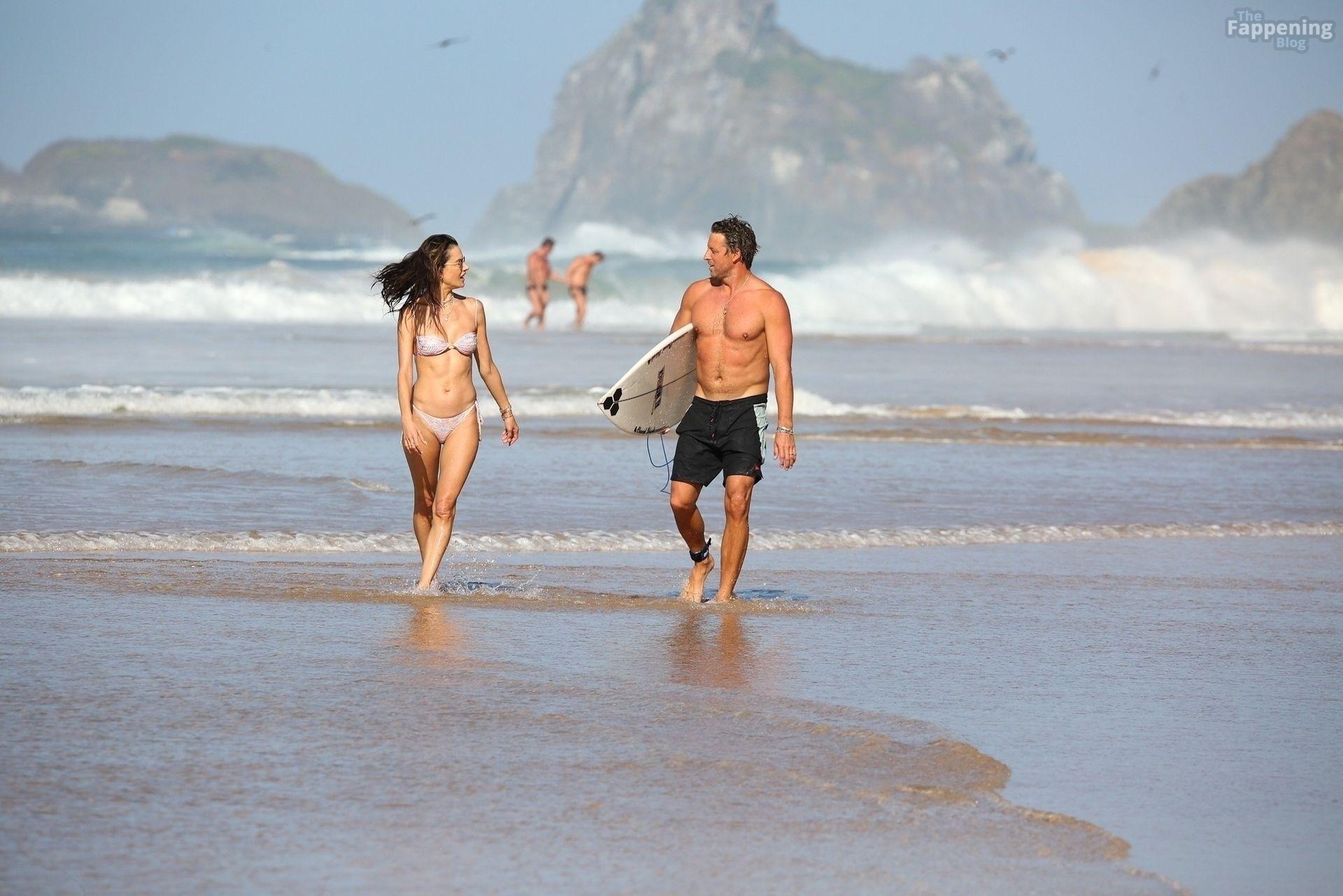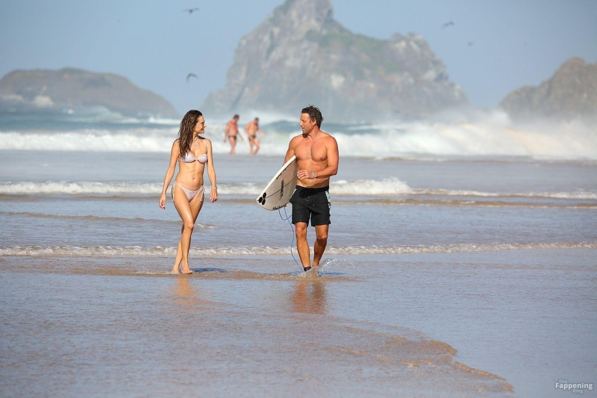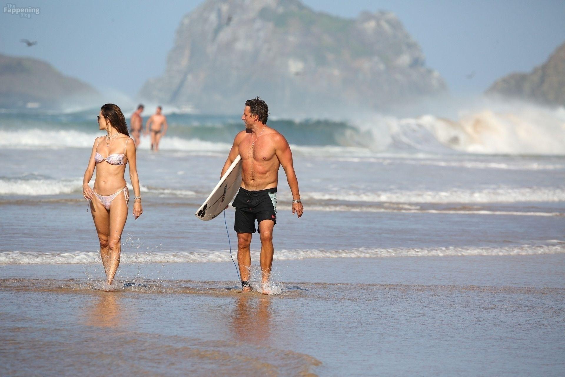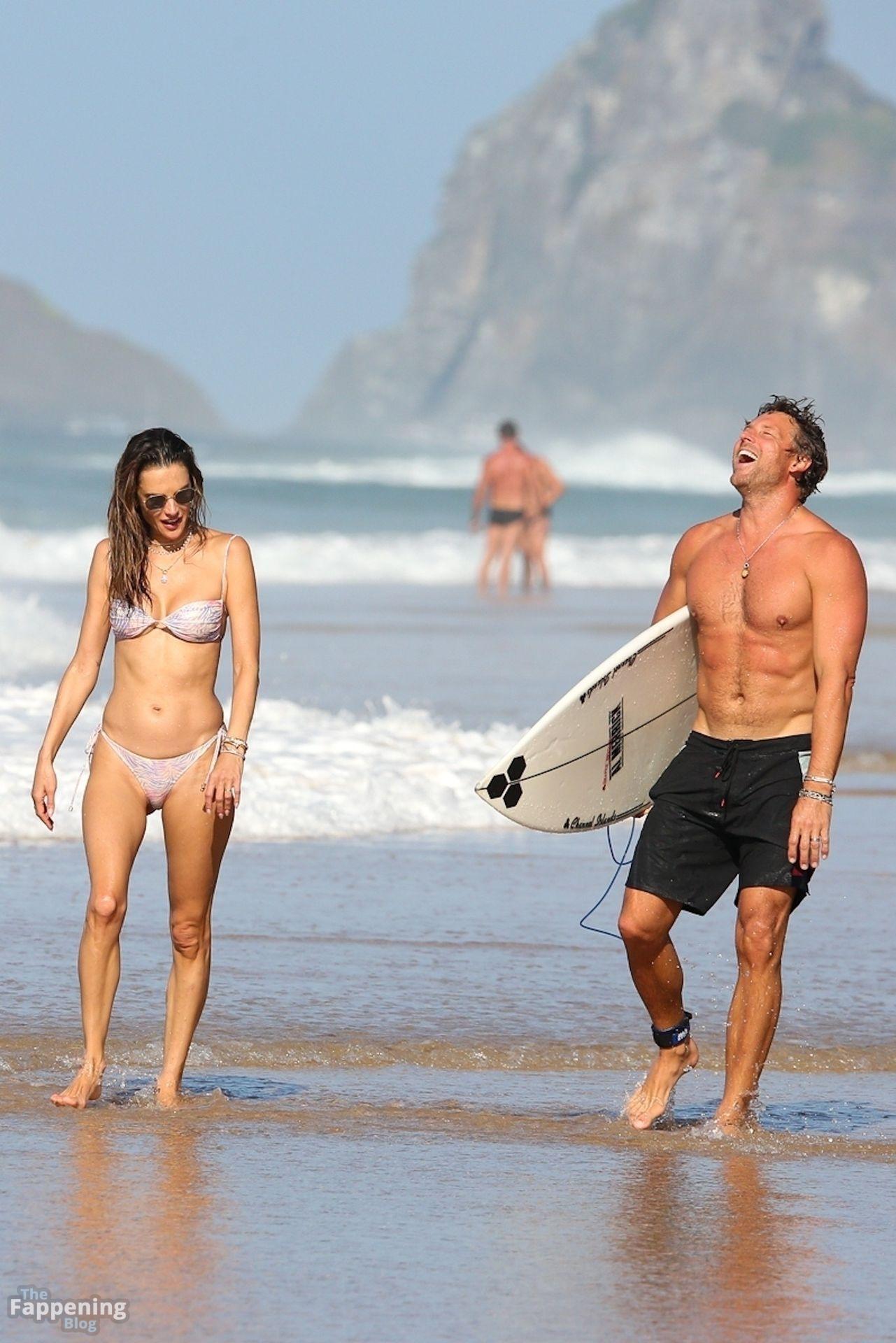 Hot supermodel Alessandra Ambrosio was spotted soakin’ up the sun while her boyfriend Buck Palmer surfs at Cacimba do Padre beach in Fernando de Noronha. Alessandra and Buck packed on the PDA in the waves before takin’ dip in the ocean. Alessandra then relaxed on the beach as she watched her BF hit the waves on his surfboard.