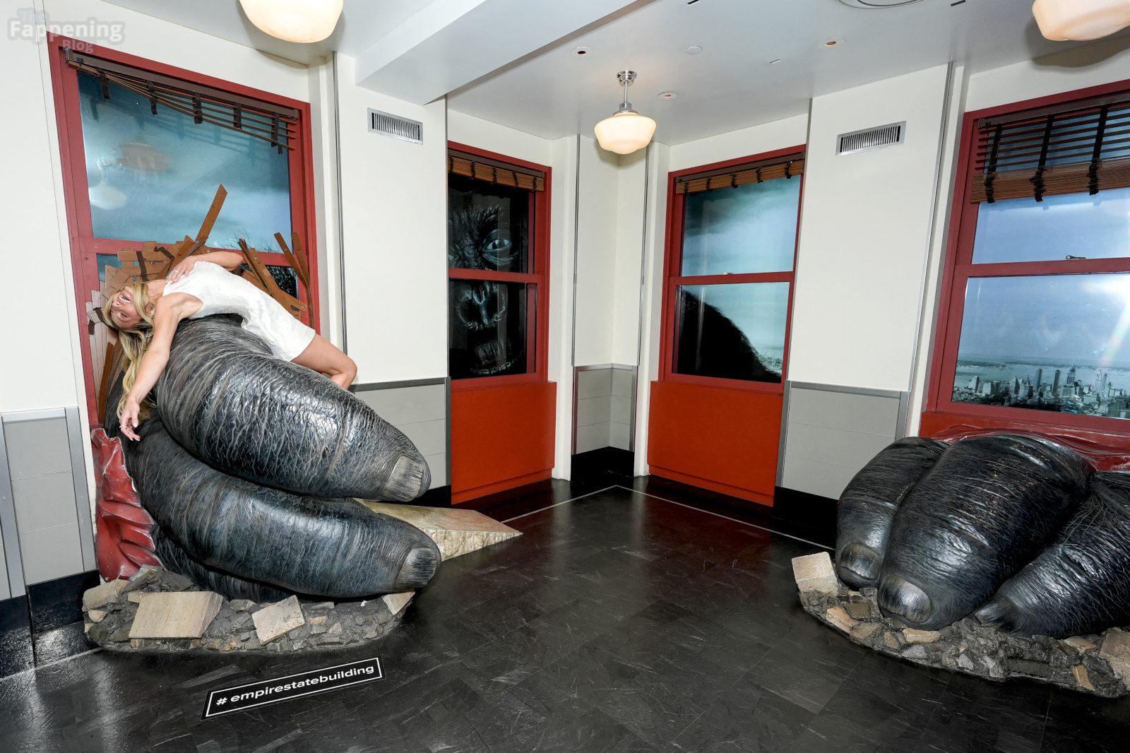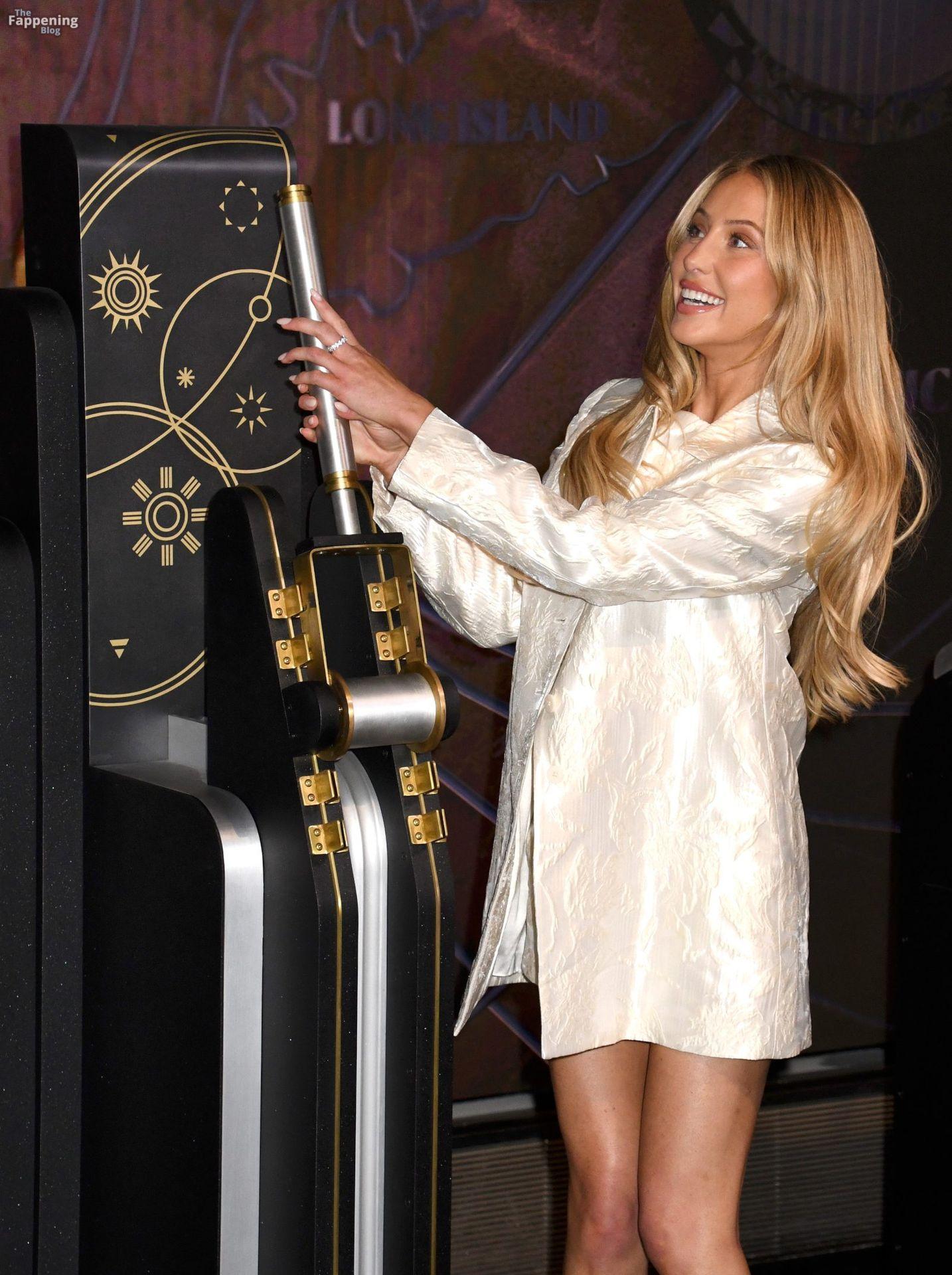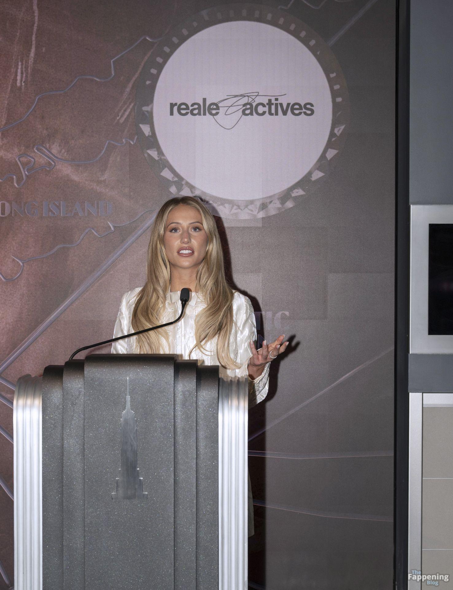 Alix Earle lights the Empire State Building to celebrate the launch of her new brand, Reale Actives, in support of the Mount Sinai Mammovan in New York City.