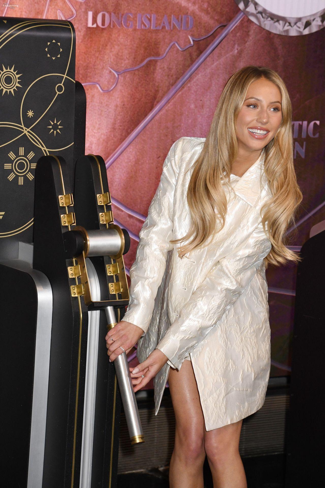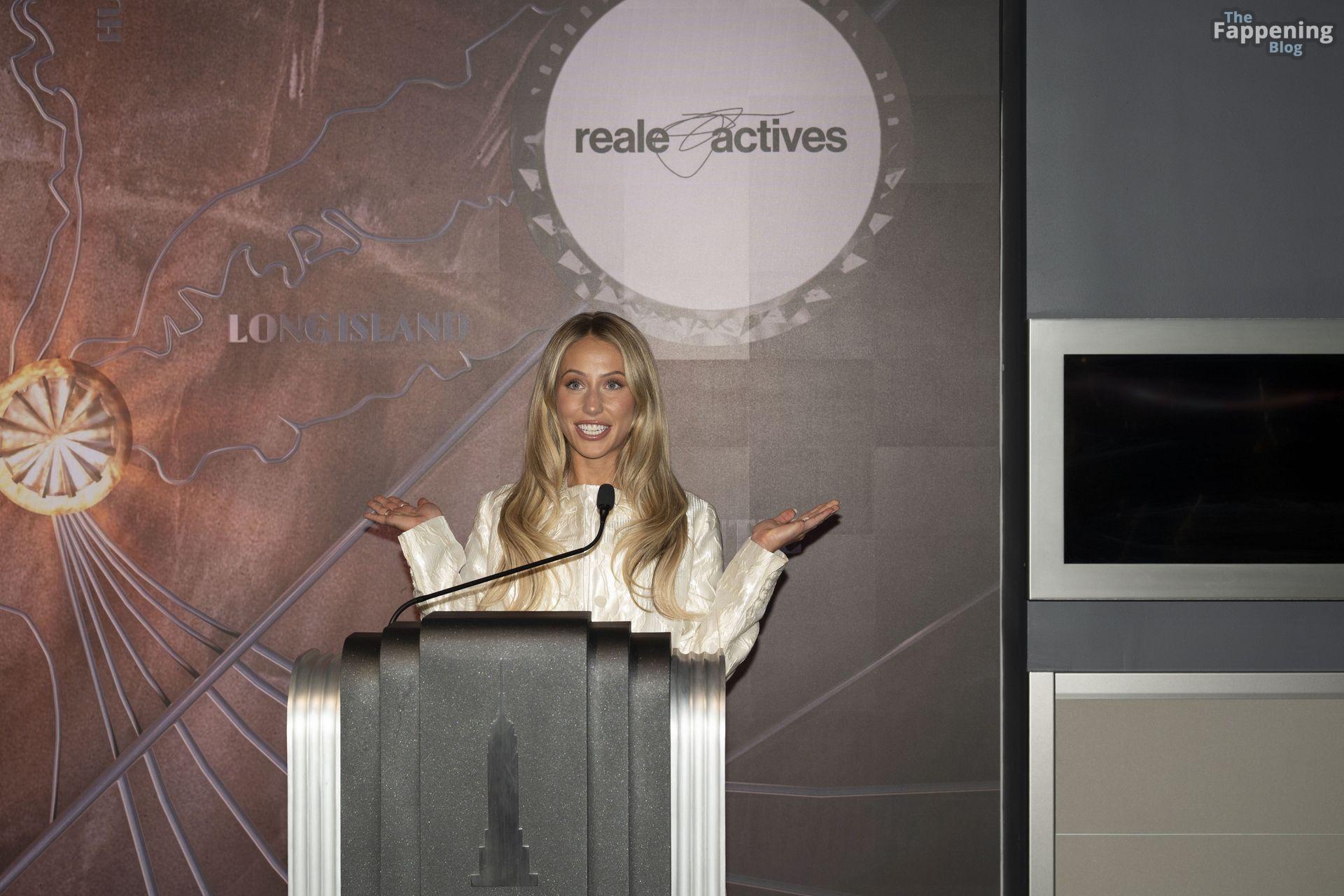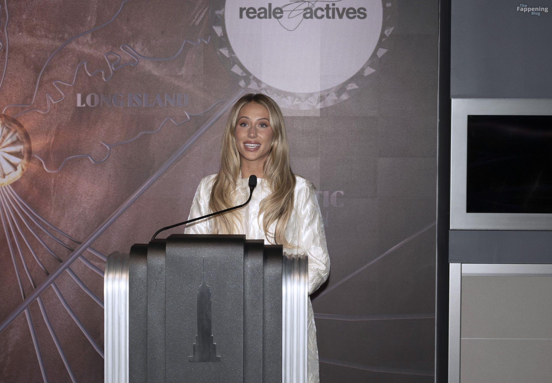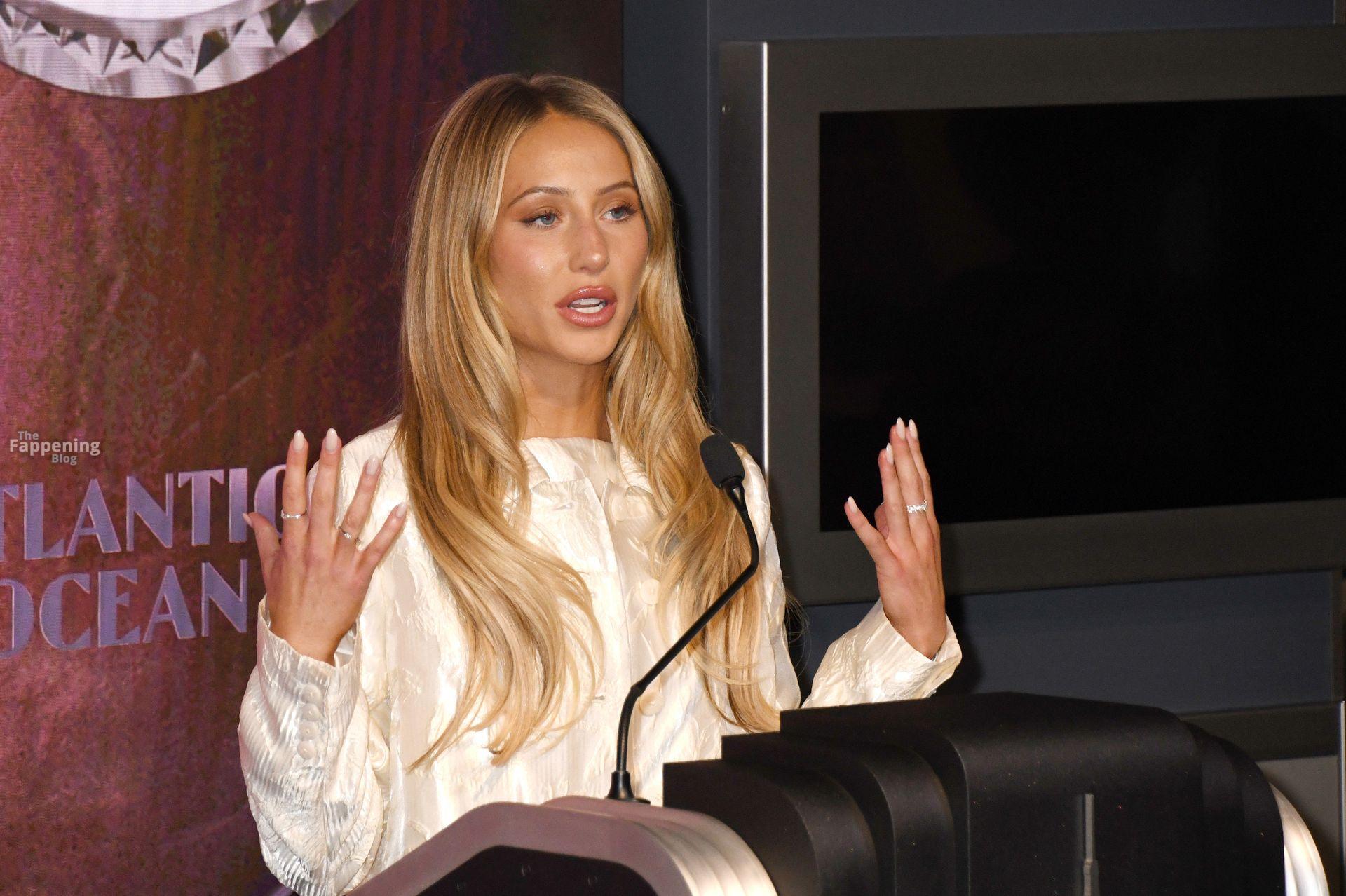 Alix Earle lights the Empire State Building to celebrate the launch of her new brand, Reale Actives, in support of the Mount Sinai Mammovan in New York City.