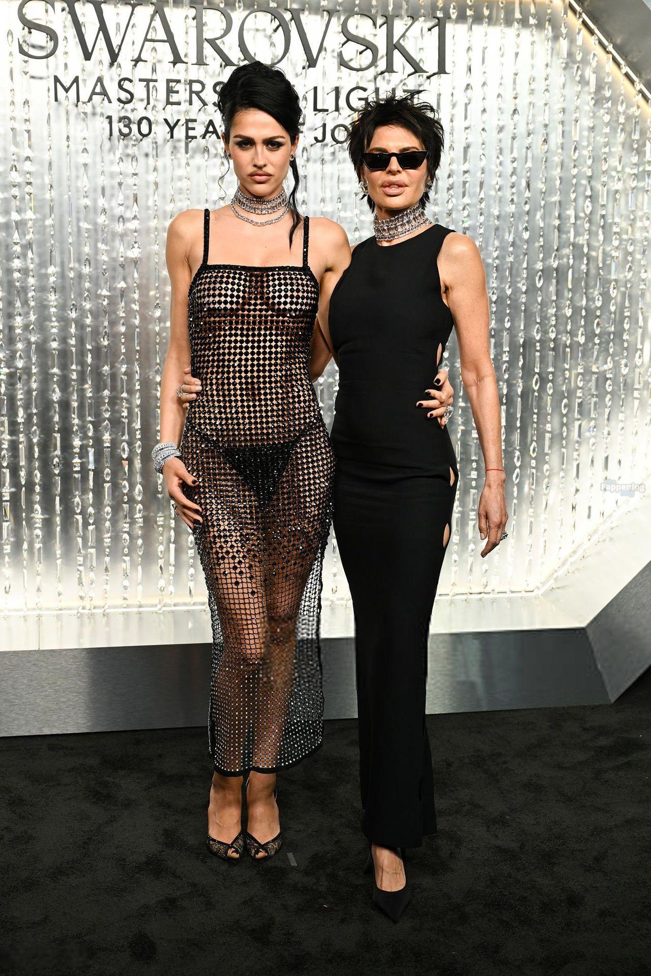 The 24-year-old model flashed her chest and black thong underneath the see-through gown, paired with lace peep-toe pumps and a glittery choker. She posed with her mom, Lisa Rinna, and other stars like Kylie Jenner and Emily Ratajkowski at the event at 6400 West Sunset Boulevard.
