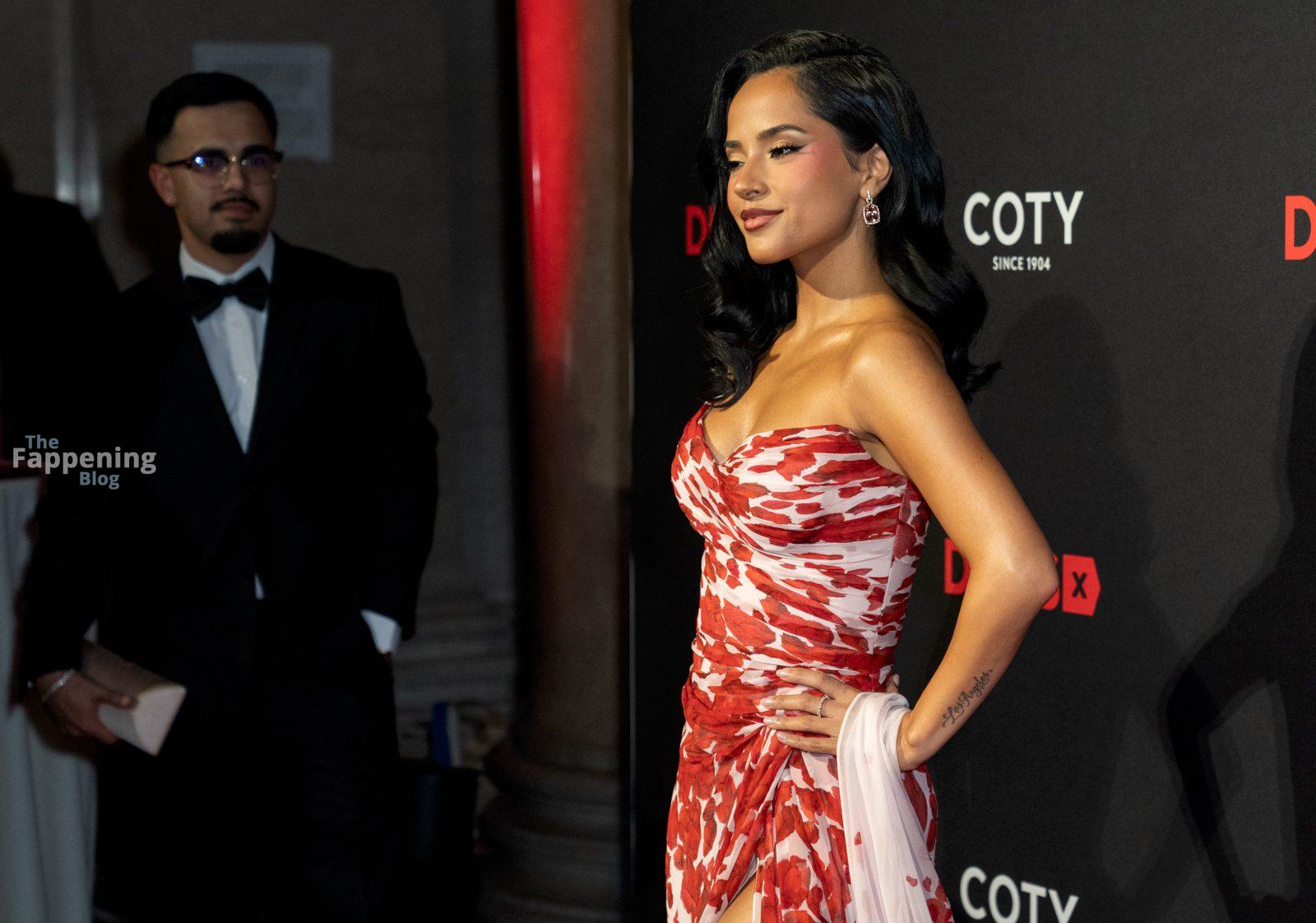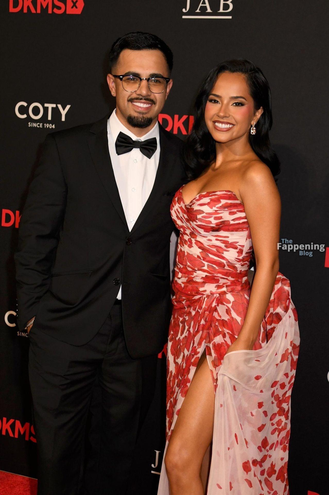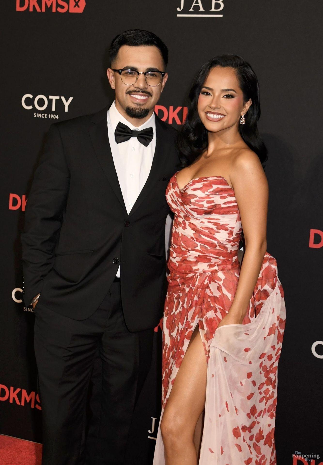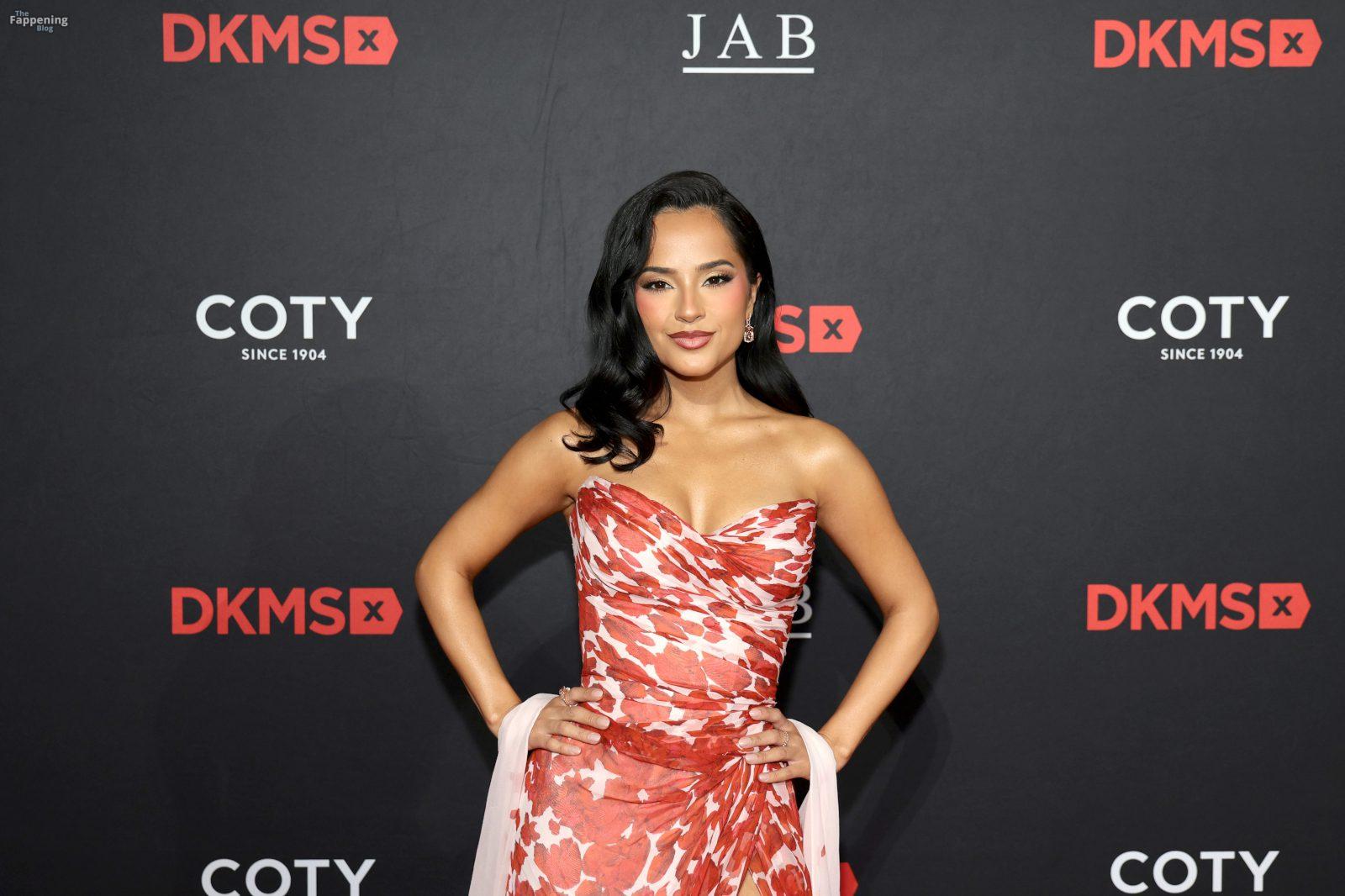 Singer Becky G showed off her cleavage and thigh in a strapless gown at the DKMS Gala in NYC.