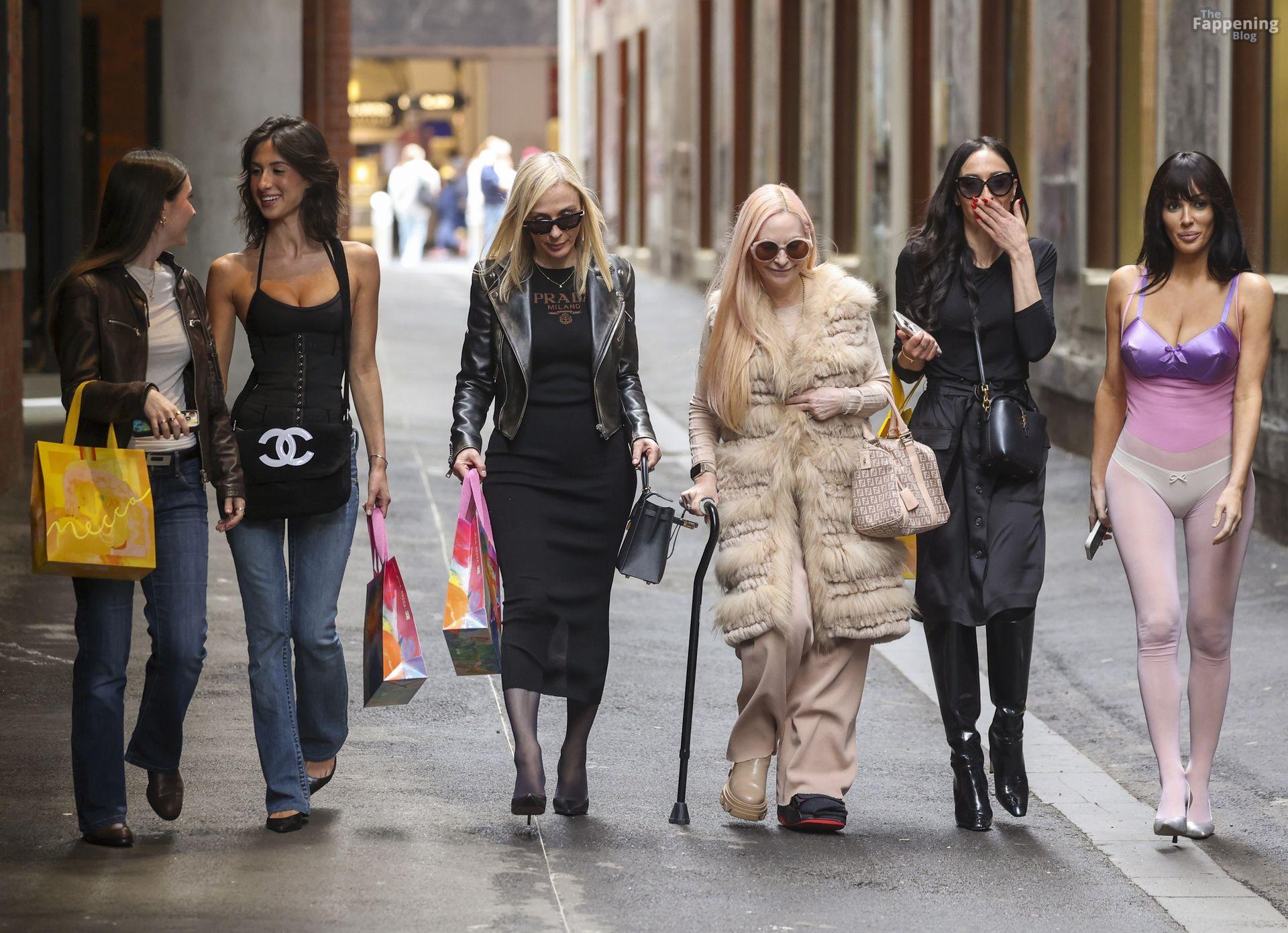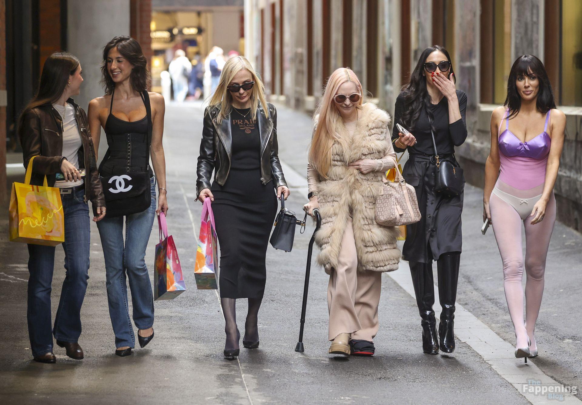 Bianca Censori was spotted out in Melbourne, Australia, on a family shopping trip, wearin’ a sheer purple bodysuit that showed off her goods. She paired it with a metallic purple bra and white underwear, walkin’ with her mom Alexandra, sister Angelina, and a few relatives. They hit up Mecca for a beauty haul and strolled the CBD laneways, lookin’ relaxed despite the rain.