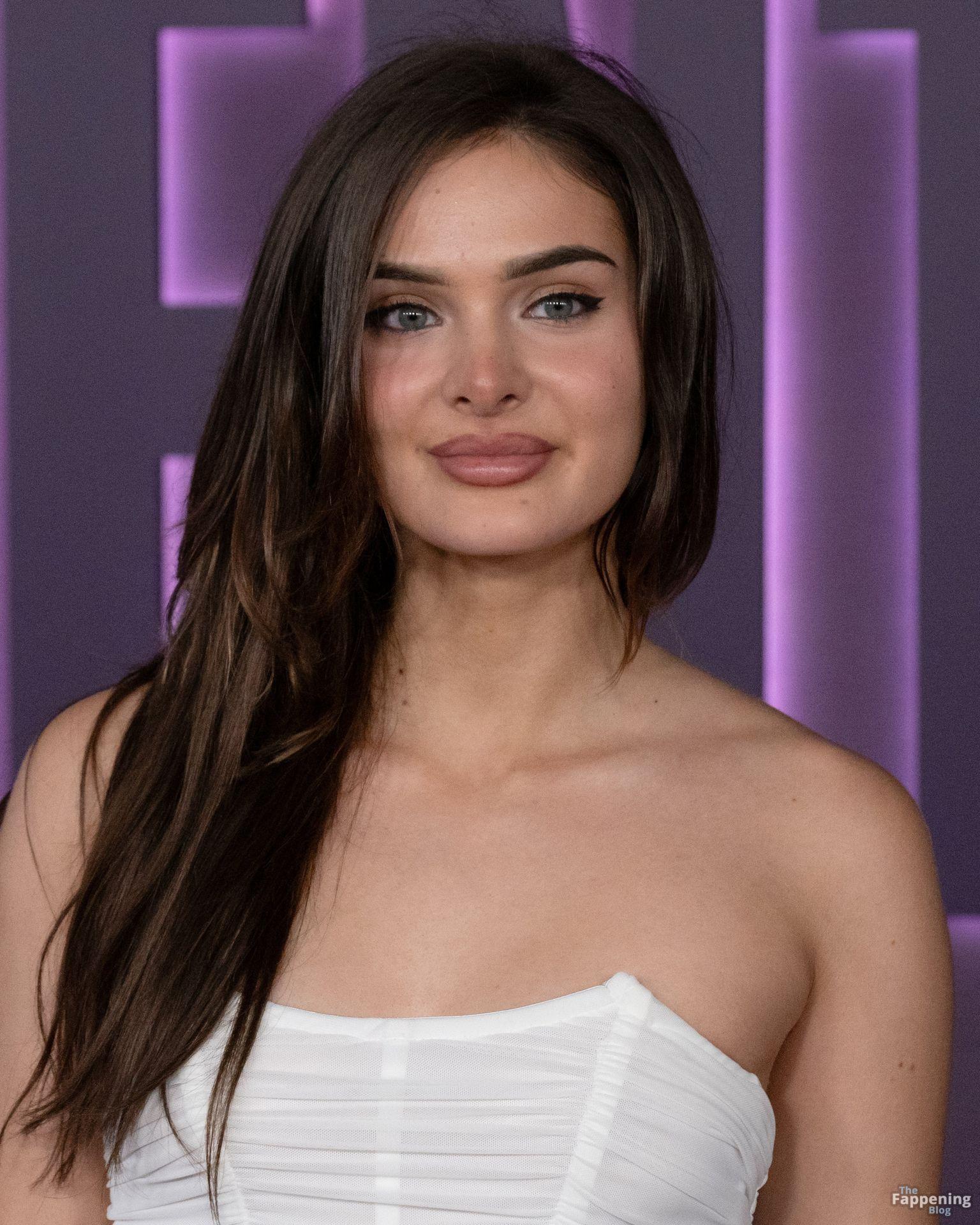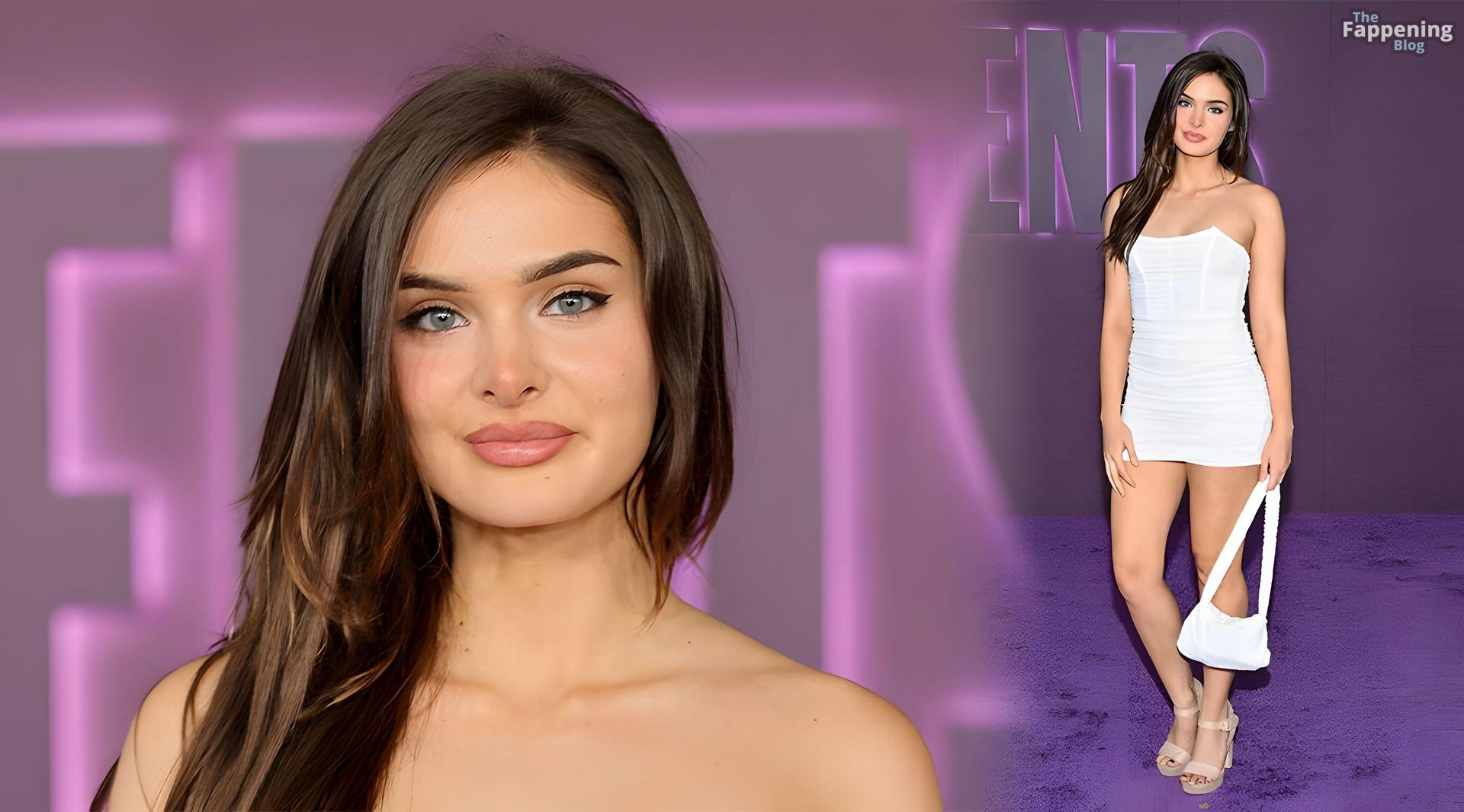 American actress Brighton Sharbino attends Hulu’s “The Testaments” red carpet premiere and shows off her sexy legs wearing a tight white mini dress.