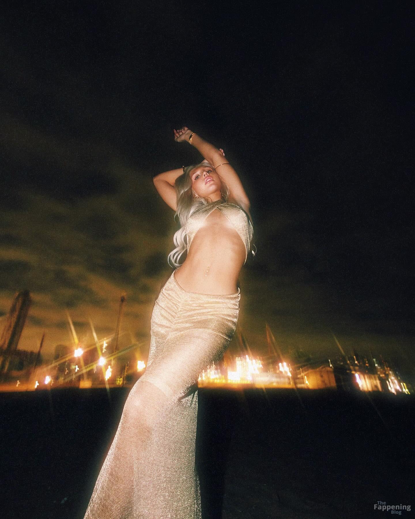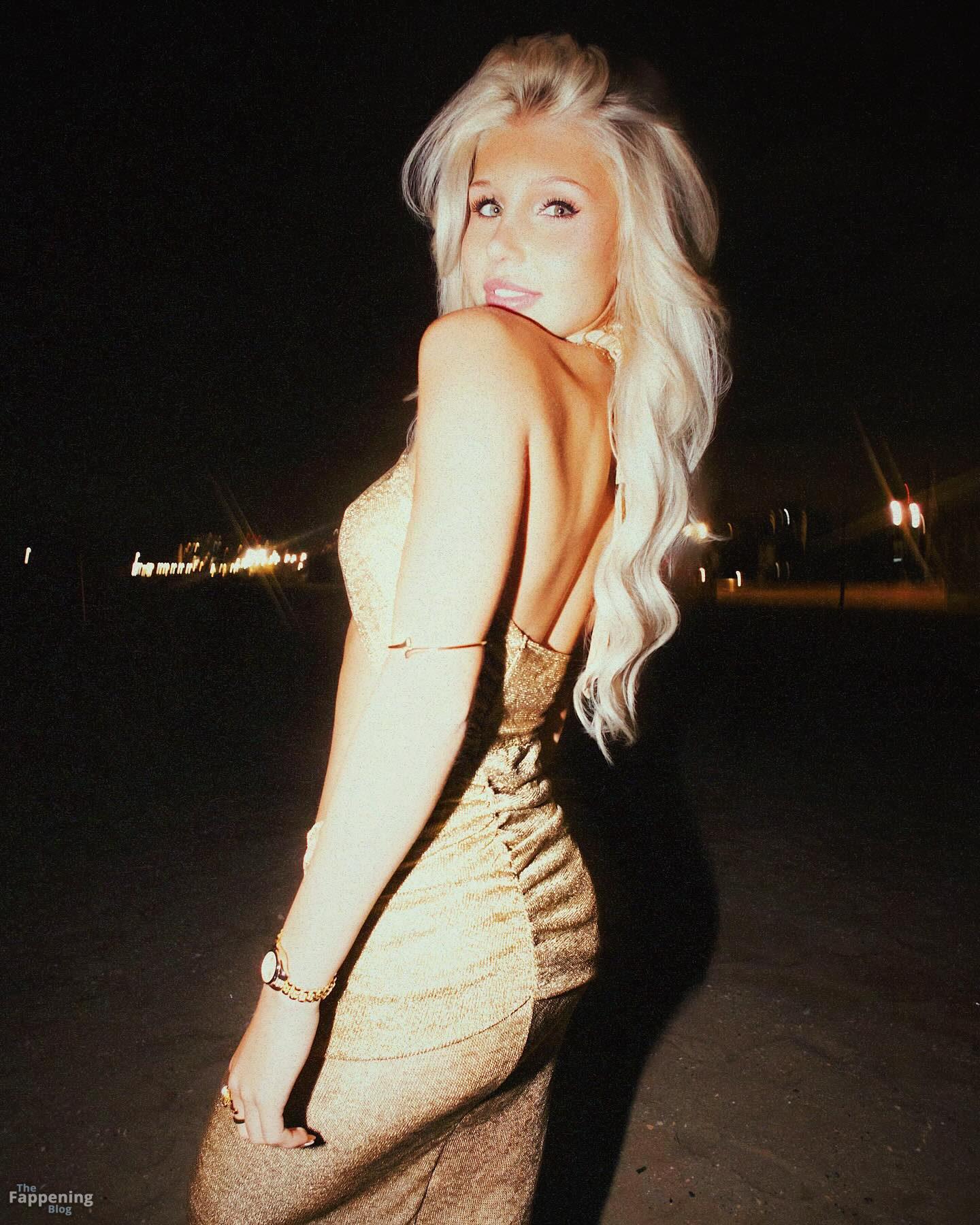 Brooklyn Riley shines in a gold dress on the beach at night. Peep her social media shoot below.