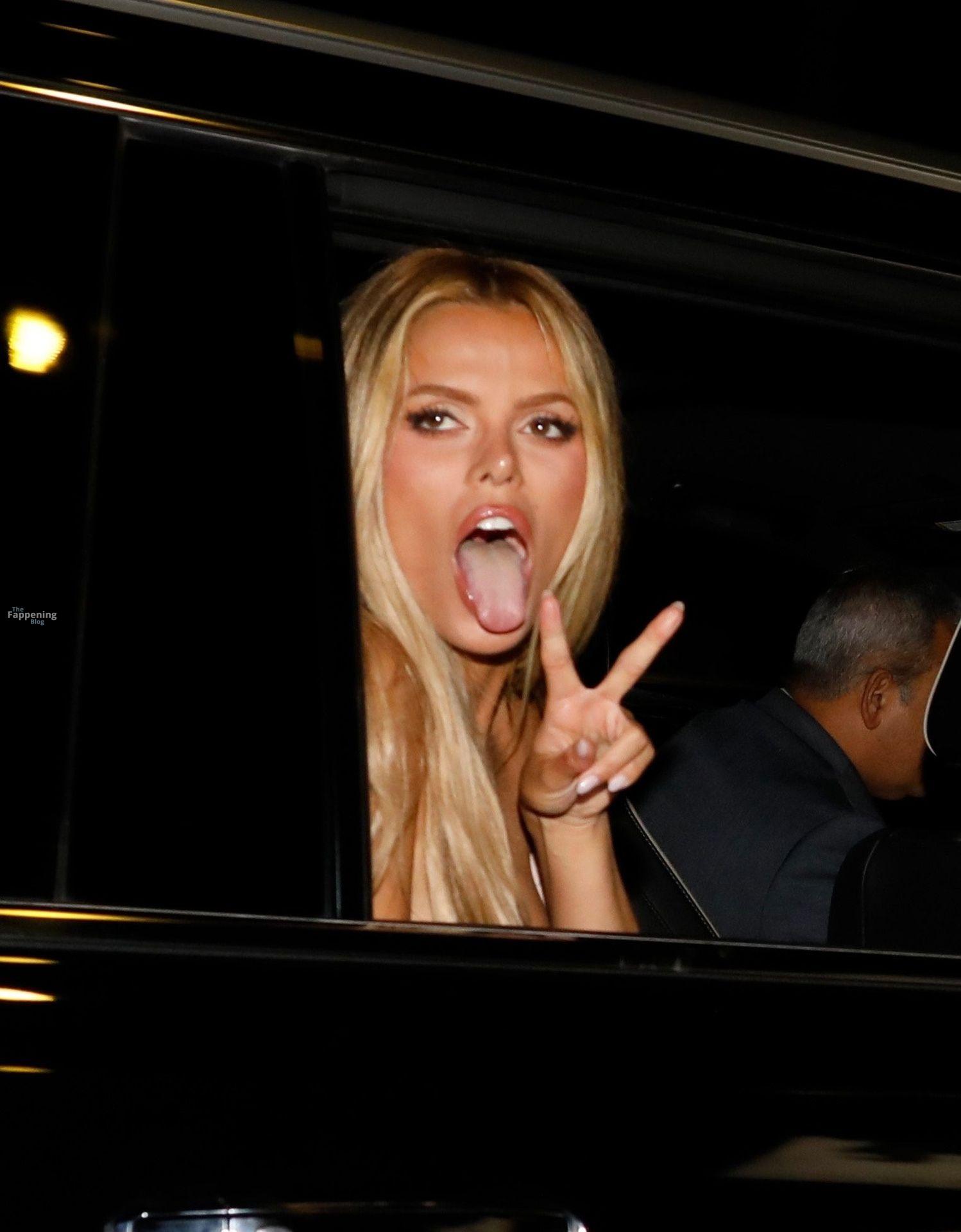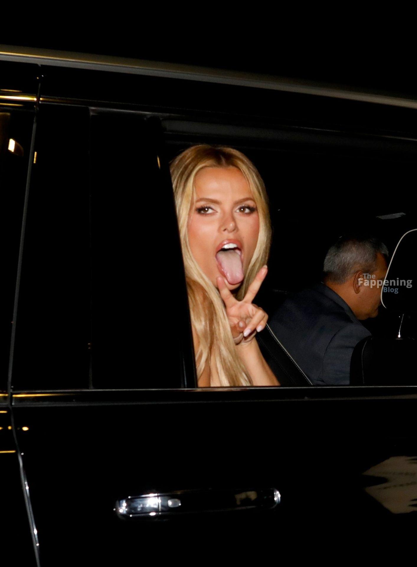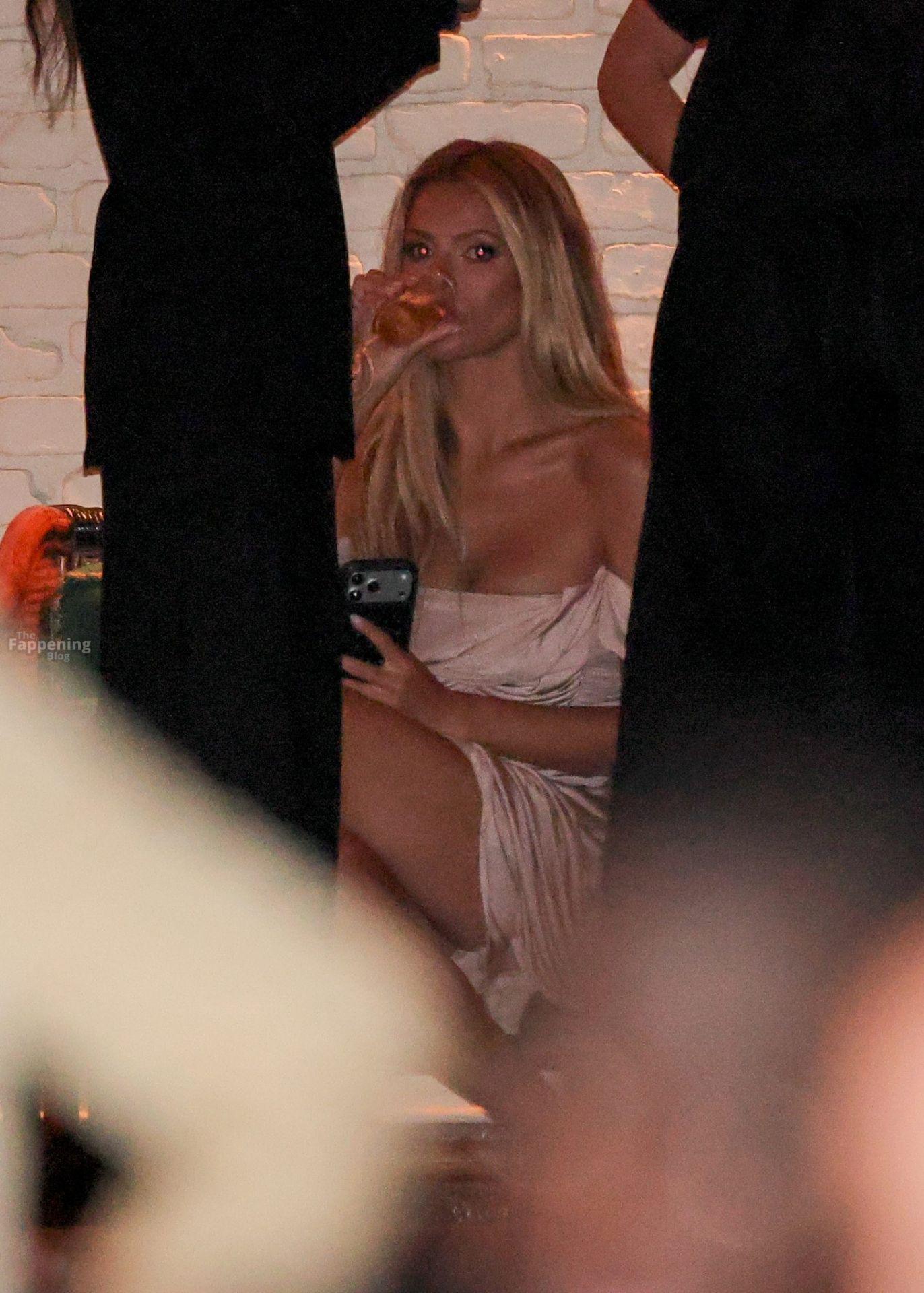 Check out Brooks Nader’s cleavage and sexy legs in a pink dress leaving the “Euphoria” afterparty.