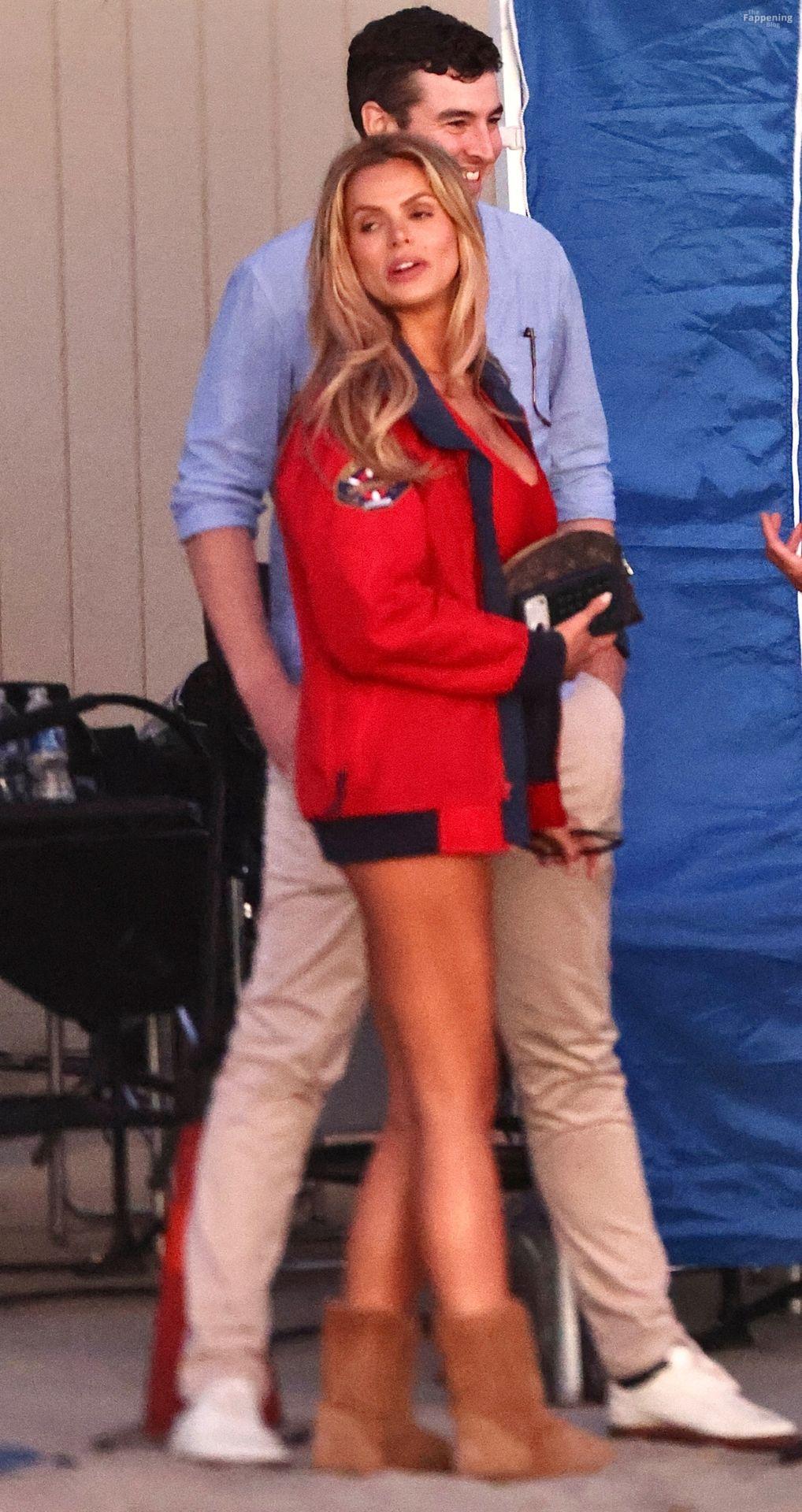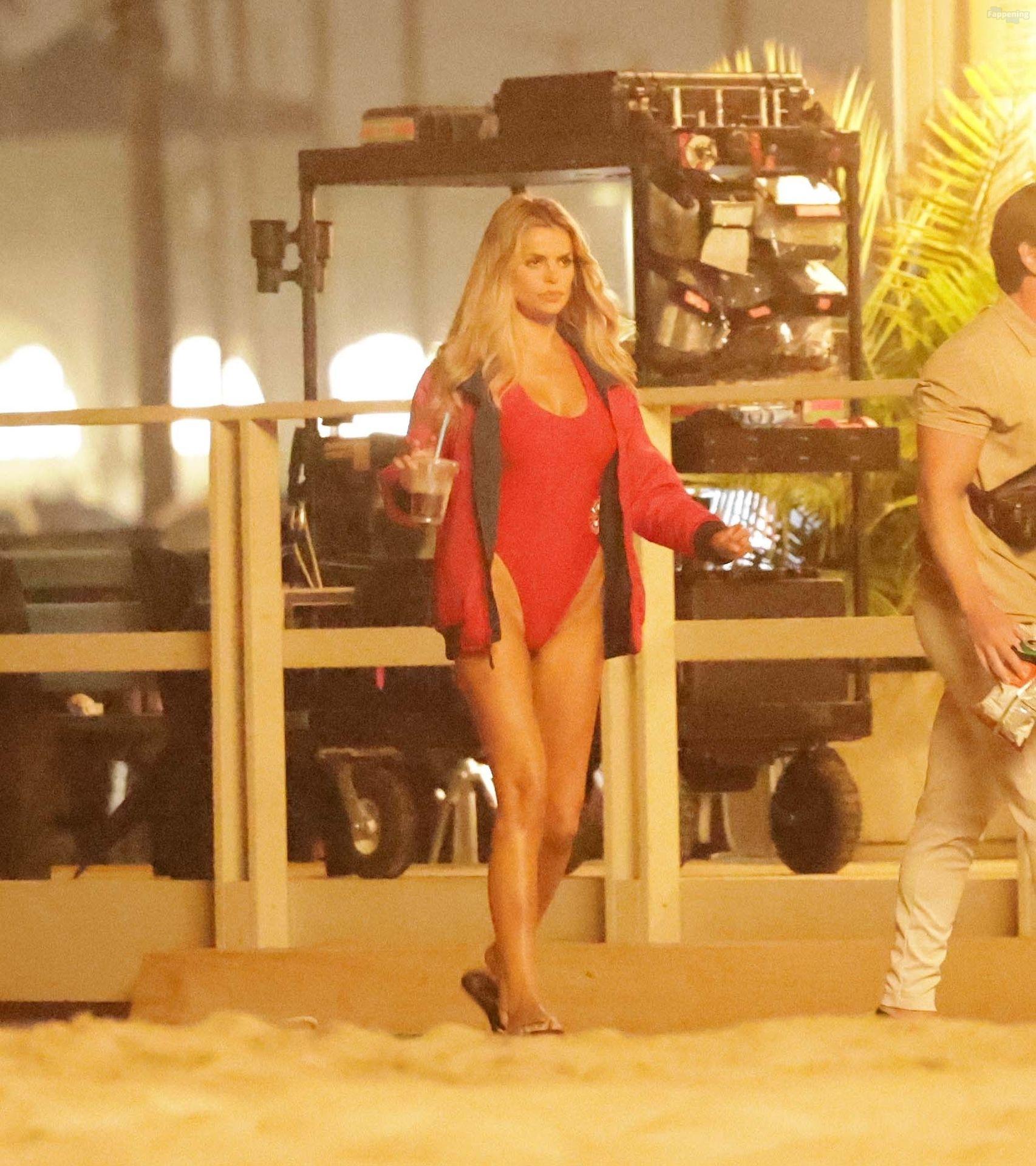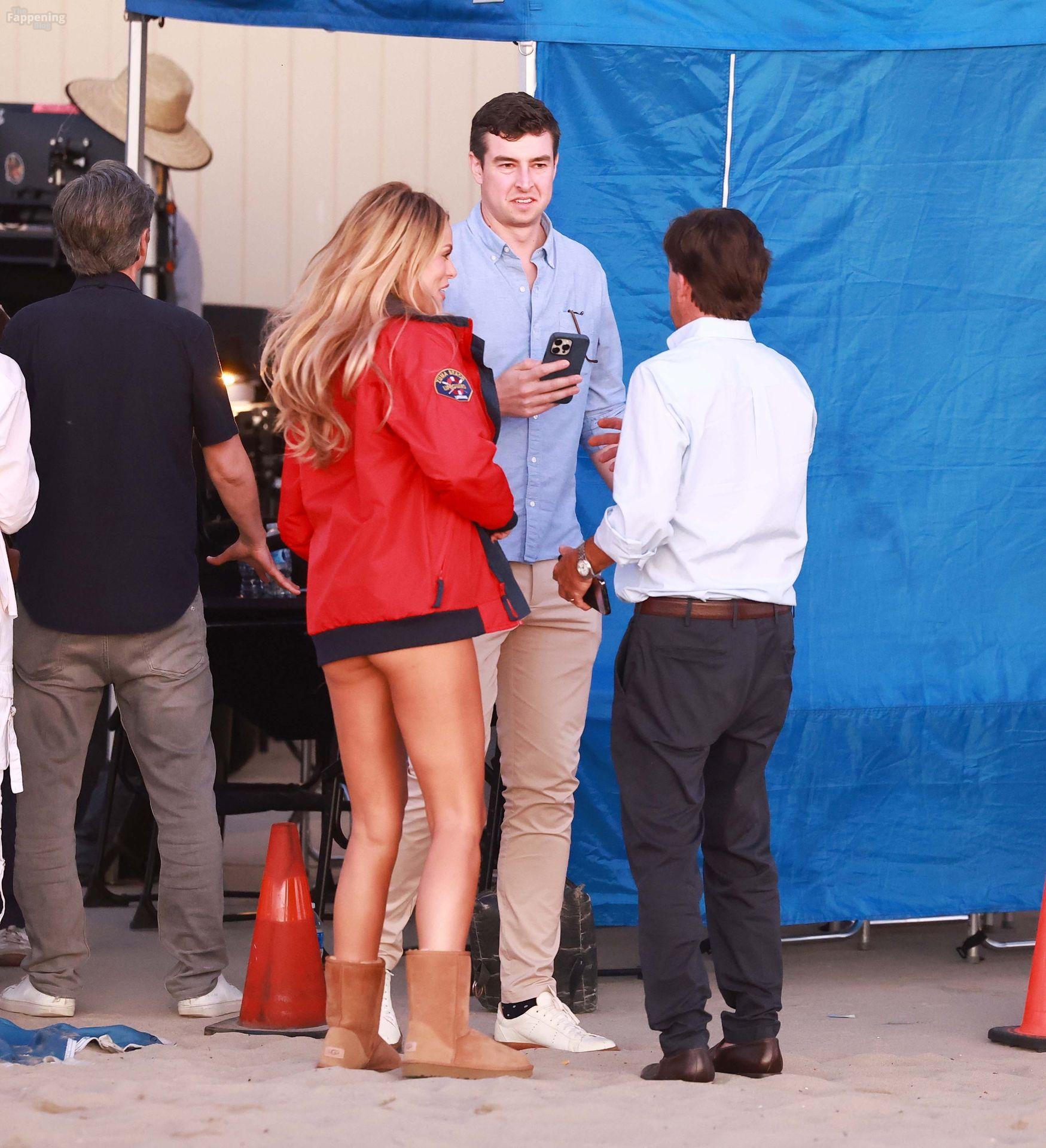 Brooks Nader was spotted on the set of Baywatch in Venice Beach, stepping into the iconic red swimsuit and lifeguard jacket.