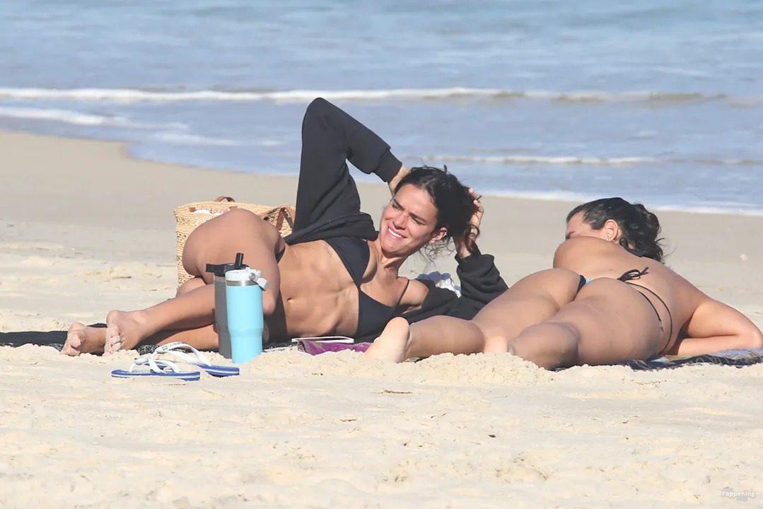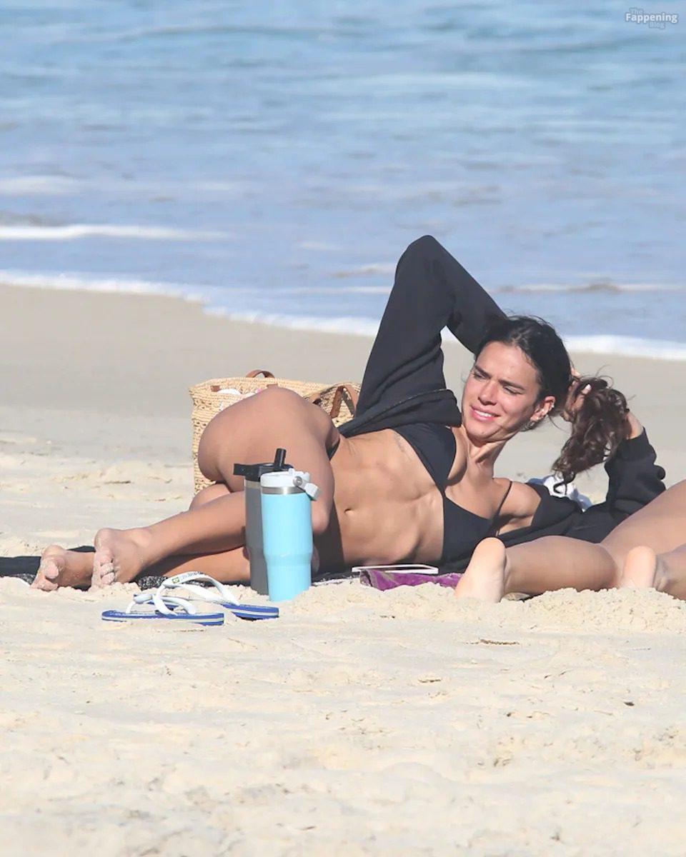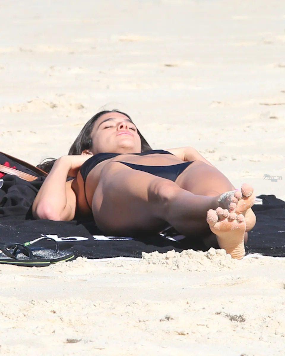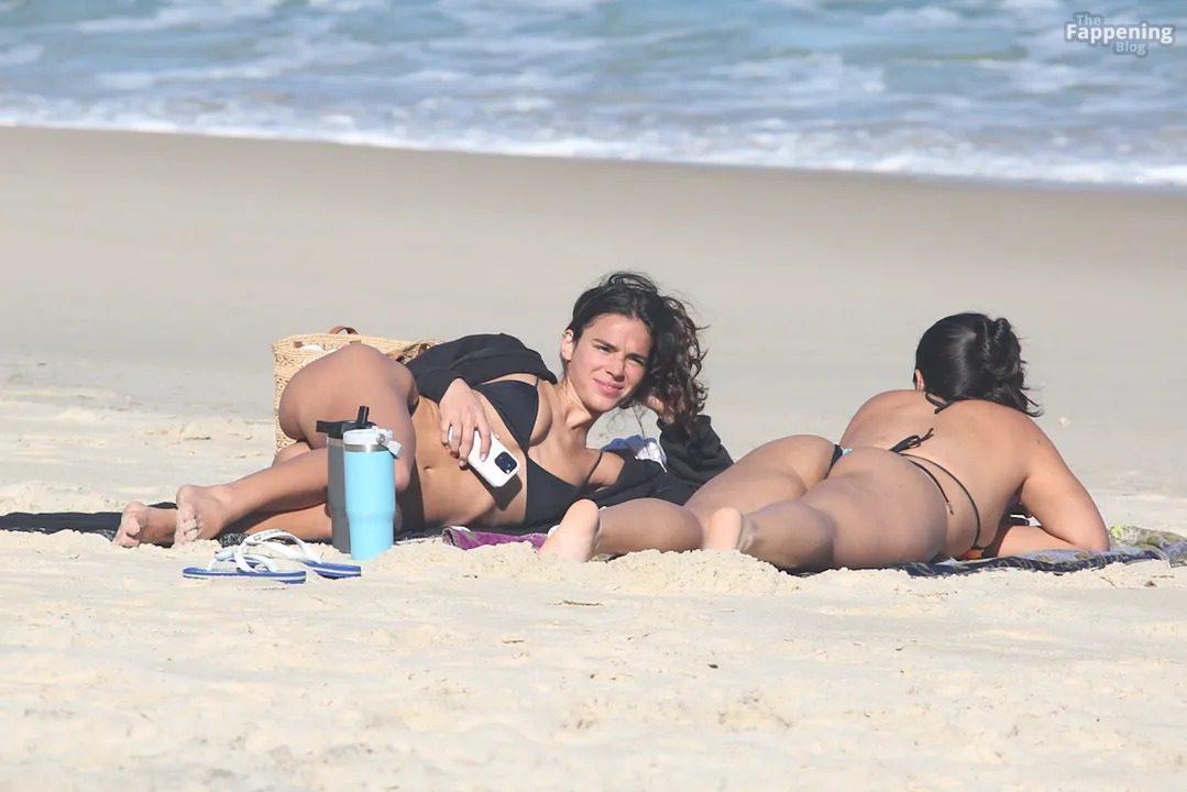 Bruna Marquezine shows off her sexy figure as she hits São Conrad Beach in a black thong bikini.