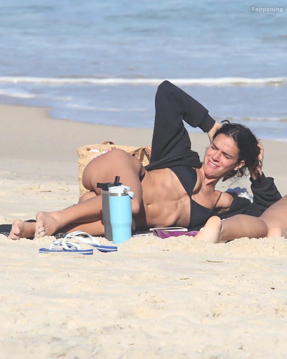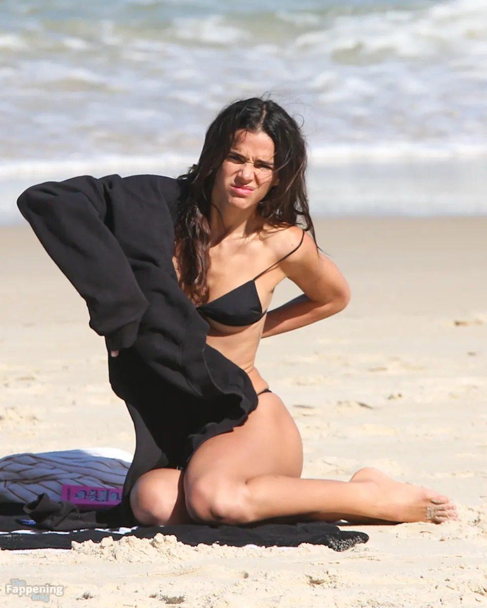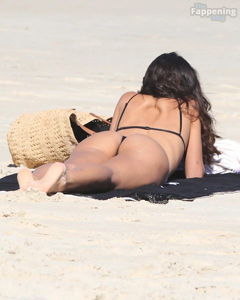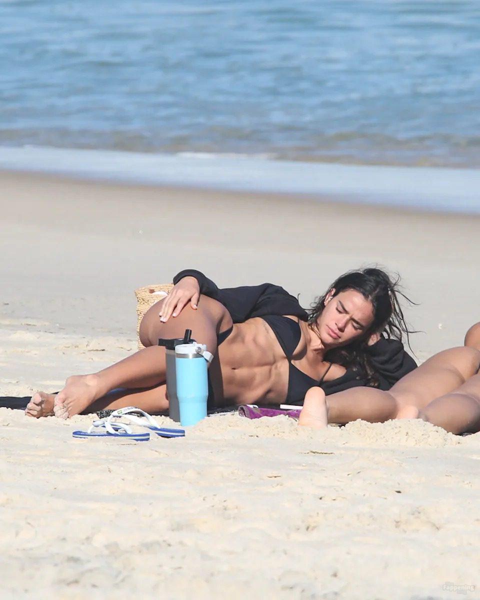 Bruna Marquezine shows off her sexy figure as she hits São Conrad Beach in a black thong bikini.