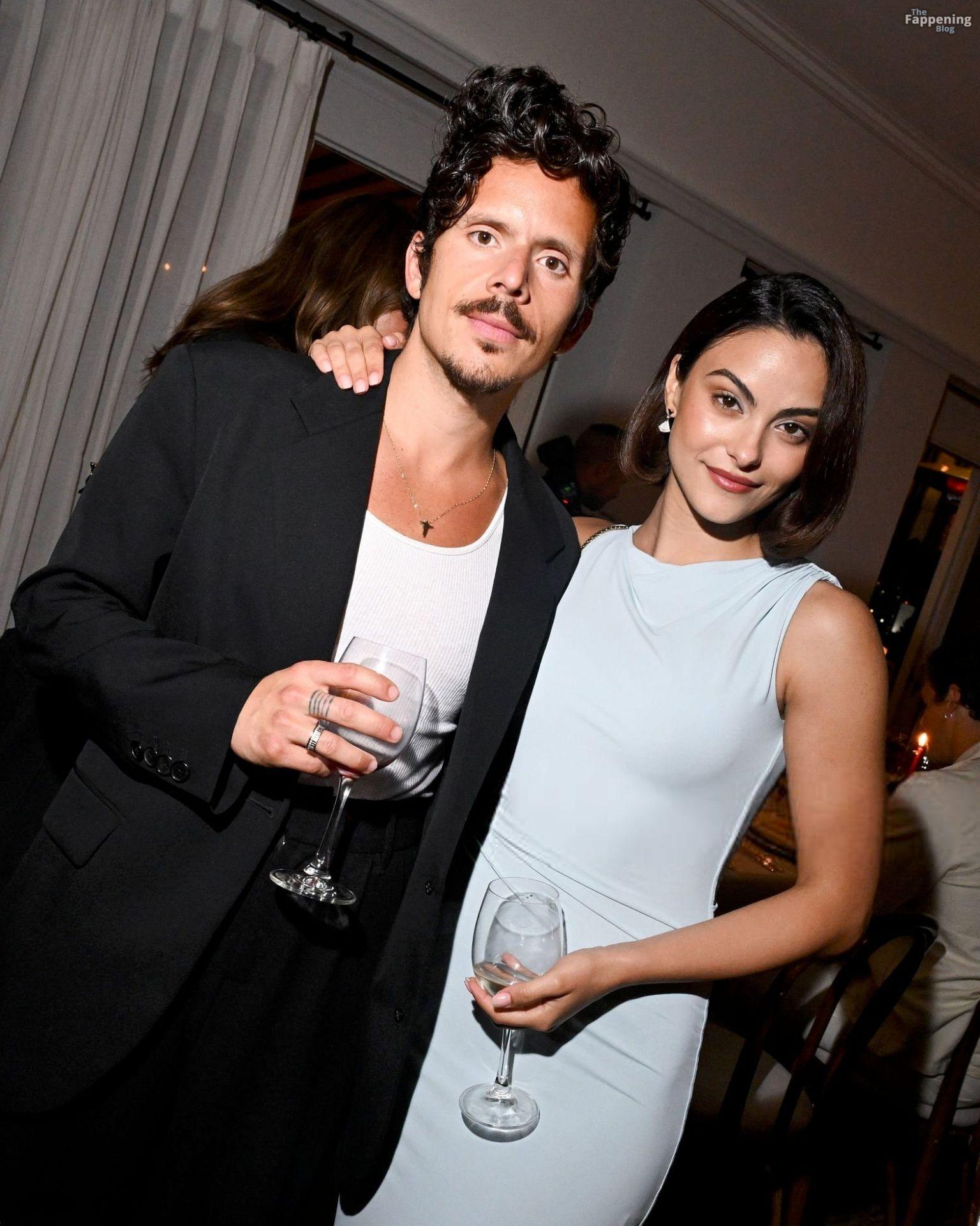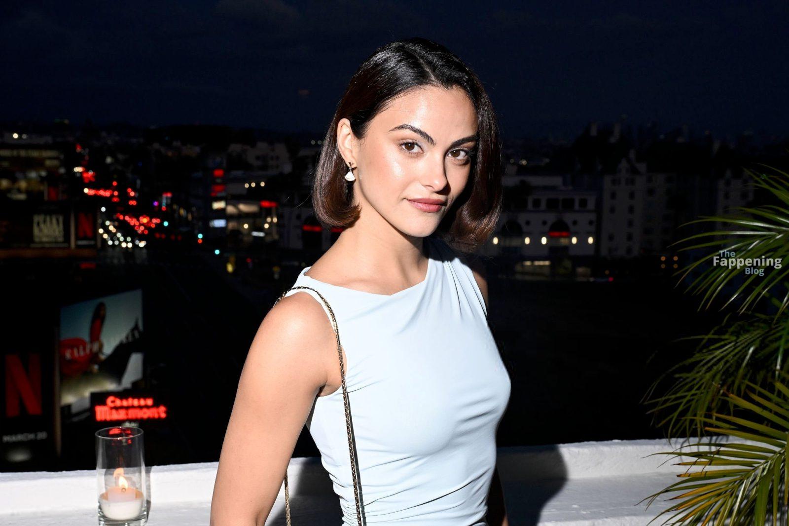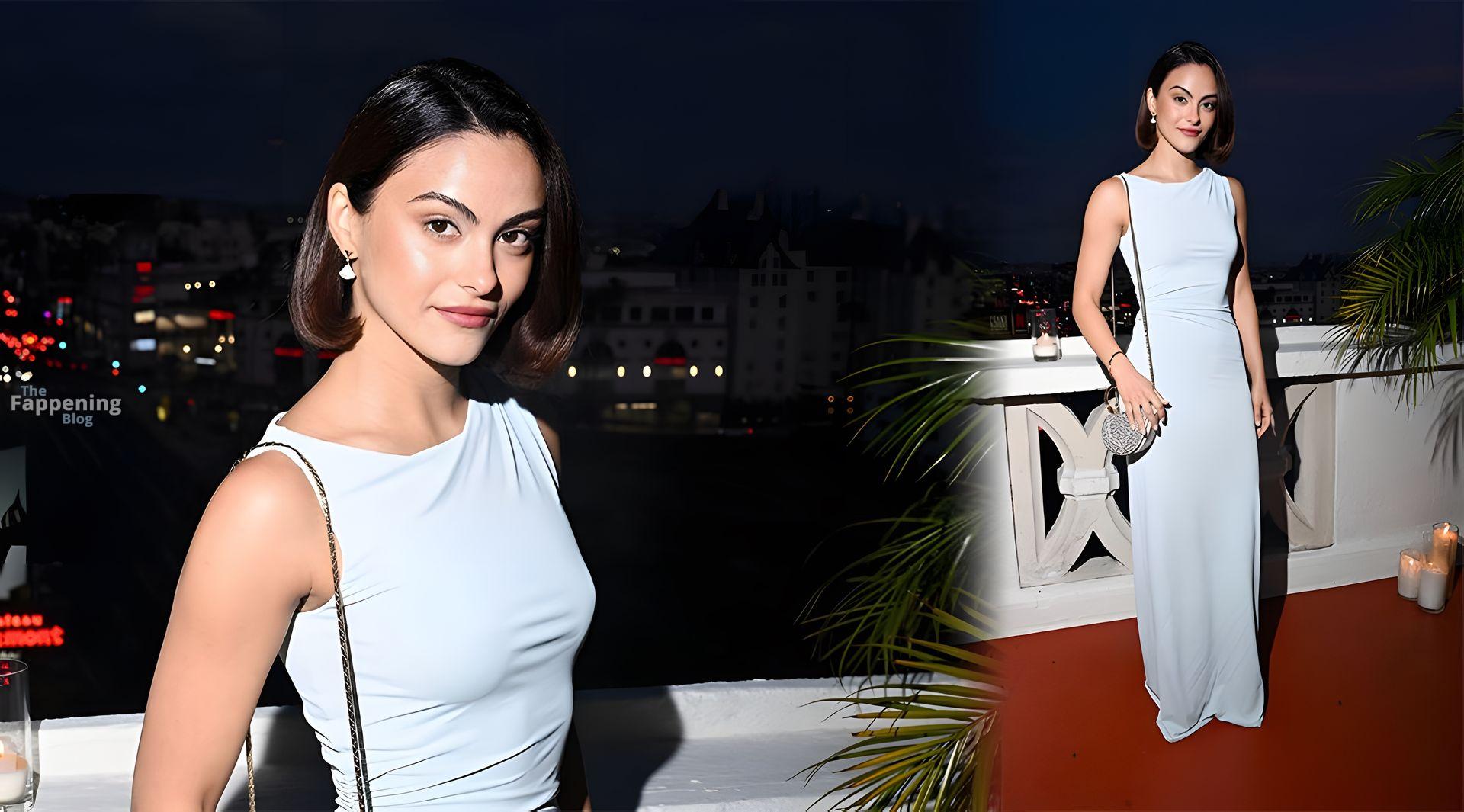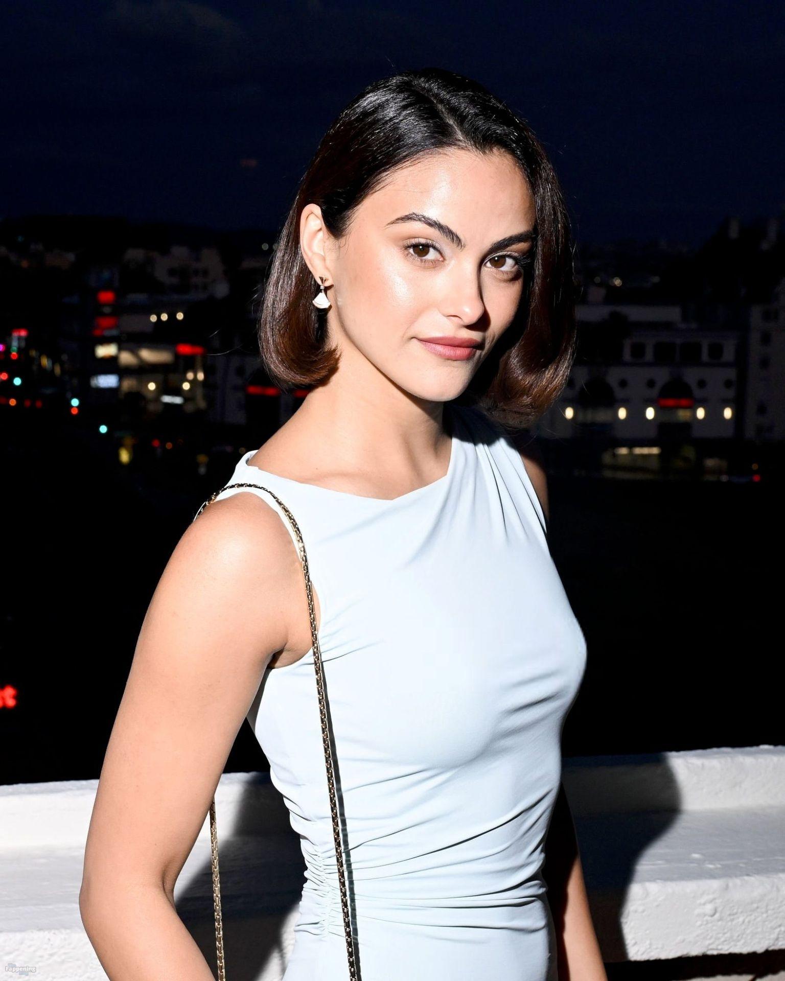 American actress Camila Mendes looks pretty in a light blue evening dress at CULTURED’s BVLGARI celebration in Los Angeles.