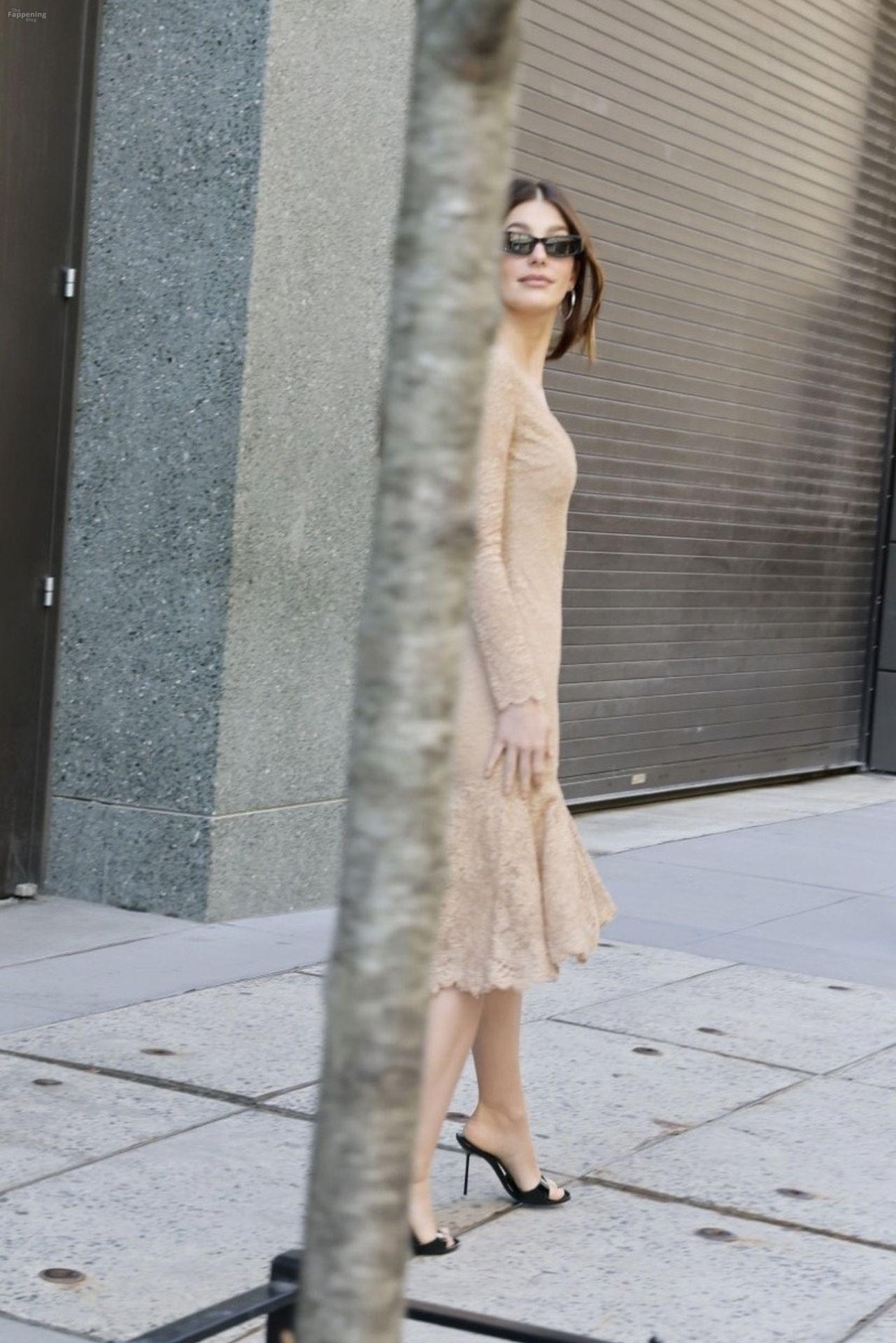Actress Camila Morrone was seen attending and exiting “Good Morning America” in New York City. Check out her sexy figure in a tight beige lace dress.