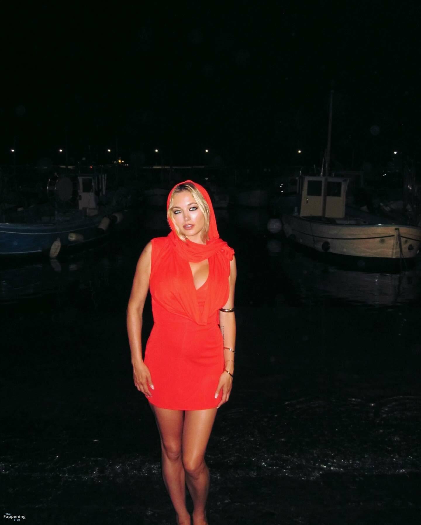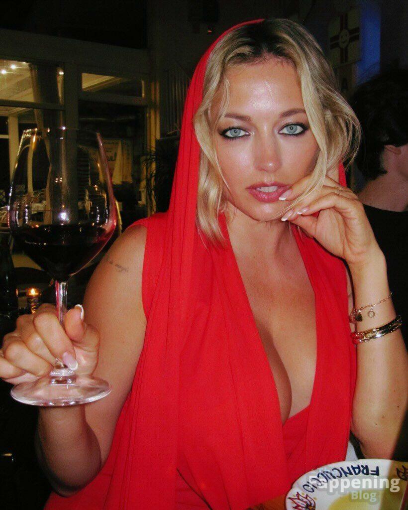 Check out Caroline Vreeland’s huge boobs in this red dress at the party.