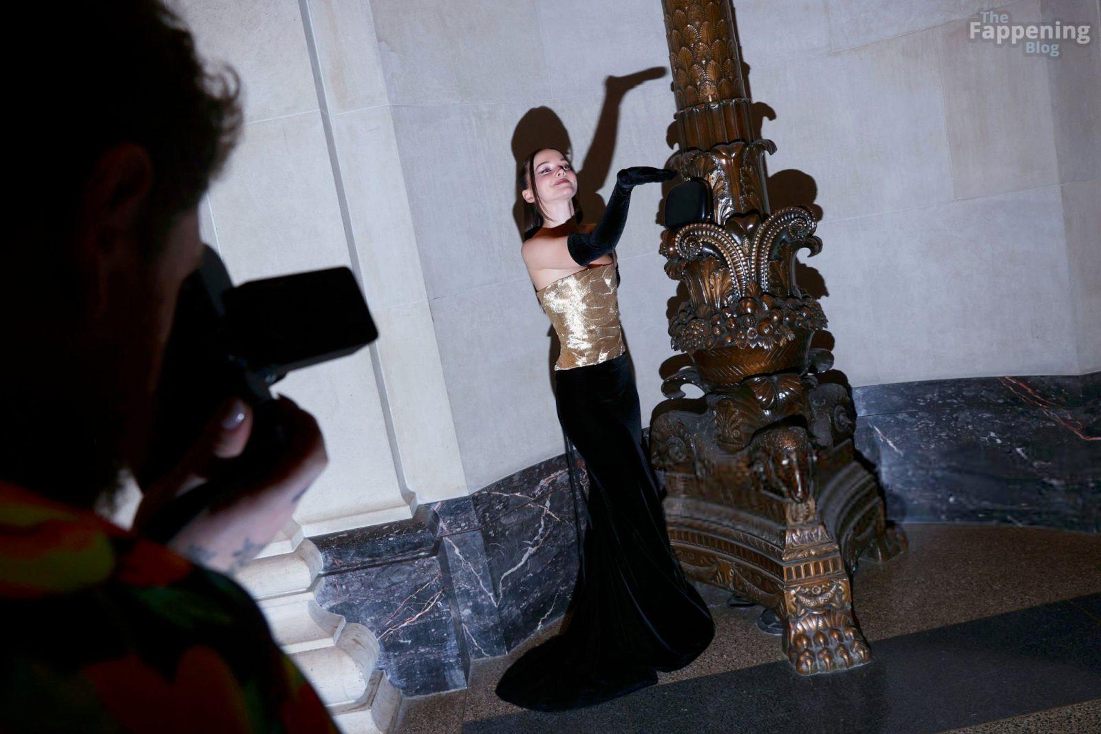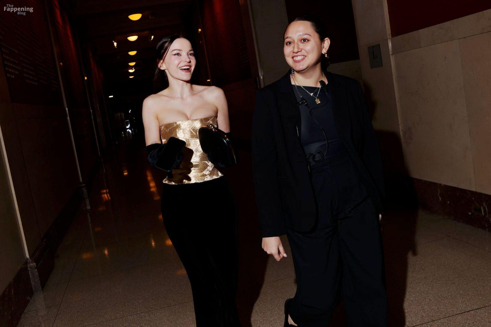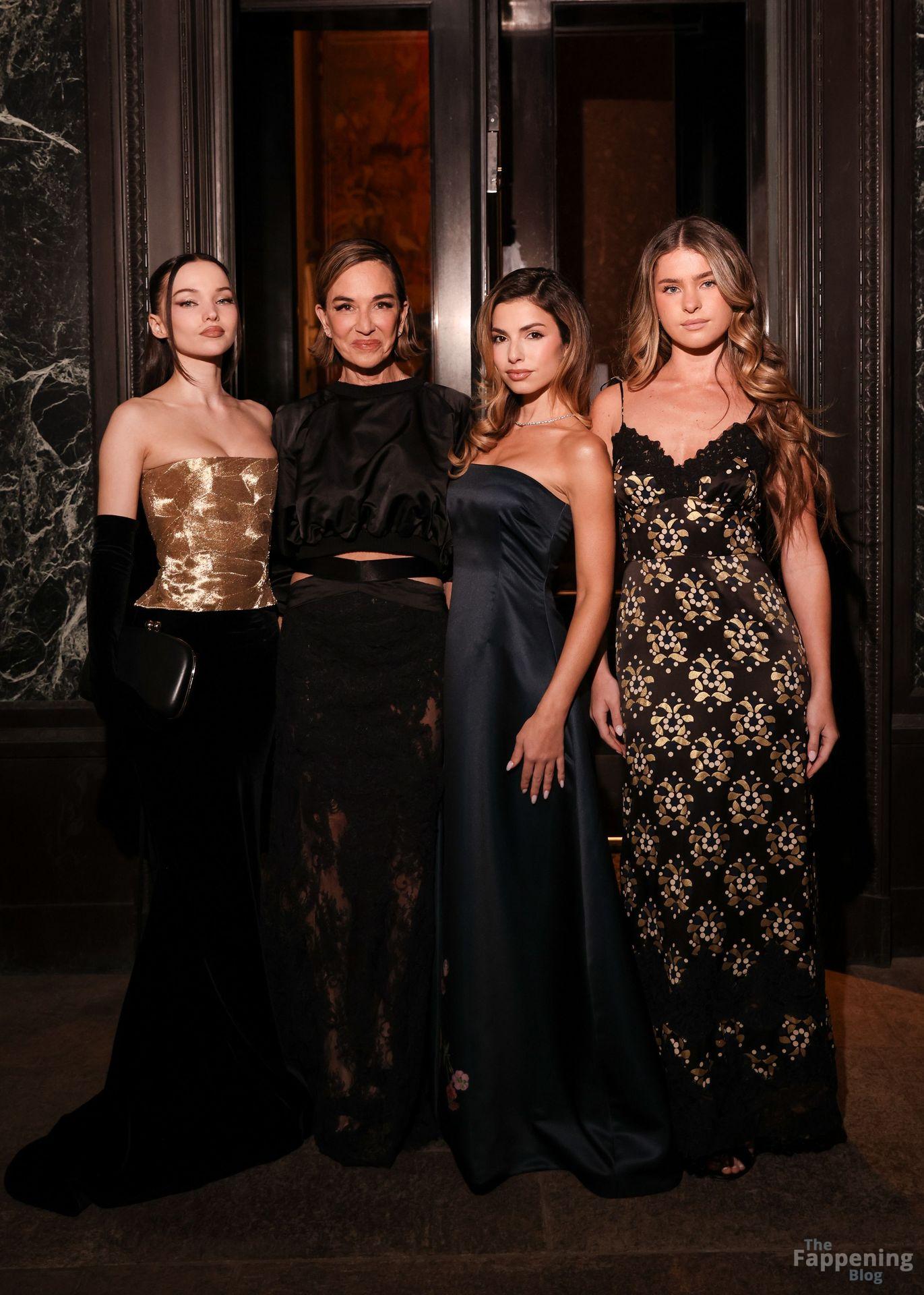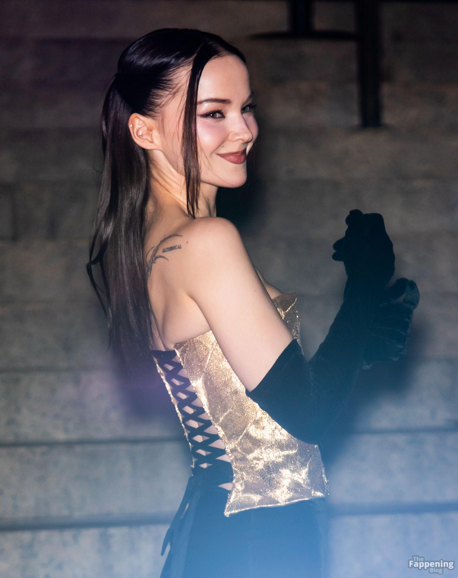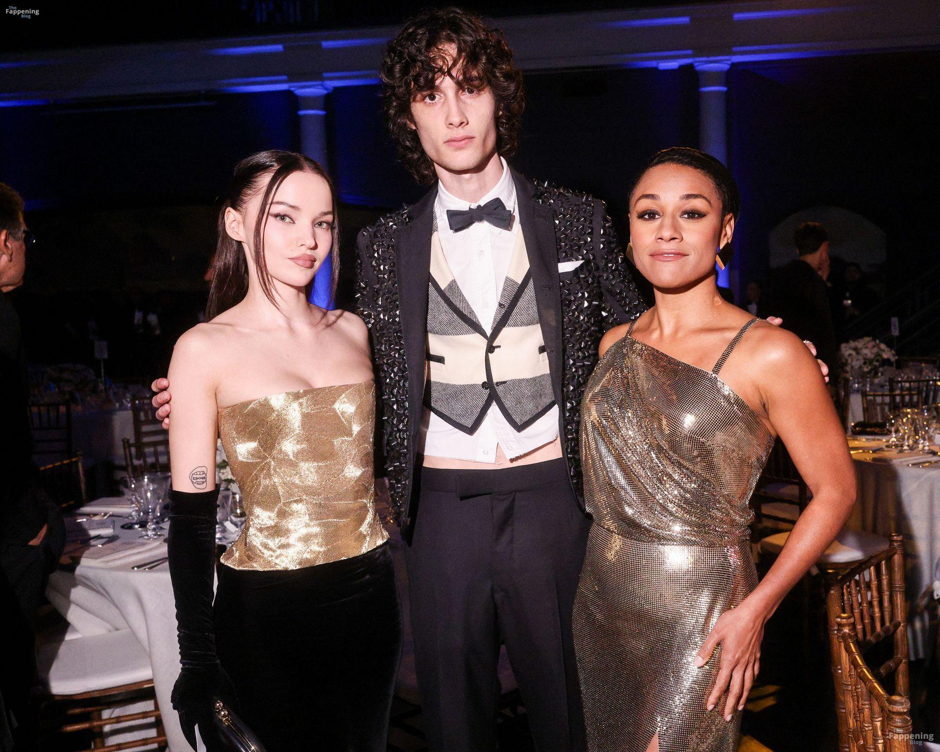 Dove Cameron showed up at the 2025 CFDA Fashion Awards in New York City, rockin’ a strapless gold Marc Jacobs gown with a corset bodice and black gloves. She posed on the red carpet at the American Museum of Natural History.
