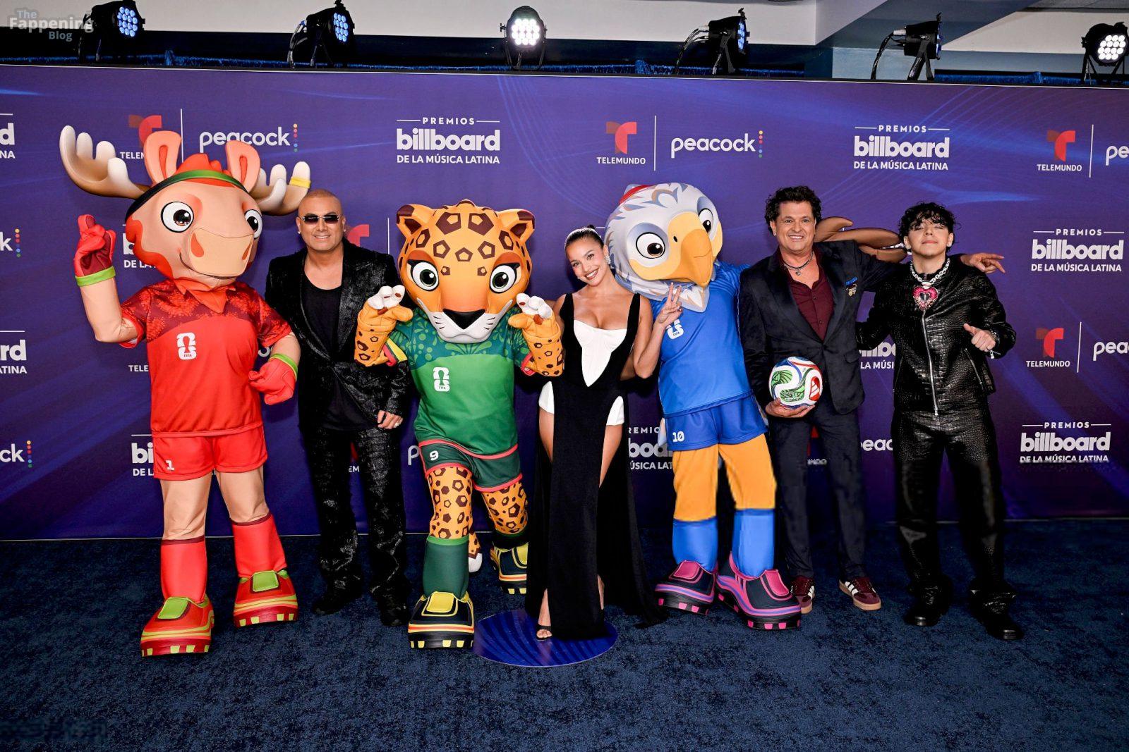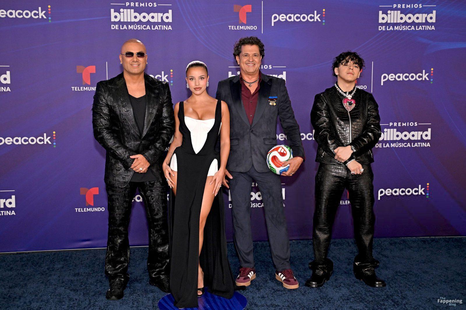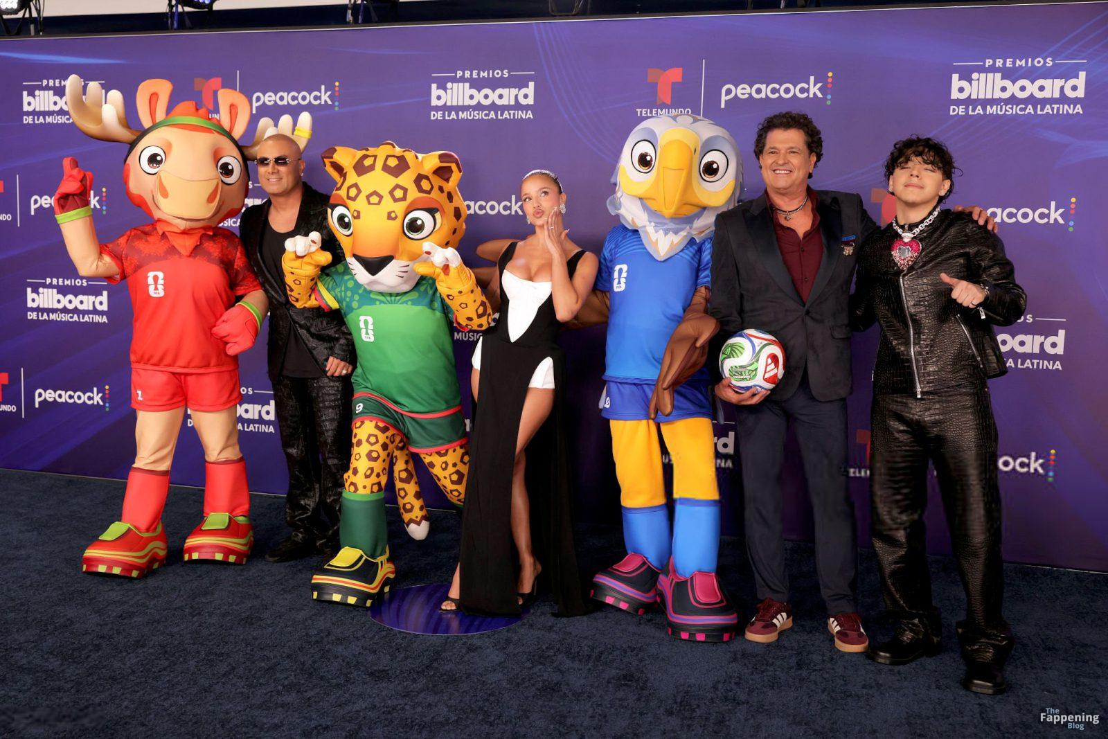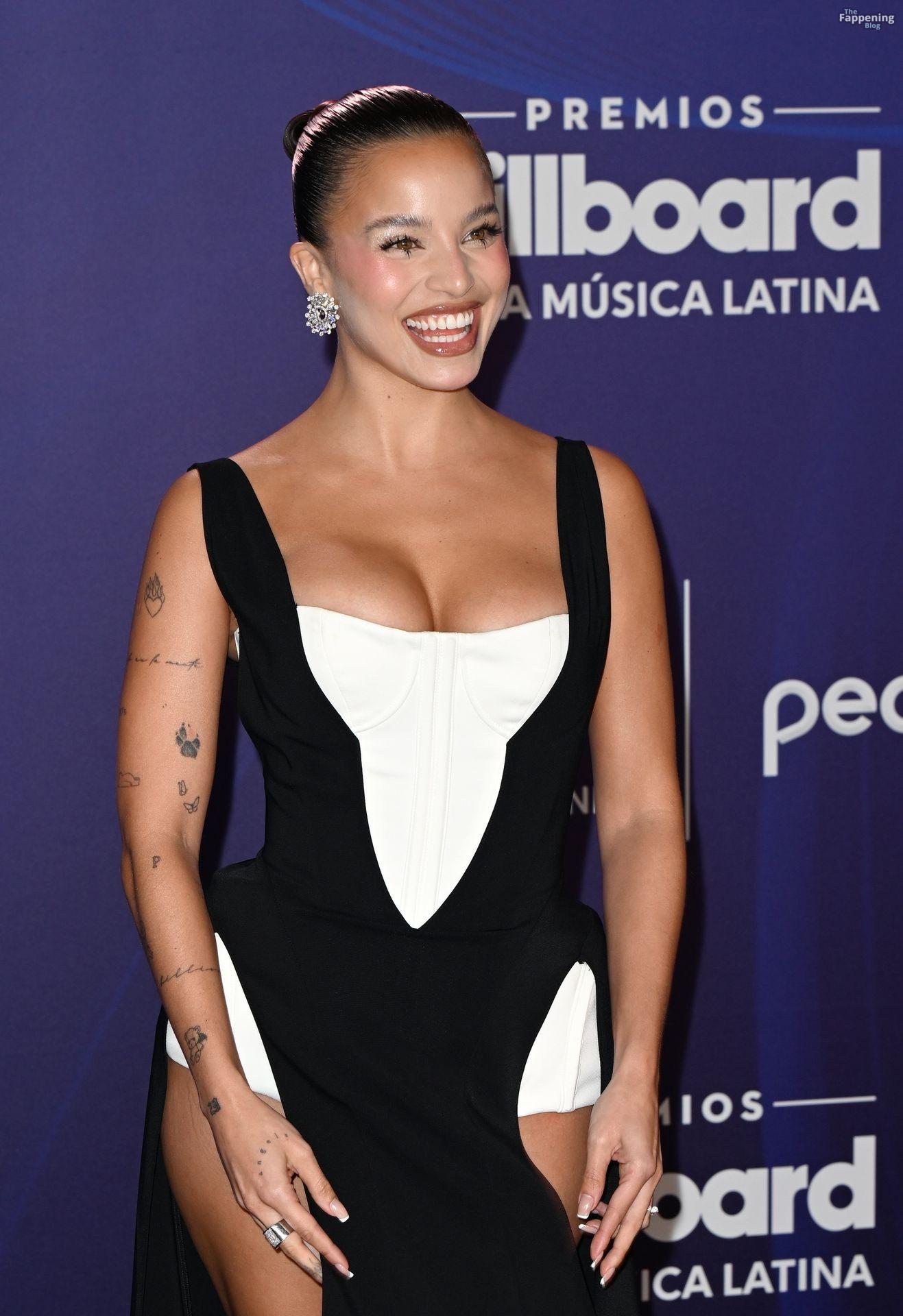 Emilia Mernes attended at the 2025 Billboard Latin Music Awards in Miami, rockin’ a black and white gown with a high slit that showed off her big tits and toned legs. She hit the red carpet at the James L. Knight Center.