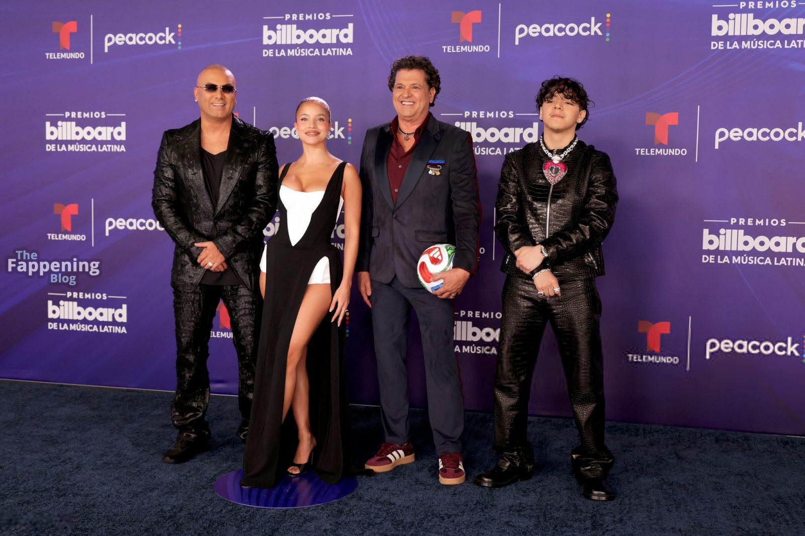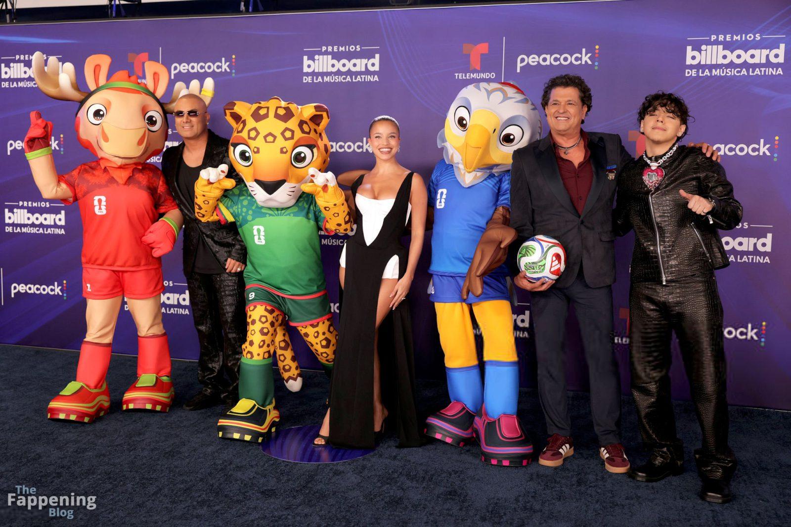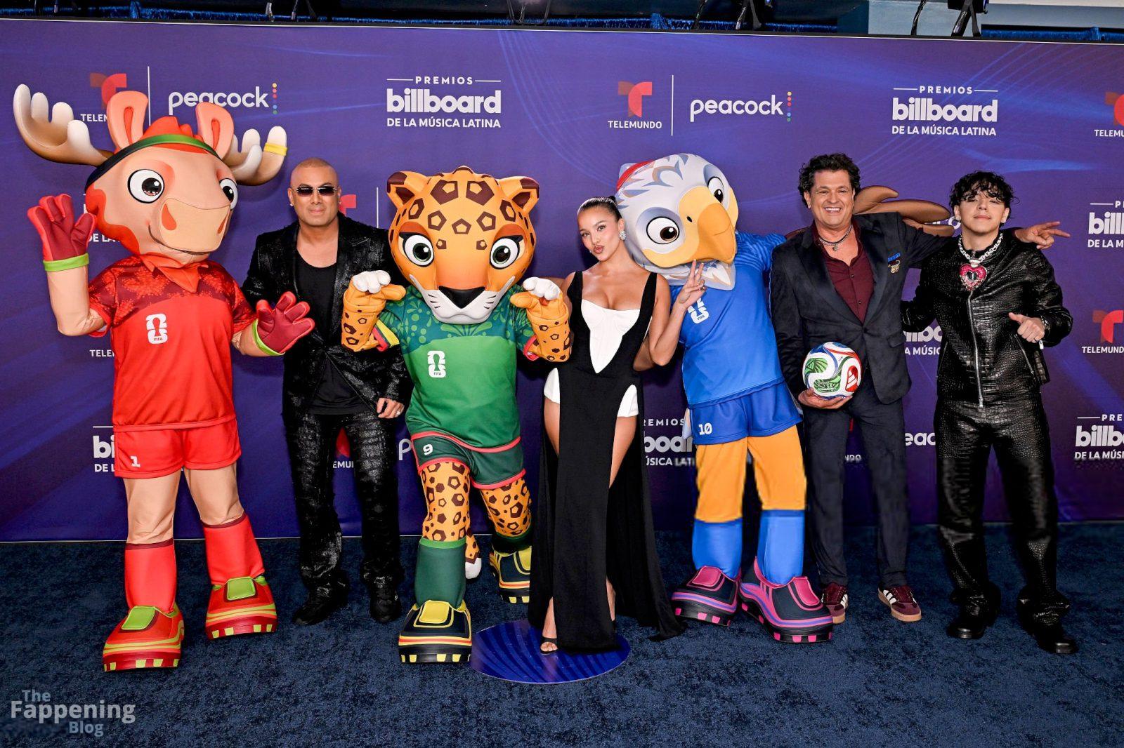 Emilia Mernes attended at the 2025 Billboard Latin Music Awards in Miami, rockin’ a black and white gown with a high slit that showed off her big tits and toned legs. She hit the red carpet at the James L. Knight Center.
