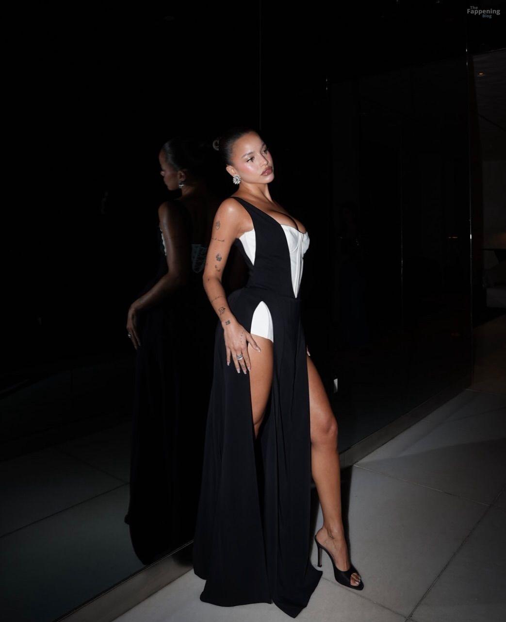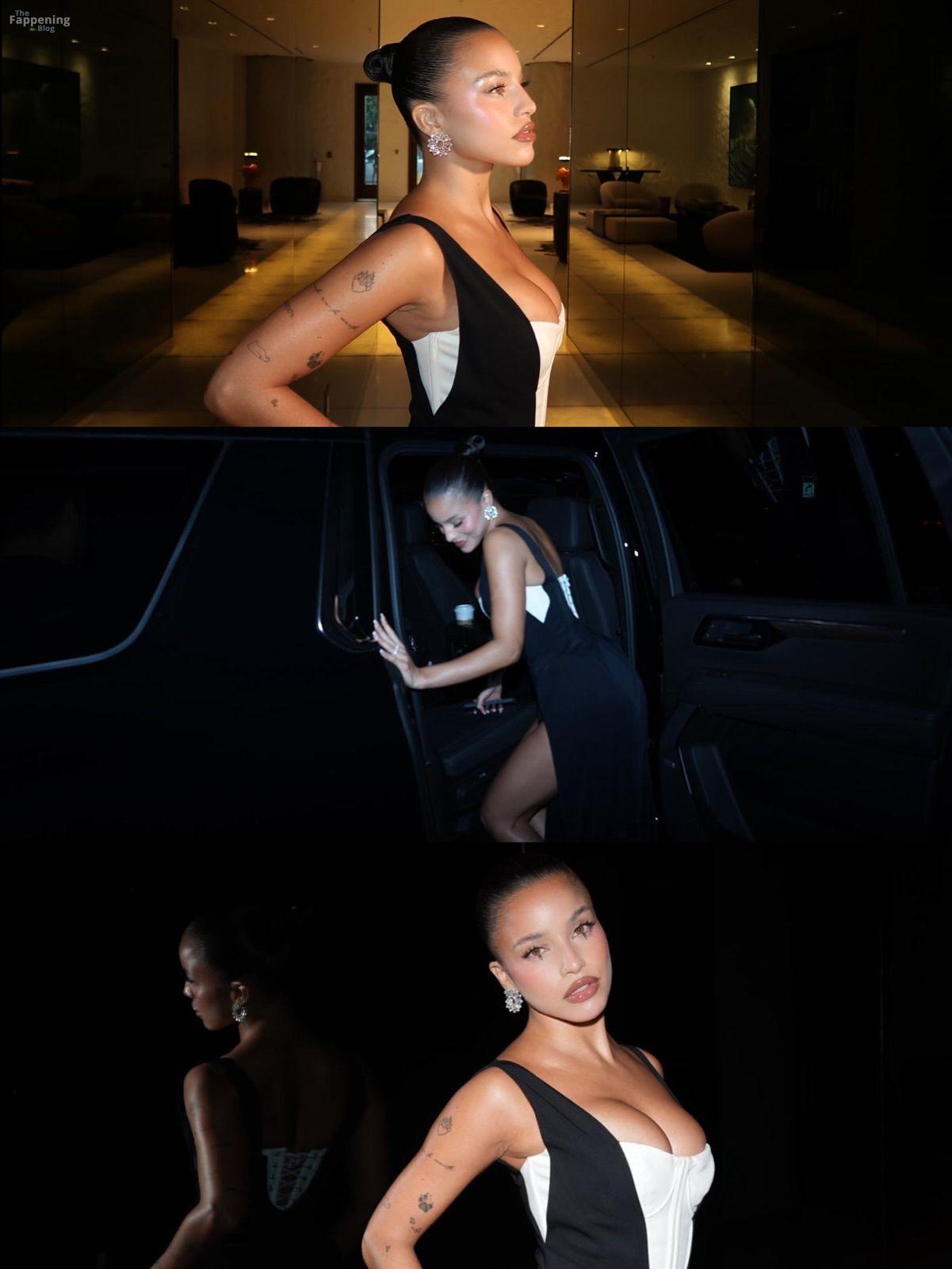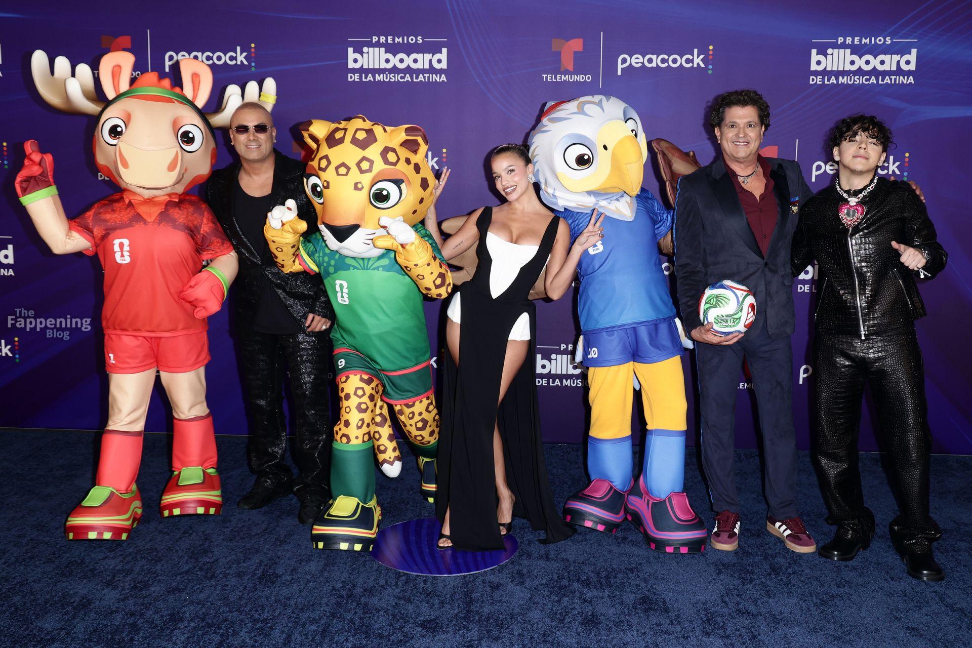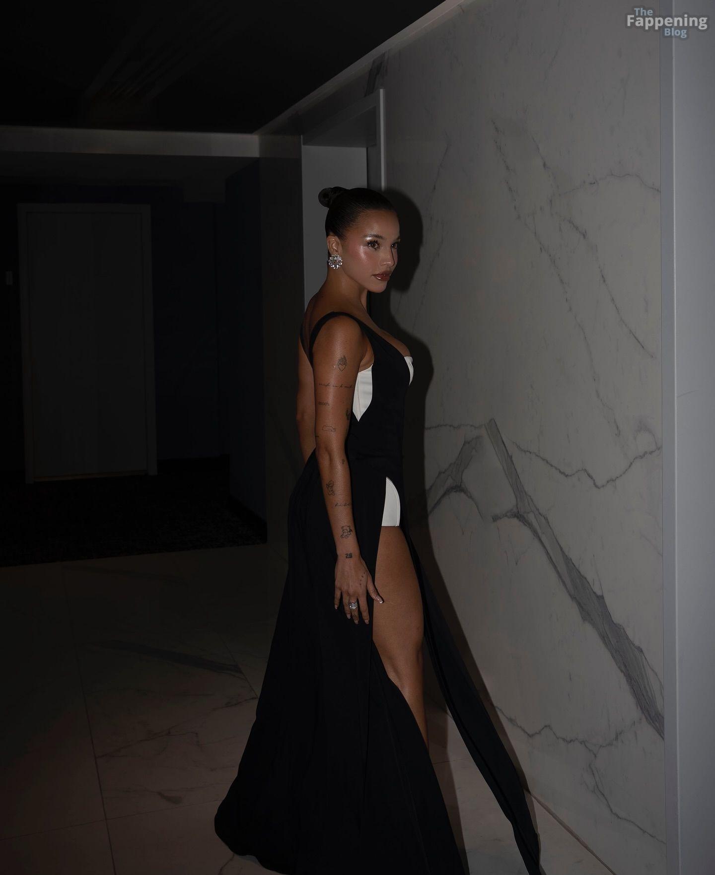 Emilia Mernes attended at the 2025 Billboard Latin Music Awards in Miami, rockin’ a black and white gown with a high slit that showed off her big tits and toned legs. She hit the red carpet at the James L. Knight Center.