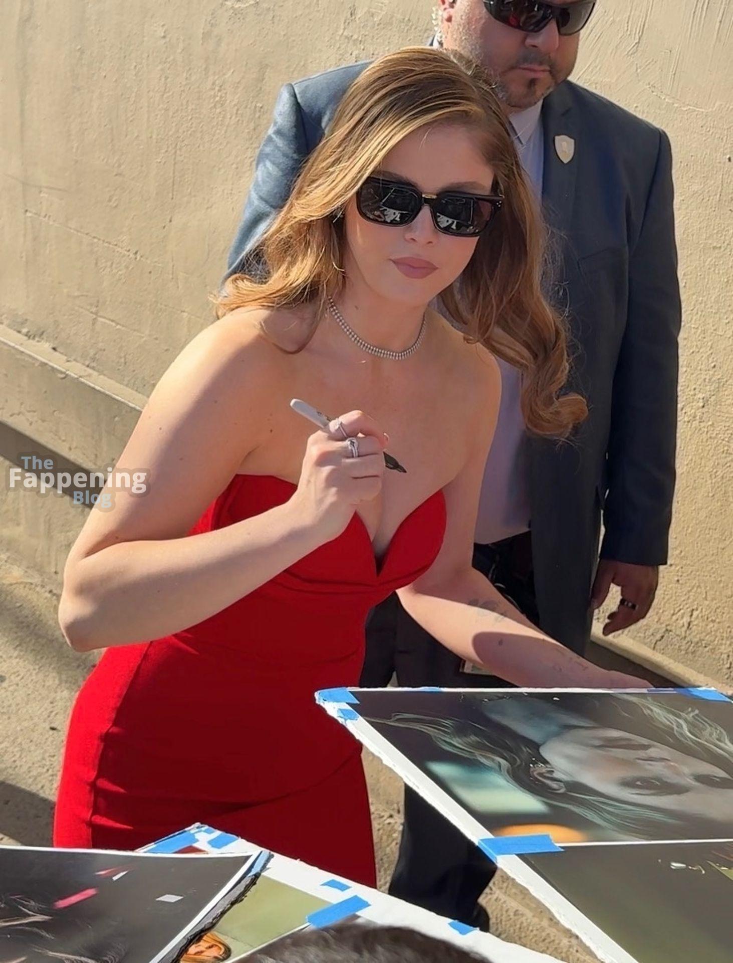 Erin Moriarty made a bold arrival at Jimmy Kimmel Live! in Hollywood, stunning in a curve-hugging red strapless dress and black heels. “The Boys” star waved to fans with a smile, bringing classic glam energy to her late-night appearance.