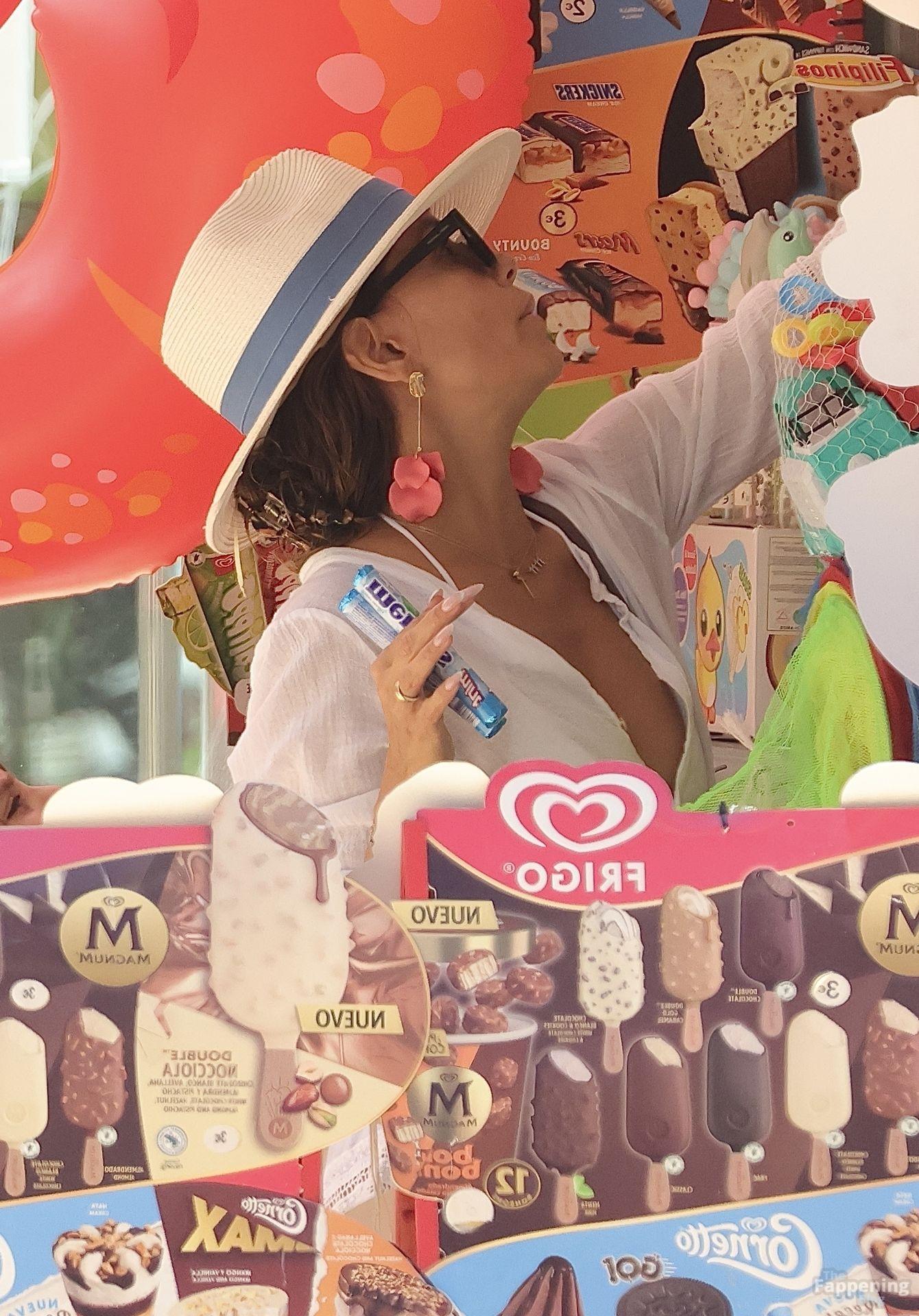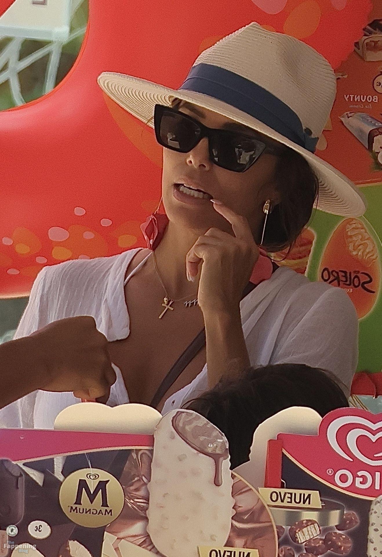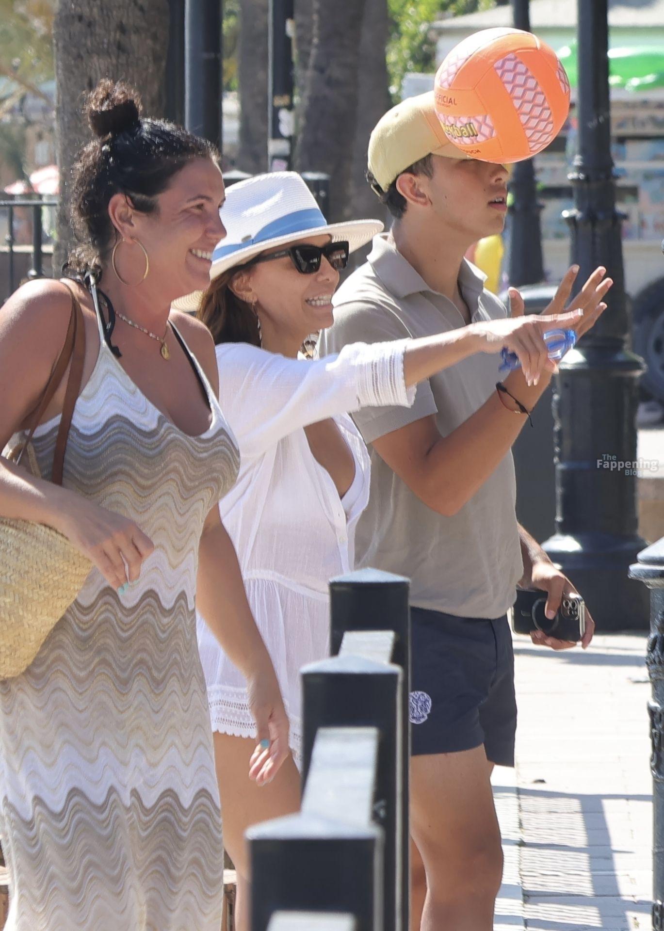 The “Desperate Housewives” star was all smiles, chillin’ with her crew on Spain’s gorgeous coast. She rocked a breezy, see-through white playsuit over a slick white bikini, mixin’ beach chill with pure glam. At one point, Eva was peepin’ local kiosks on Marbella’s busy promenade, checkin’ out handmade trinkets and souvenirs.