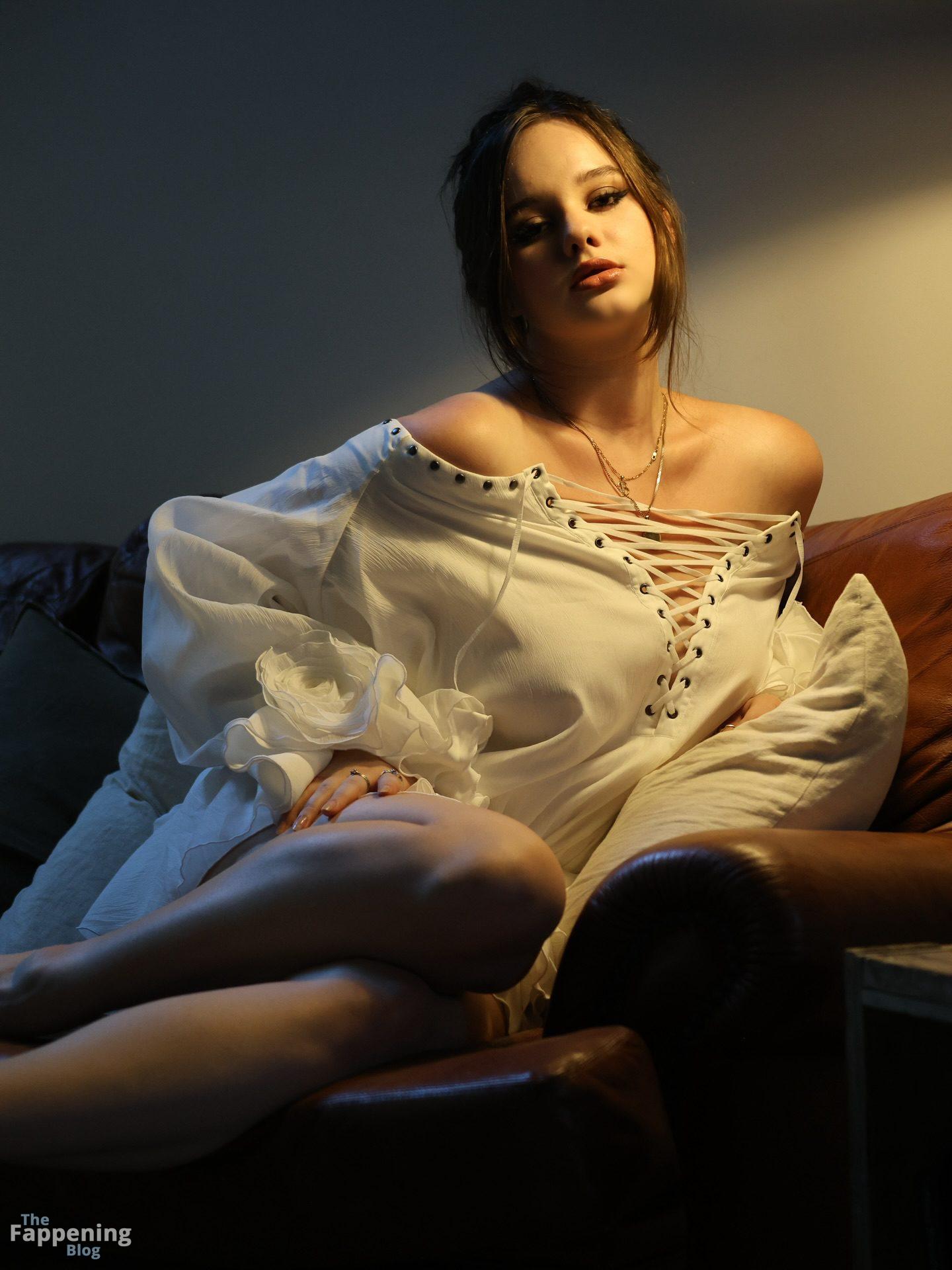 Isabella Ardley poses in a white lac dress, flauntin’ some skin, sexy tits and legs in a new boudoir shoot.