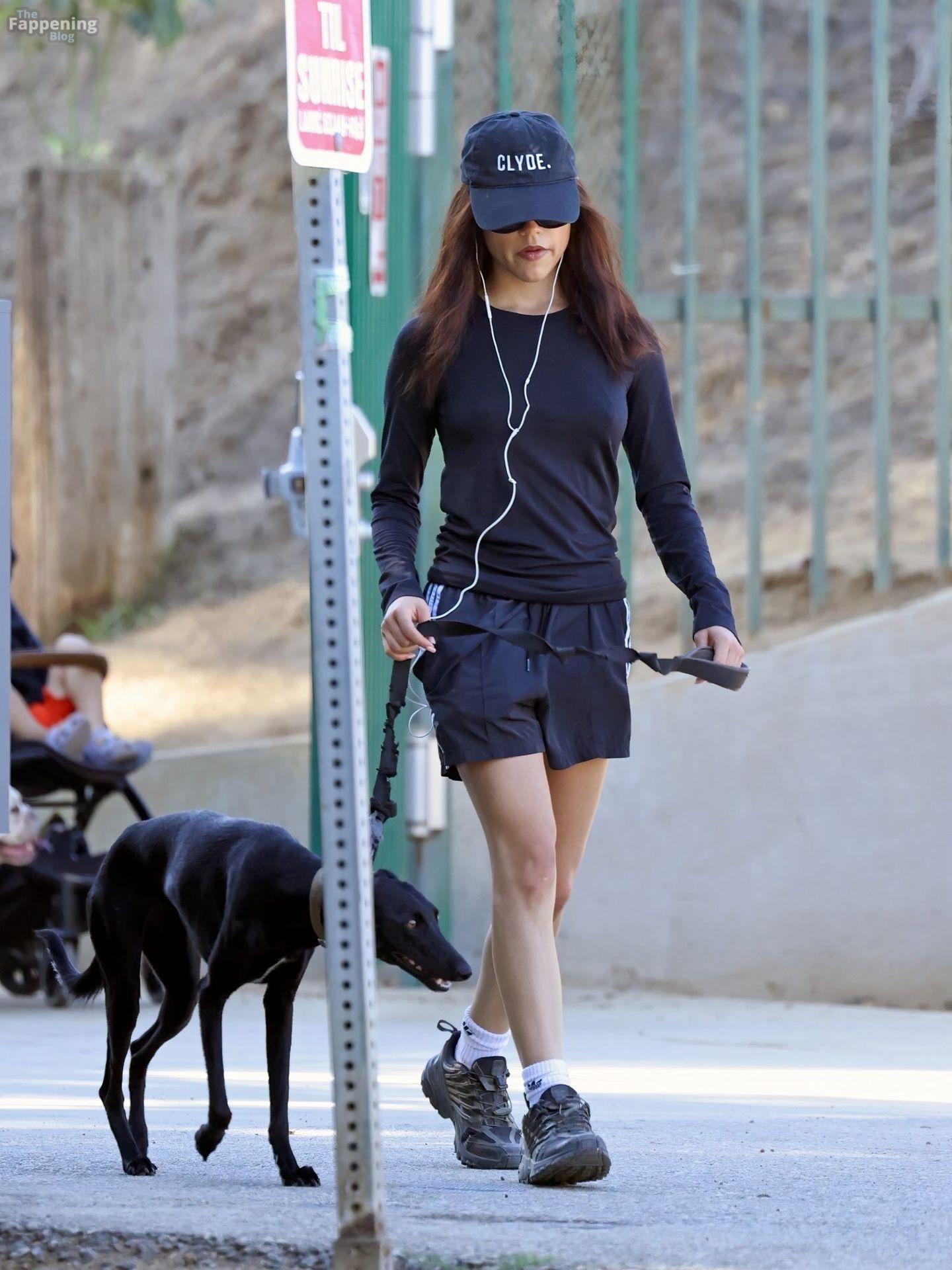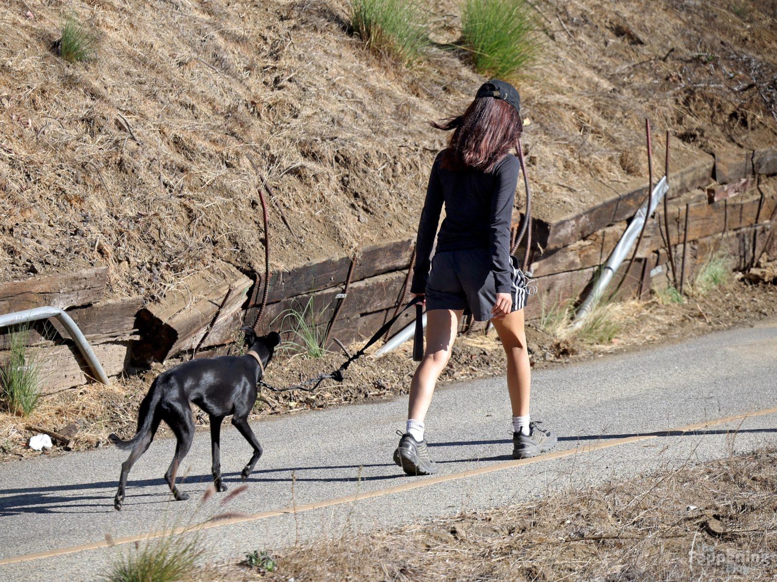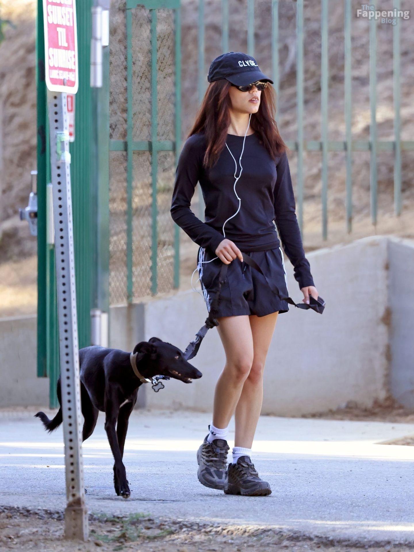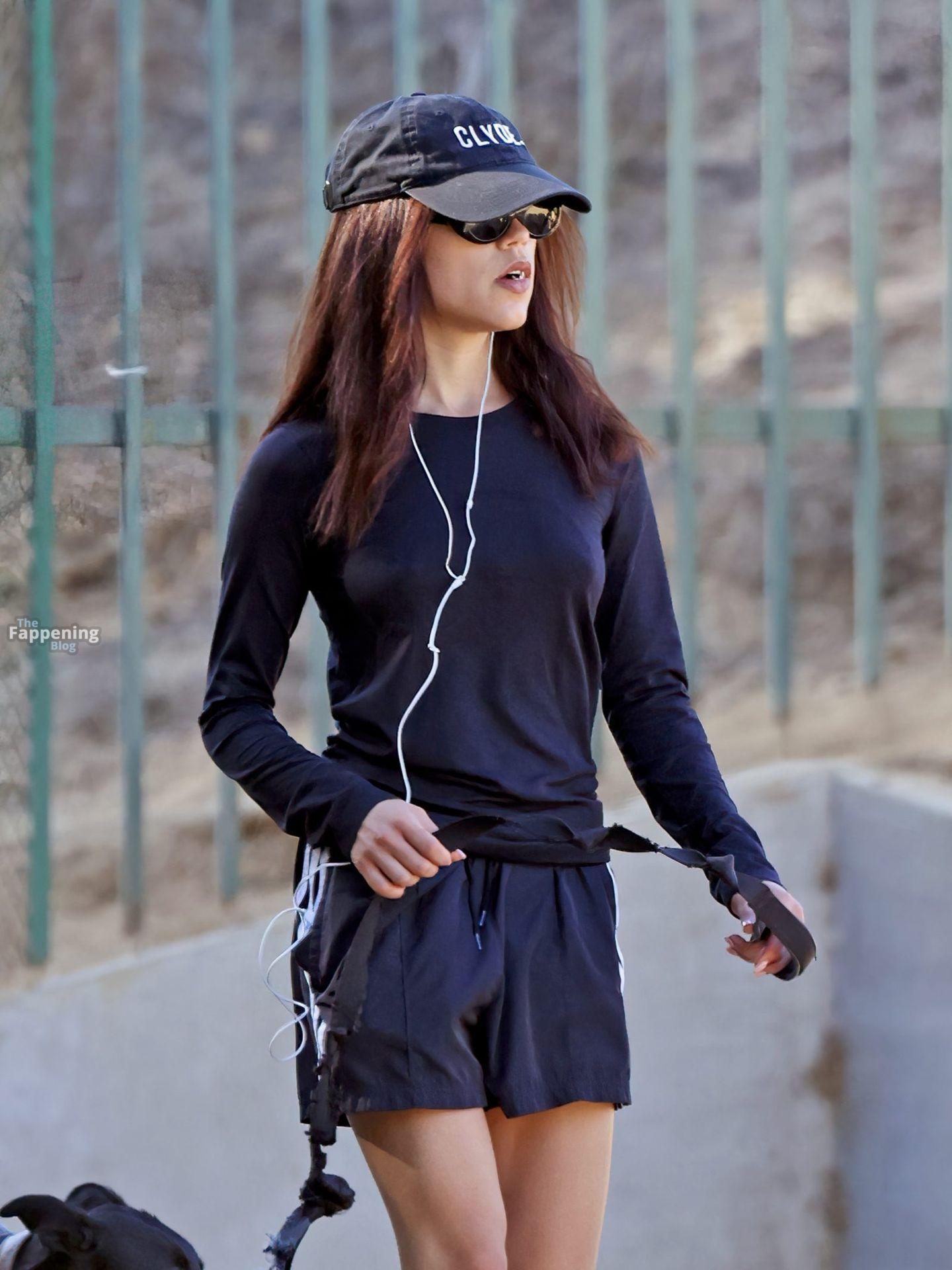 Jenna Ortega was spotted hikin’ Runyon Canyon in LA, rockin’ a tight black top and micro shorts that showed off her toned legs and pokies.