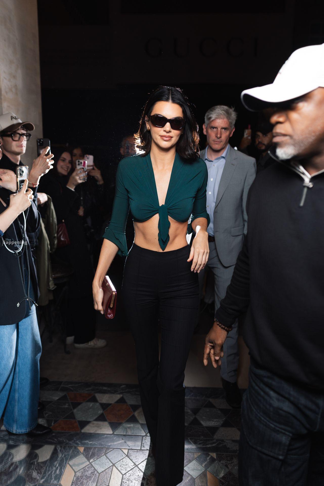 Kendall Jenner showed off her abs and teased her nipples in a tiny crop top and skin-tight pants,. She was spotted headin’ back to Costes Hotel in Paris after a night out durin’ Paris Fashion Week.