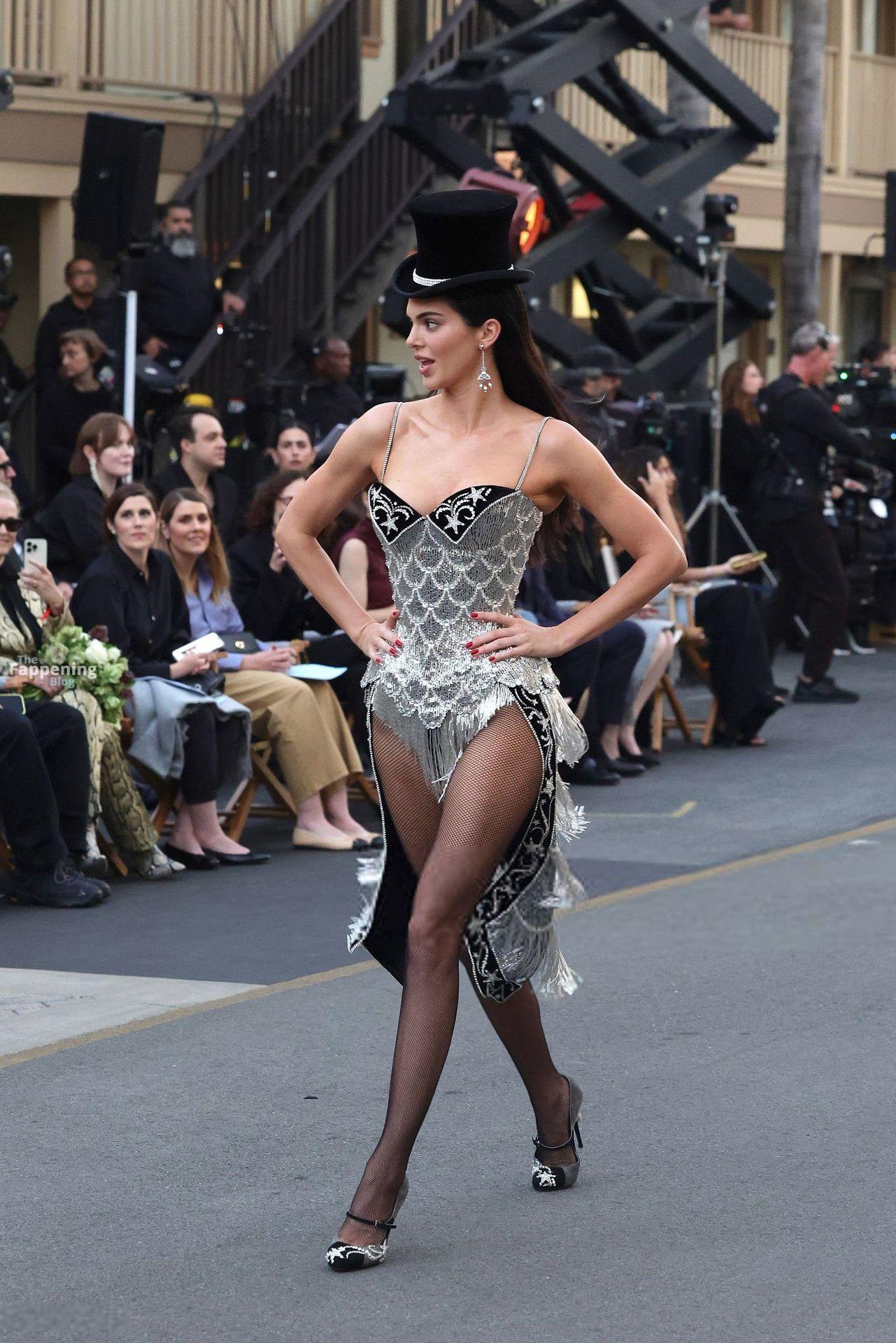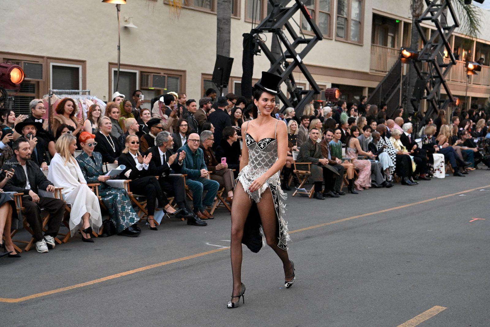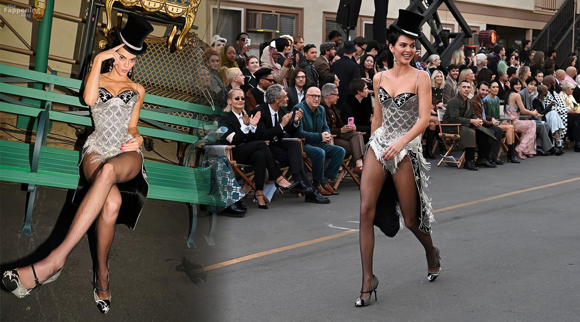 Kendall Jenner owned the runway at Vogue World 2025, rockin’ a see-through showgirl corset that flashed her tits and legs.
