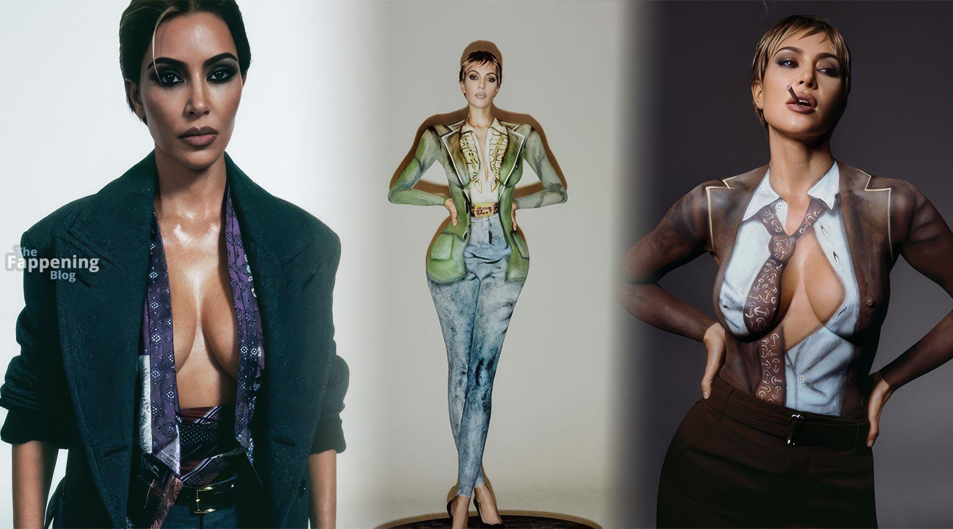 Kim Kardashian recently dropped a wild nude shoot for Re-Edition magazine’s November 2025 issue. She’s all painted up and bare – just her boobs on full view. The social media queen stripped down and posed naked, with only body paint slathered on. You won’t catch her pussy in these shots, but her boobs pop through that thin layer like they’re meant to be seen.