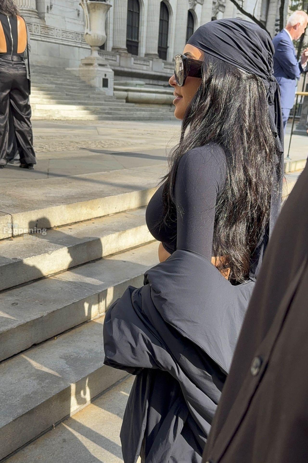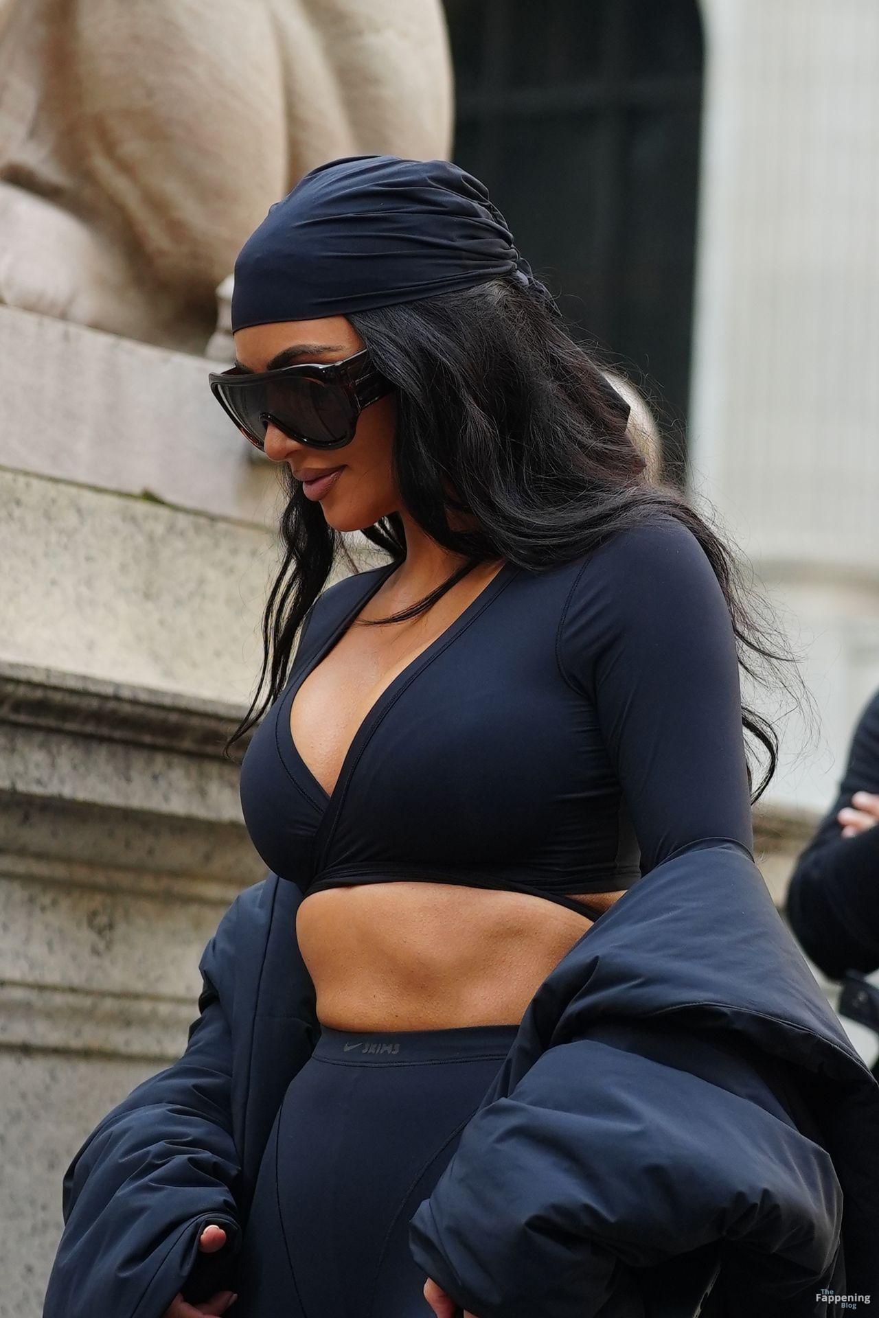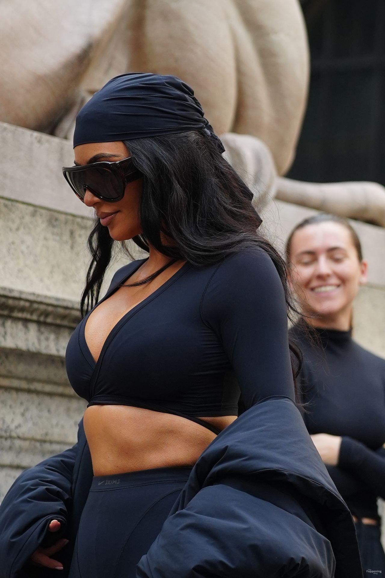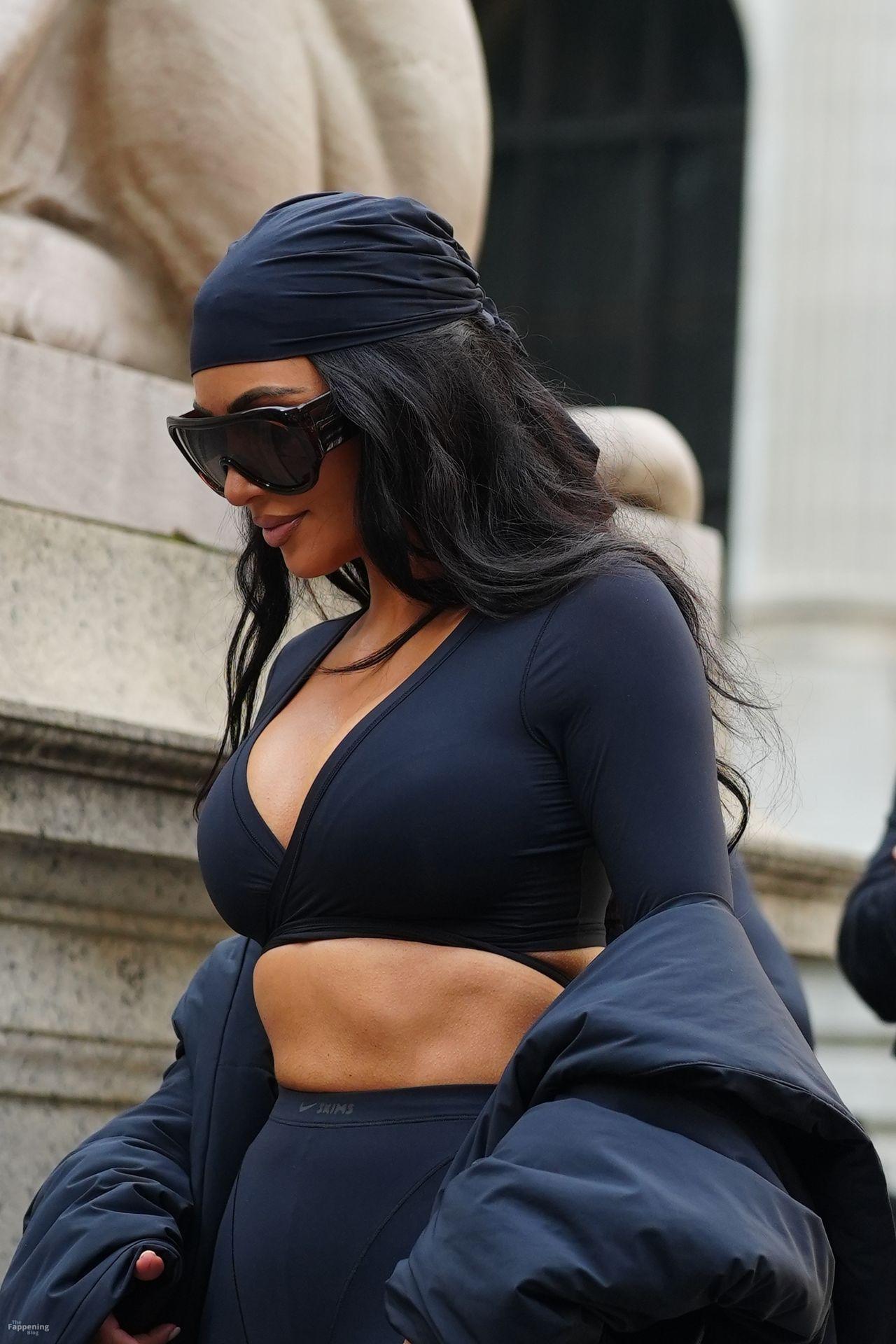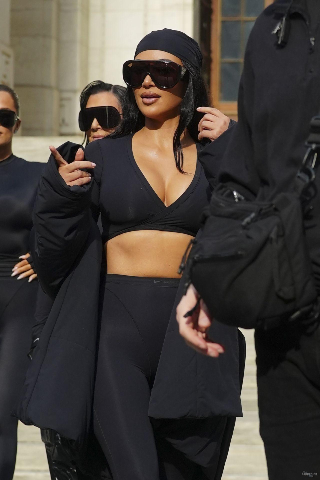 Kim Kardashian stepped out of the New York Public Library after the SKIMS x Nike fashion show. She posed for pics and grabbed the spotlight easy with her chic style in NYC.