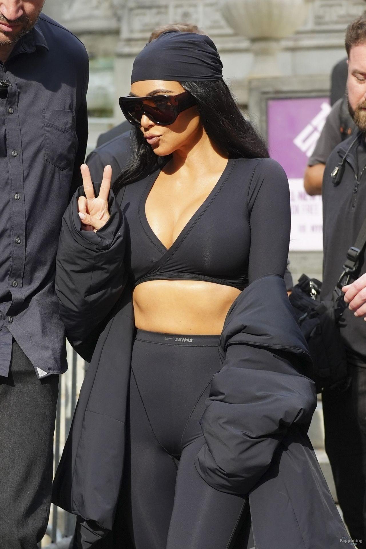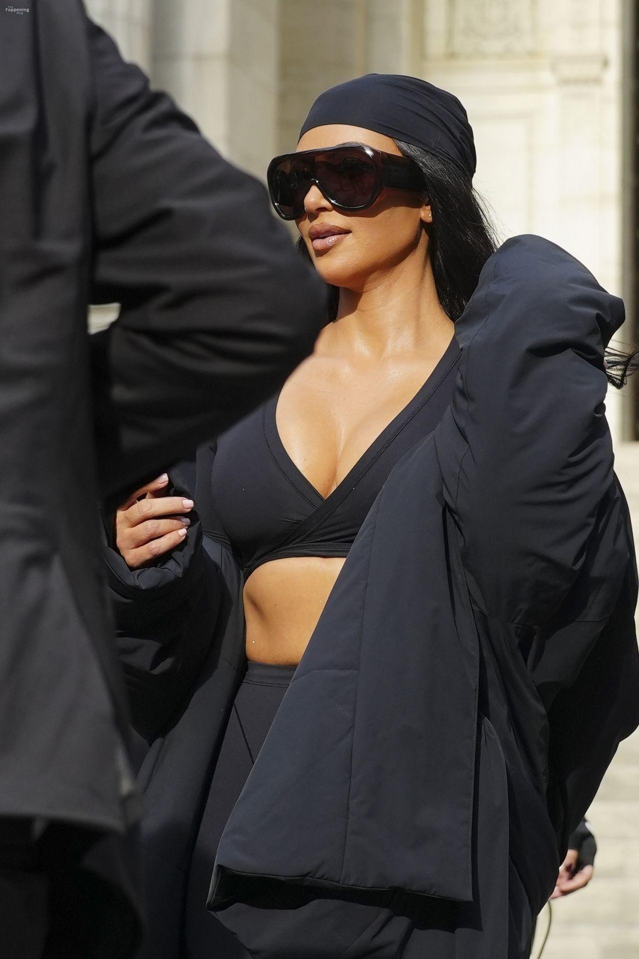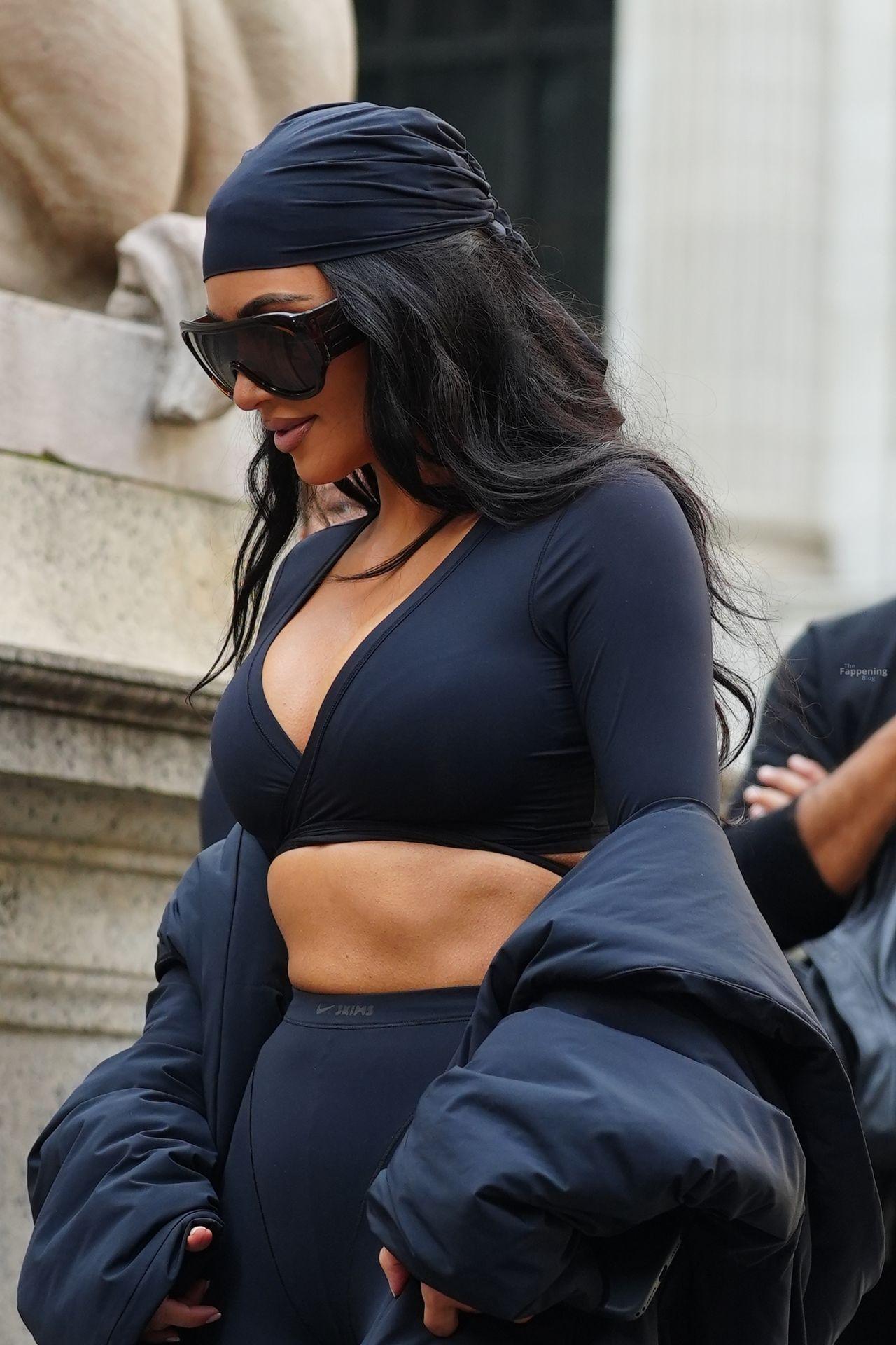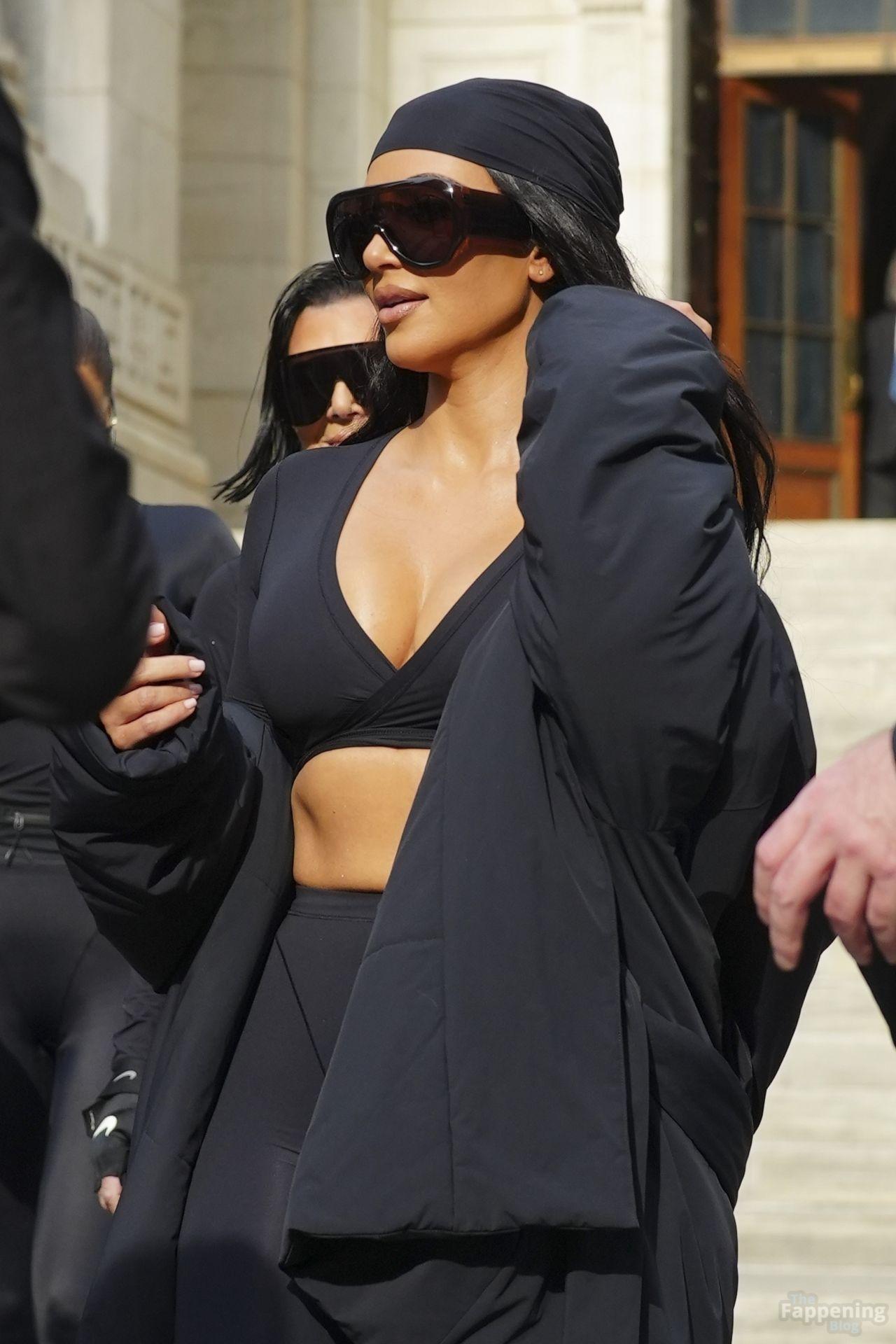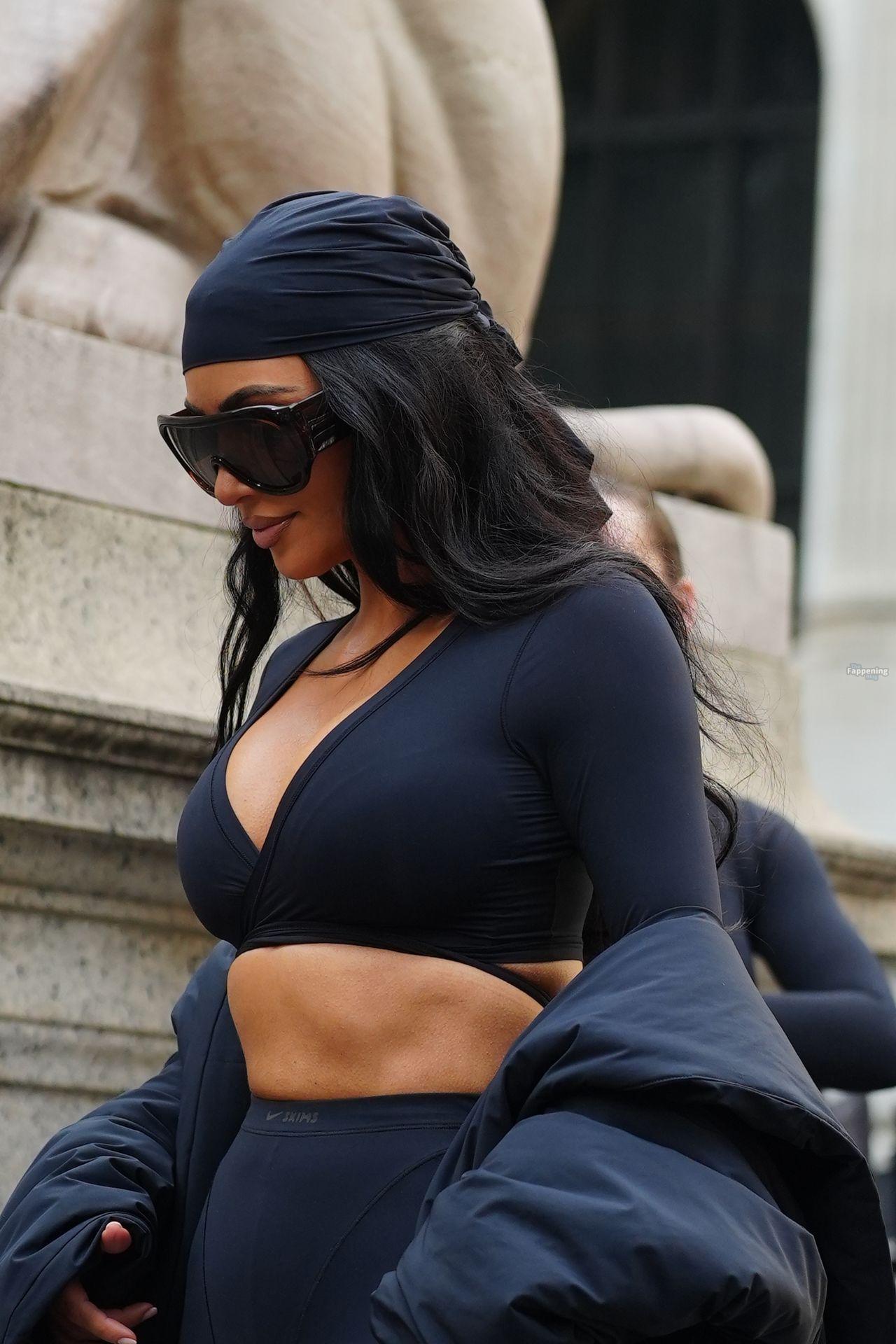 Kim Kardashian stepped out of the New York Public Library after the SKIMS x Nike fashion show. She posed for pics and grabbed the spotlight easy with her chic style in NYC.