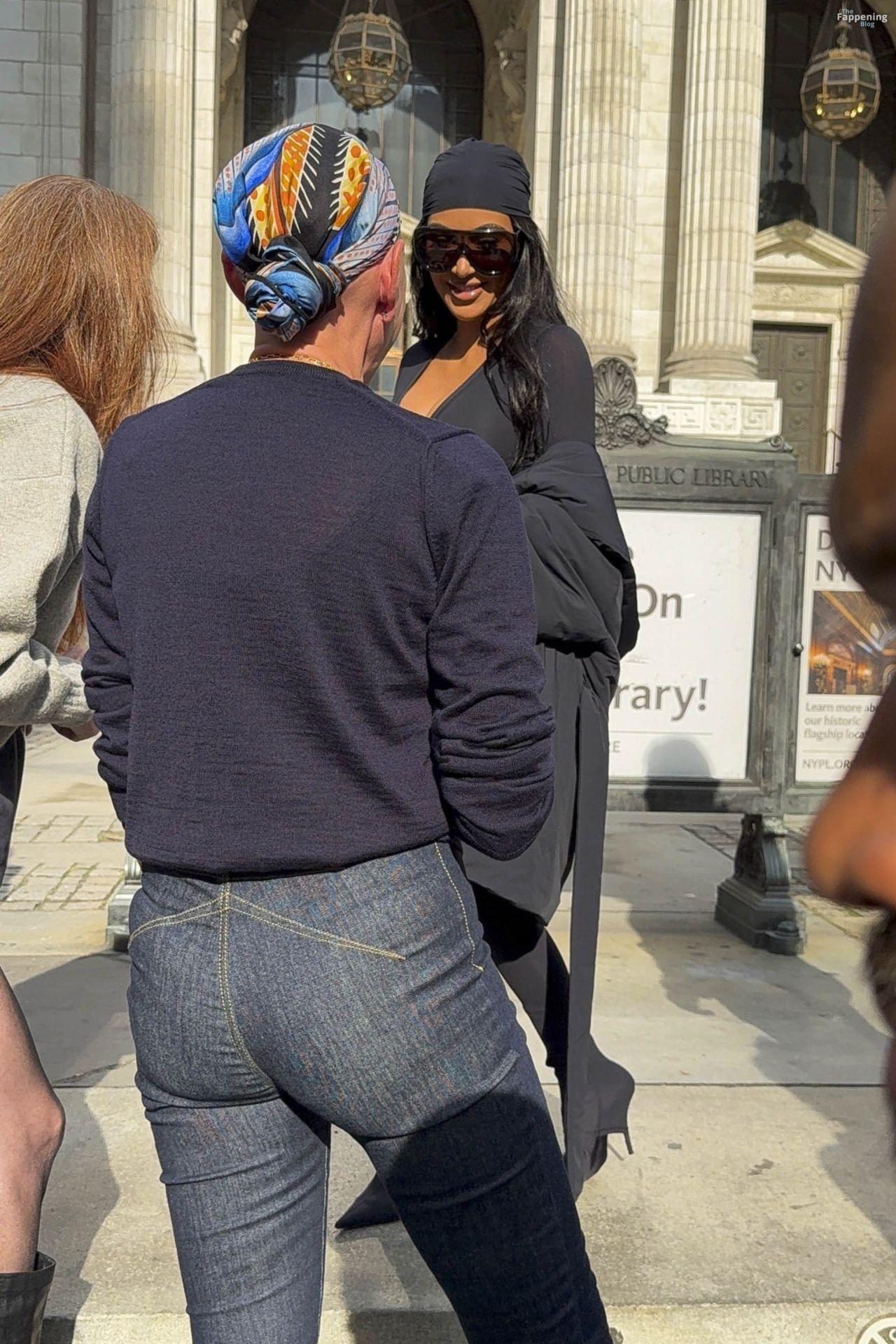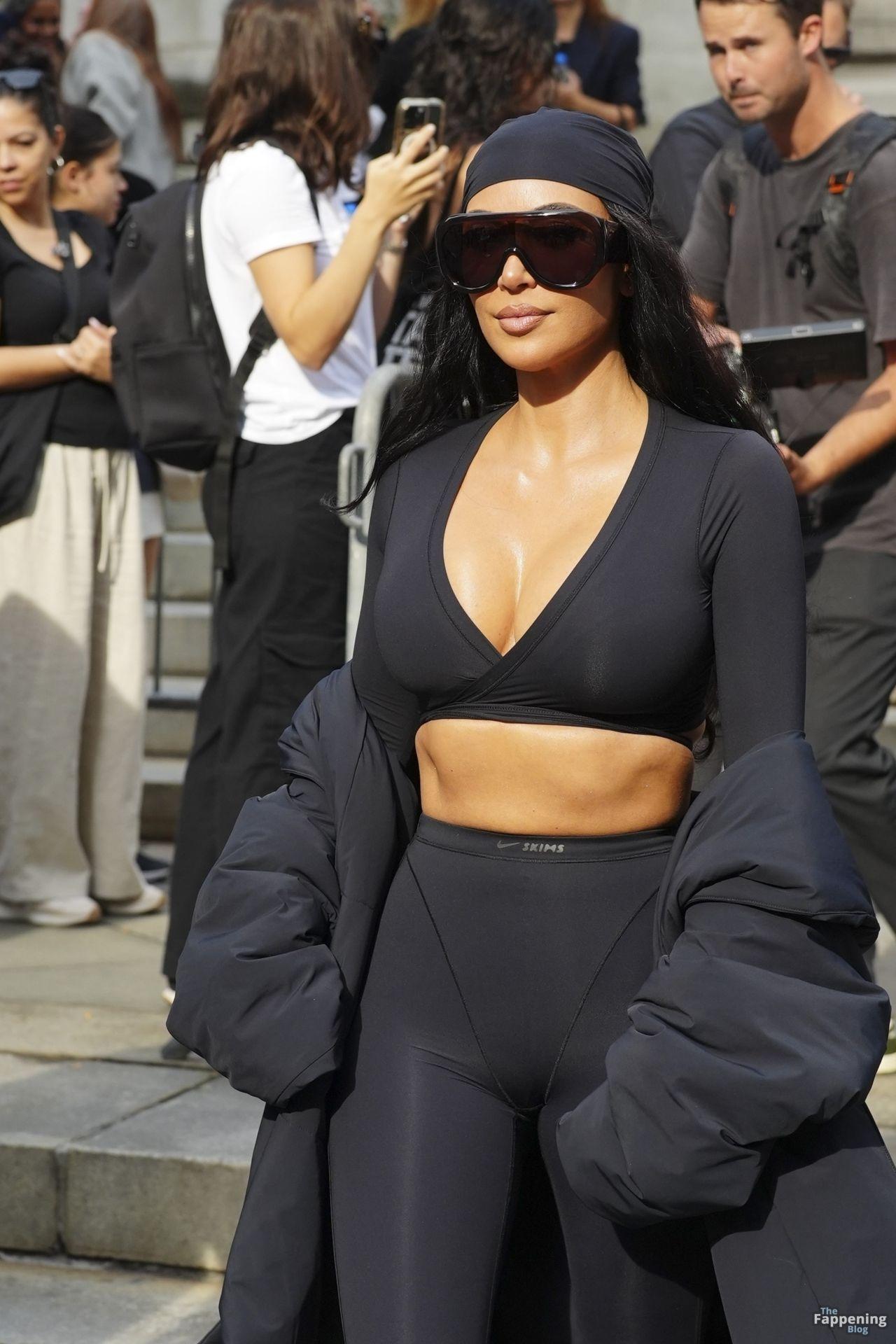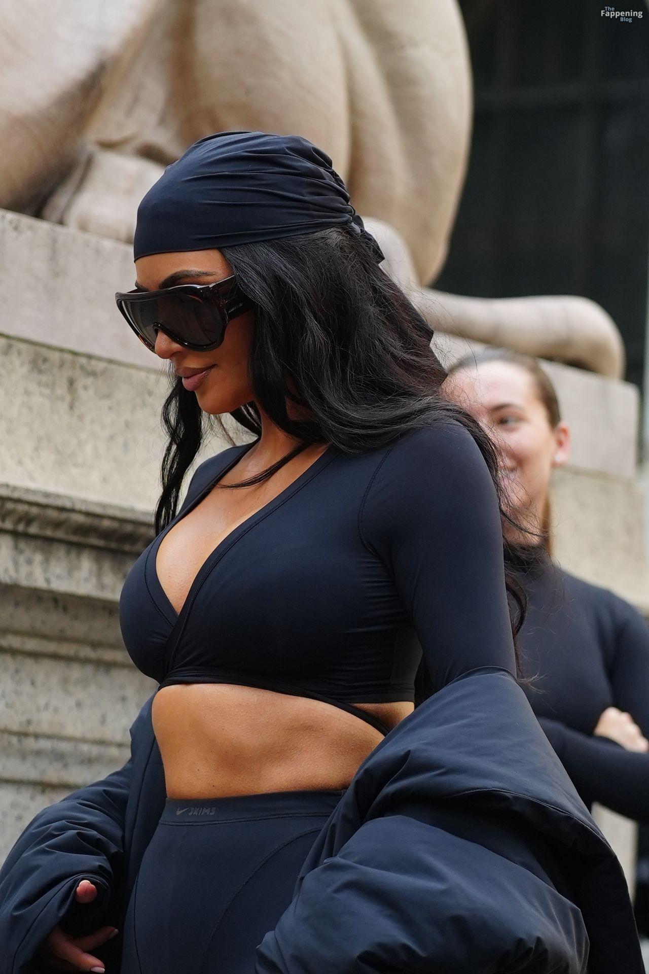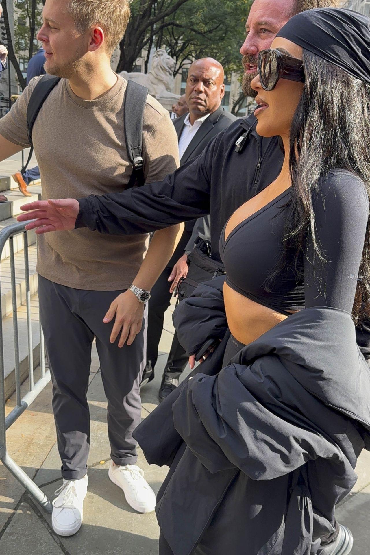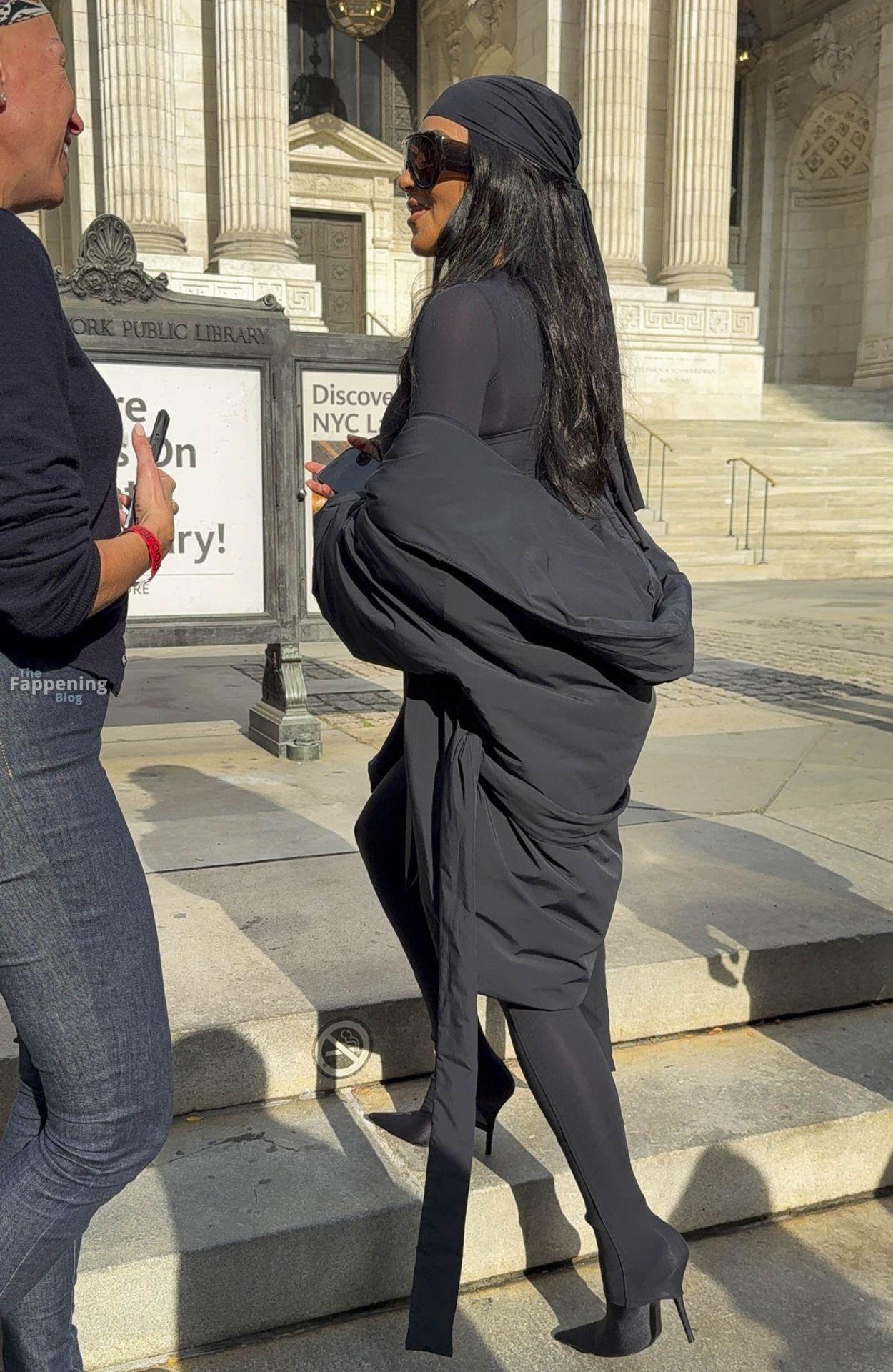 Kim Kardashian stepped out of the New York Public Library after the SKIMS x Nike fashion show. She posed for pics and grabbed the spotlight easy with her chic style in NYC.