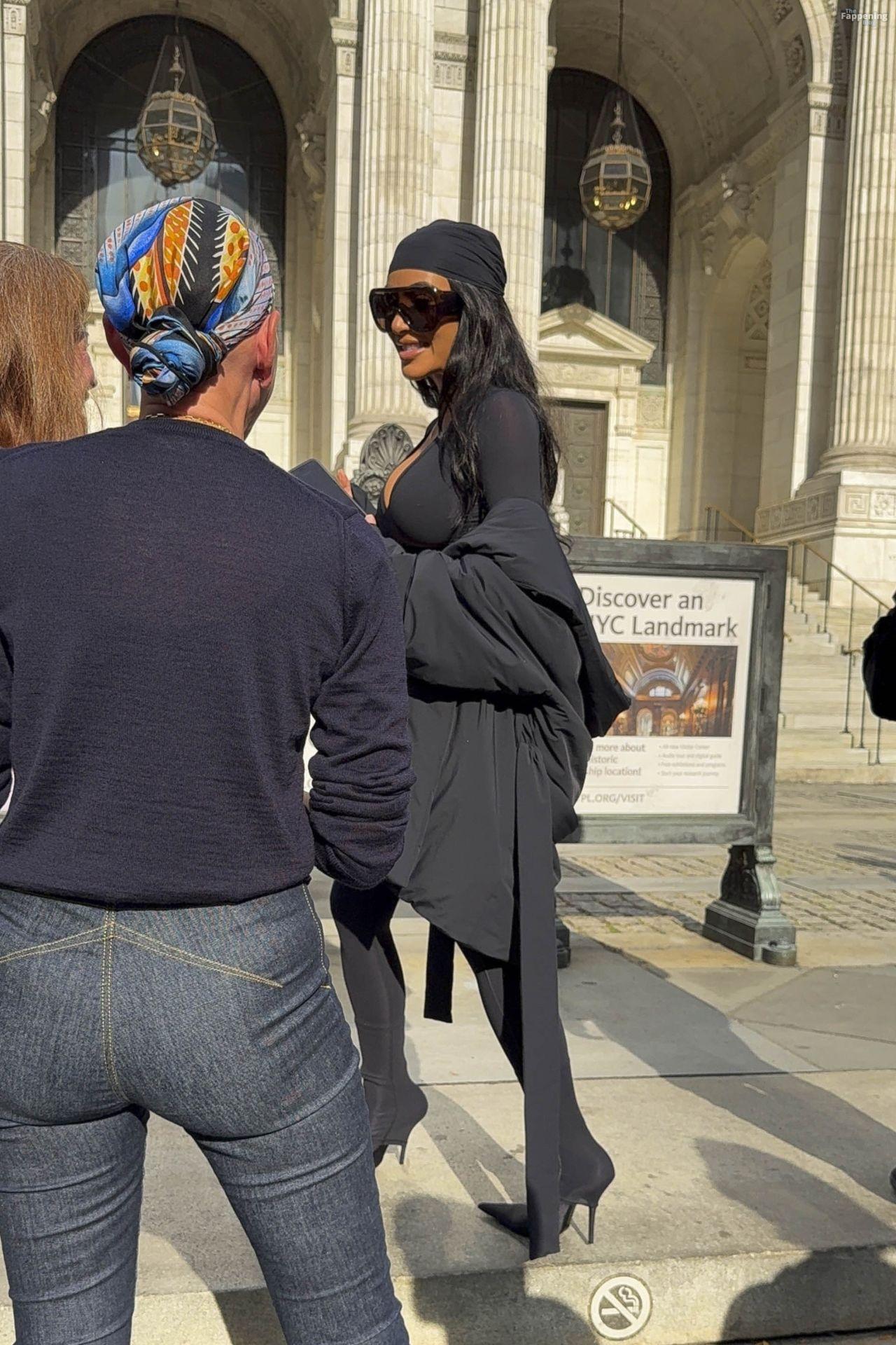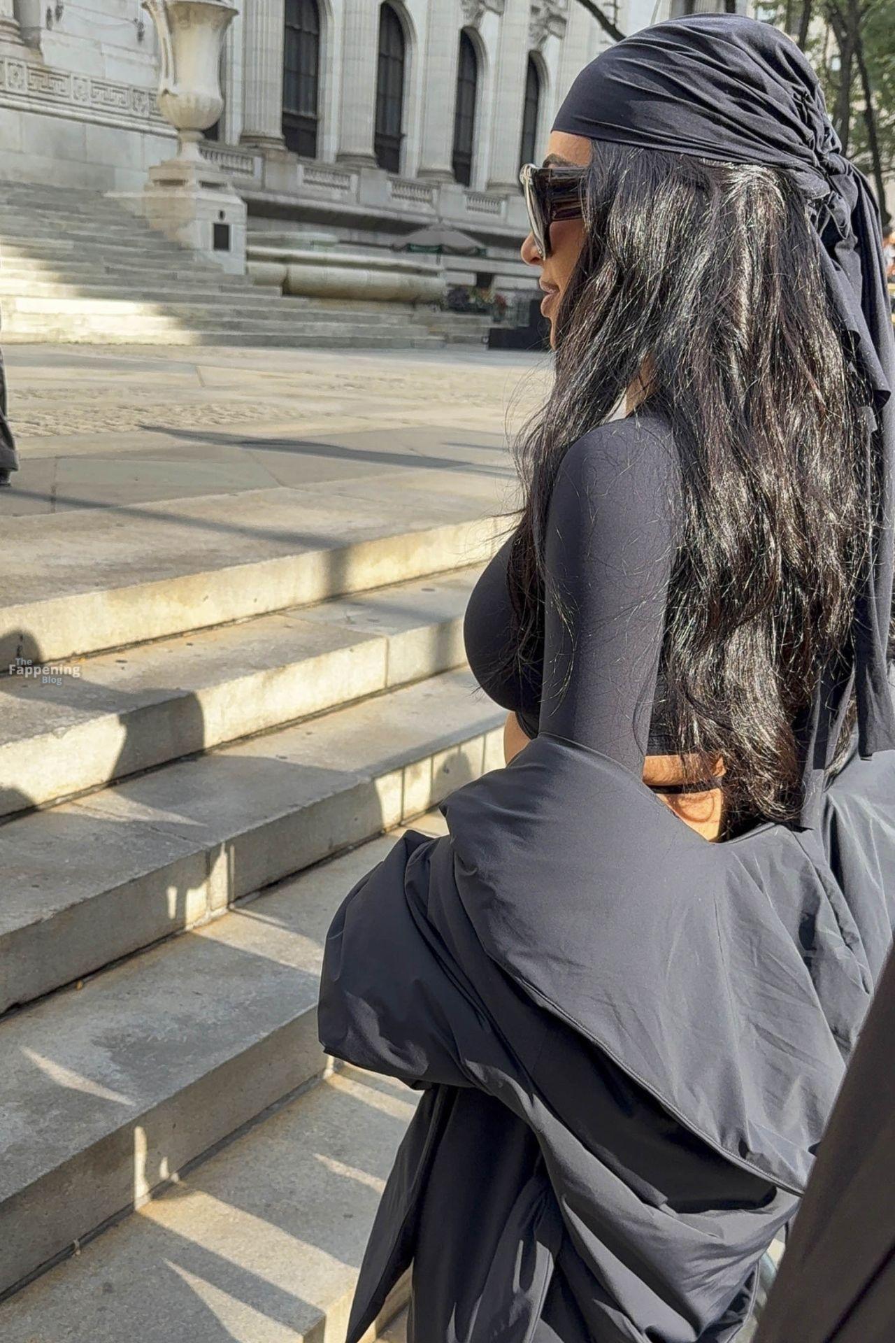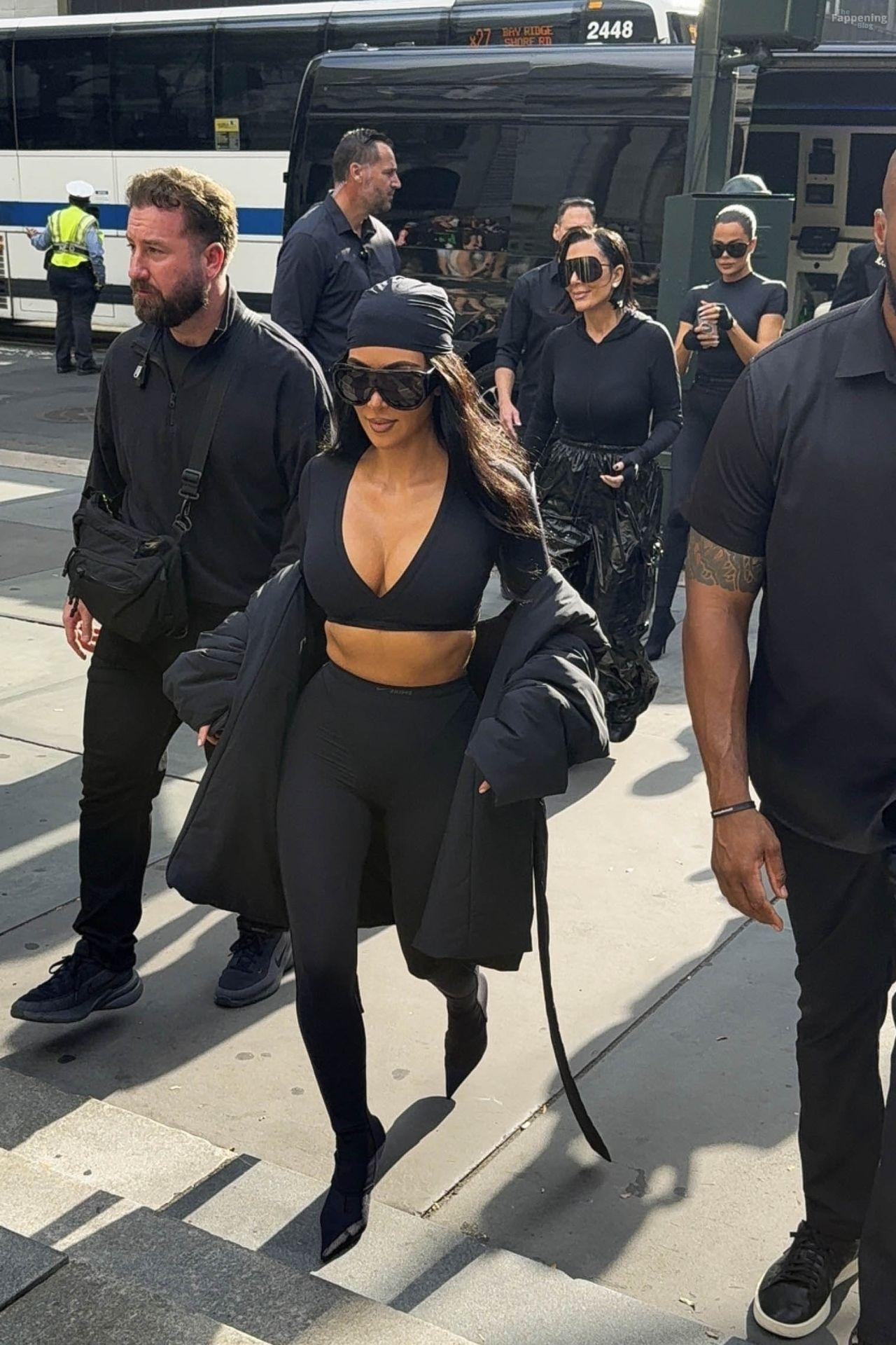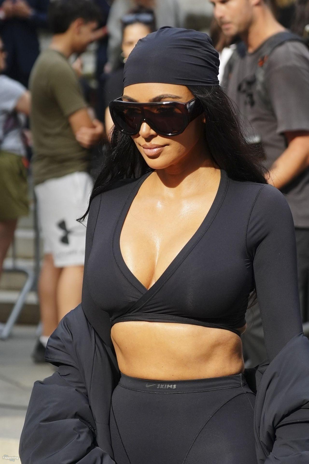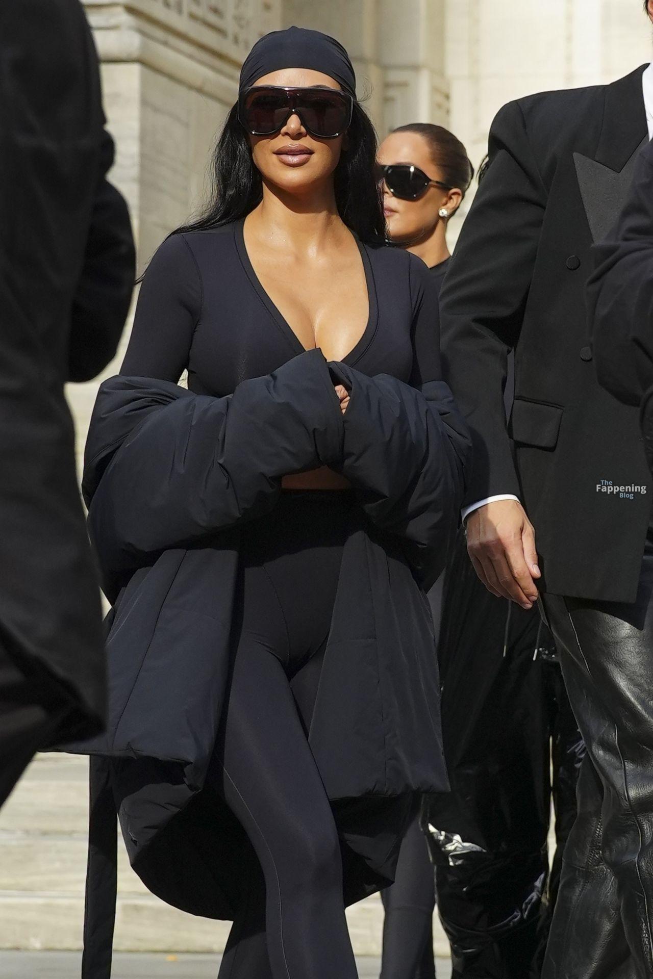 Kim Kardashian stepped out of the New York Public Library after the SKIMS x Nike fashion show. She posed for pics and grabbed the spotlight easy with her chic style in NYC.
