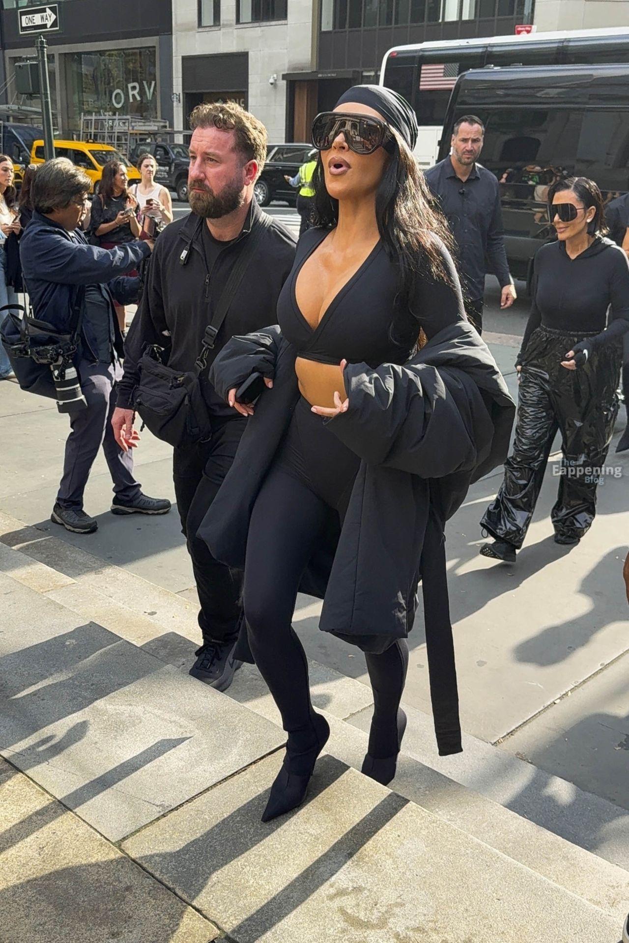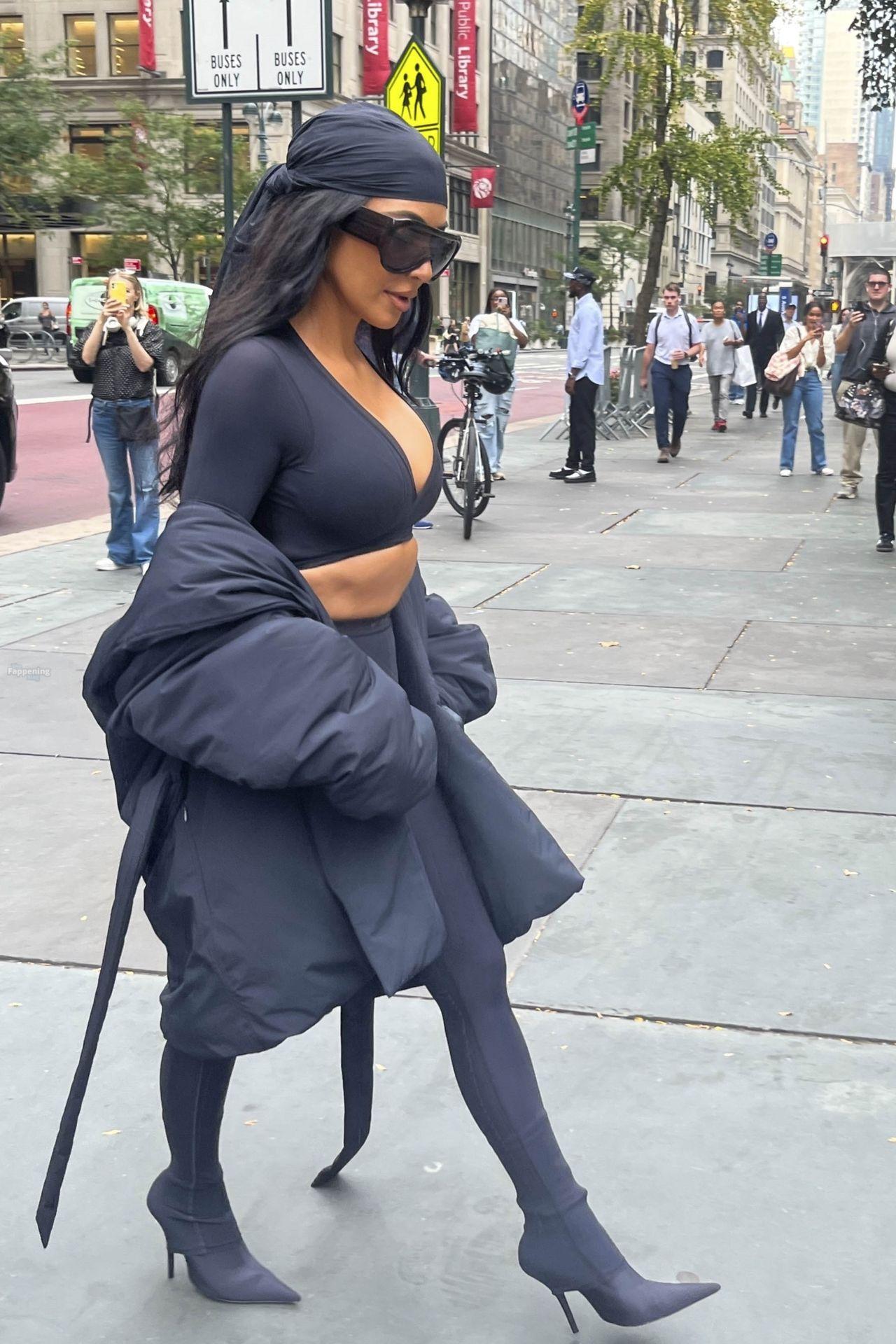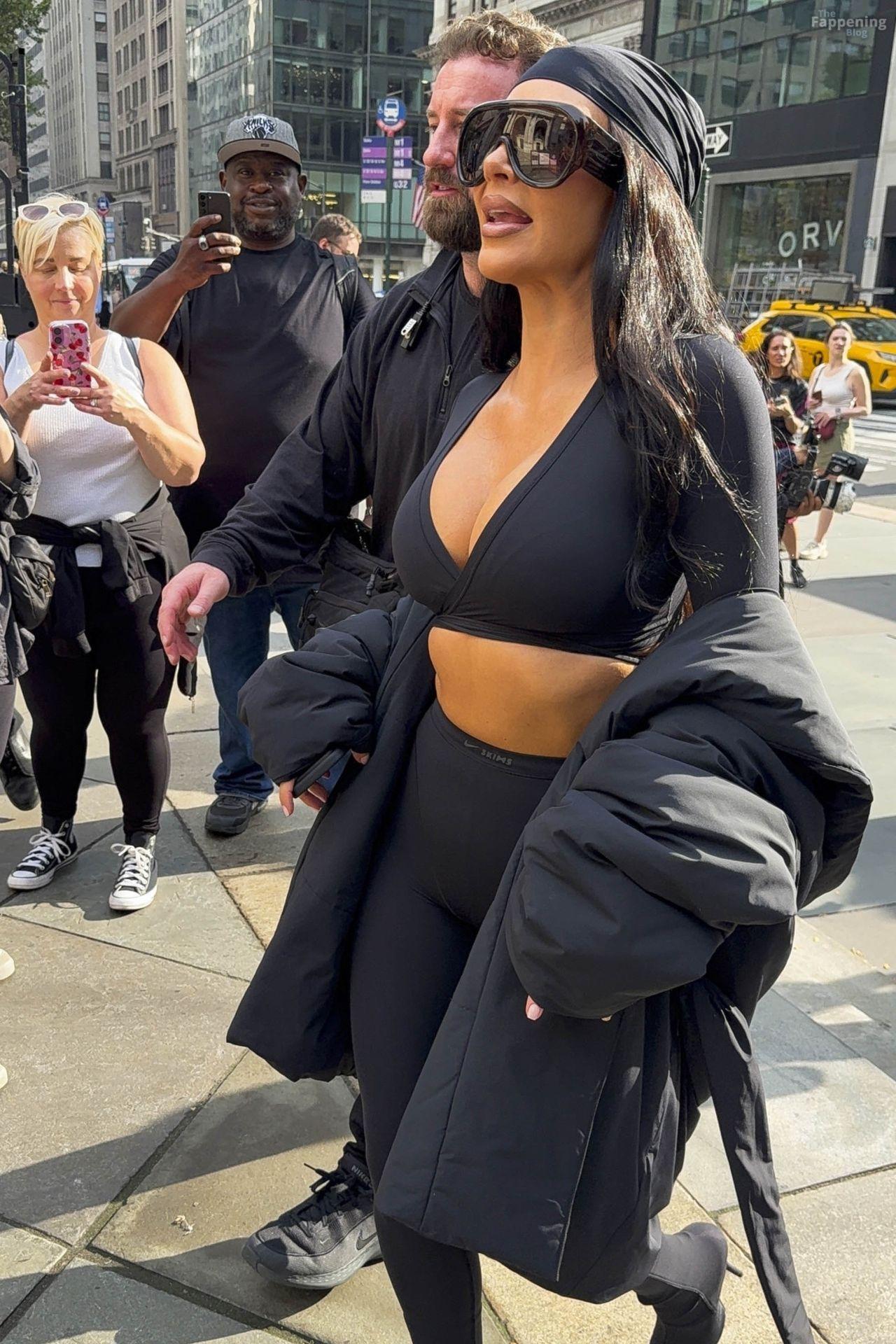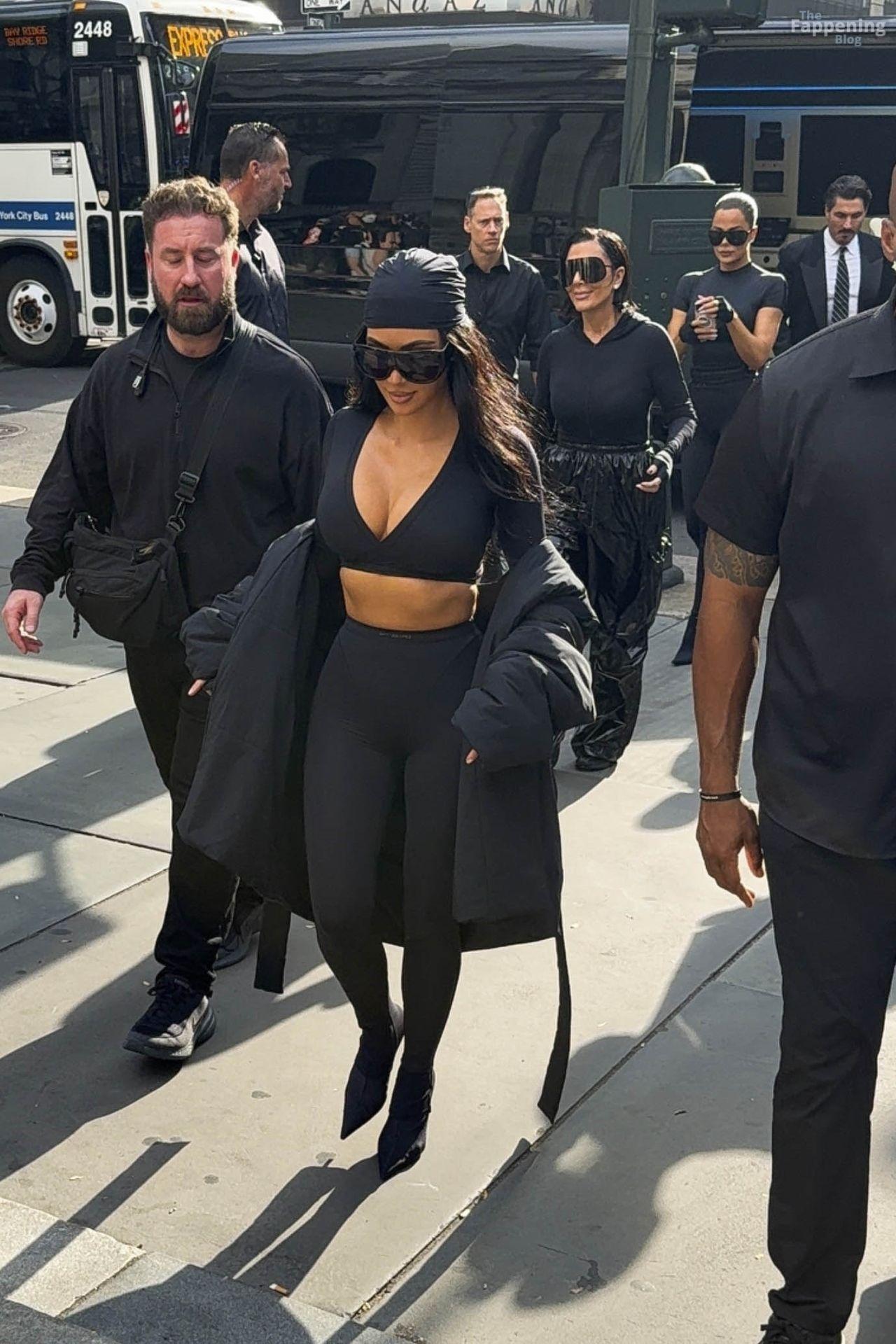 Kim Kardashian stepped out of the New York Public Library after the SKIMS x Nike fashion show. She posed for pics and grabbed the spotlight easy with her chic style in NYC.