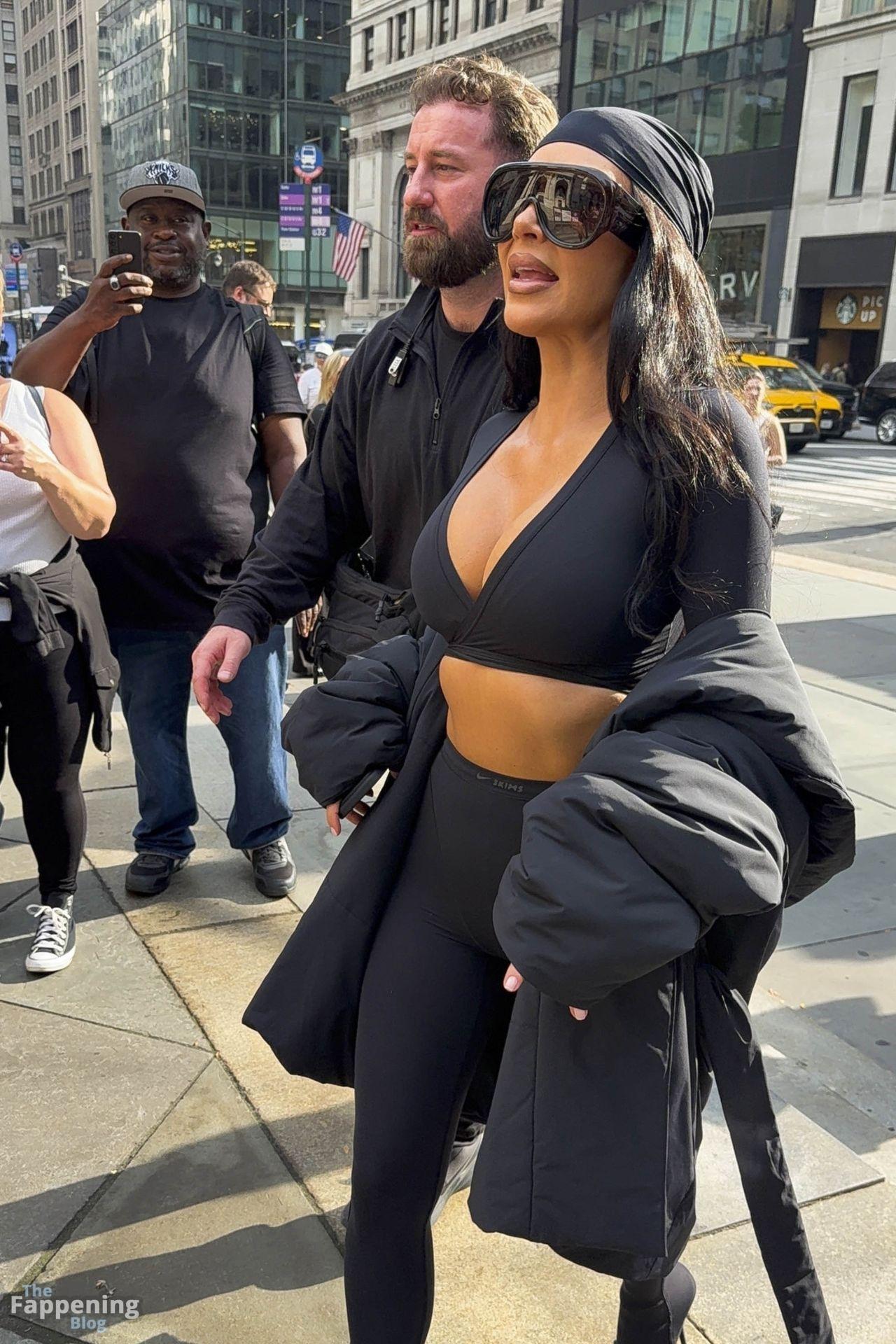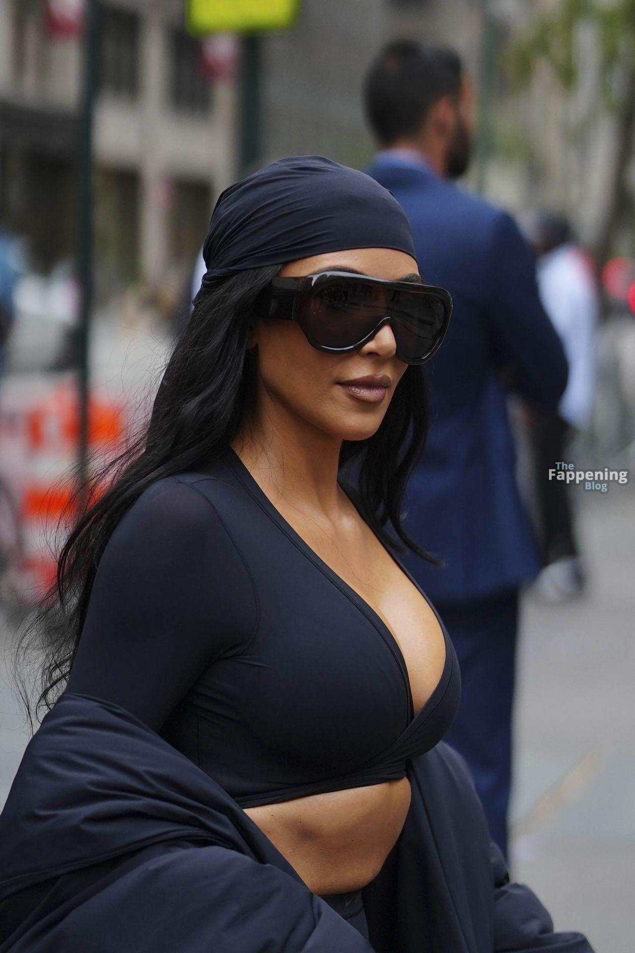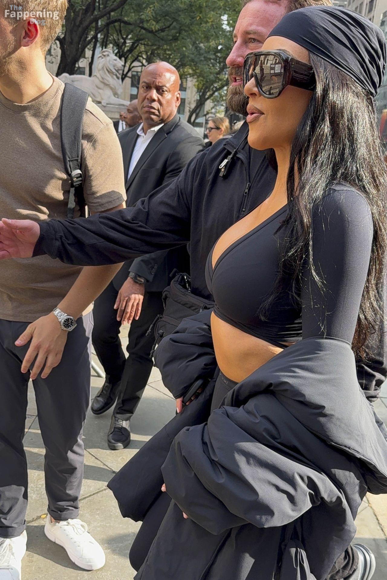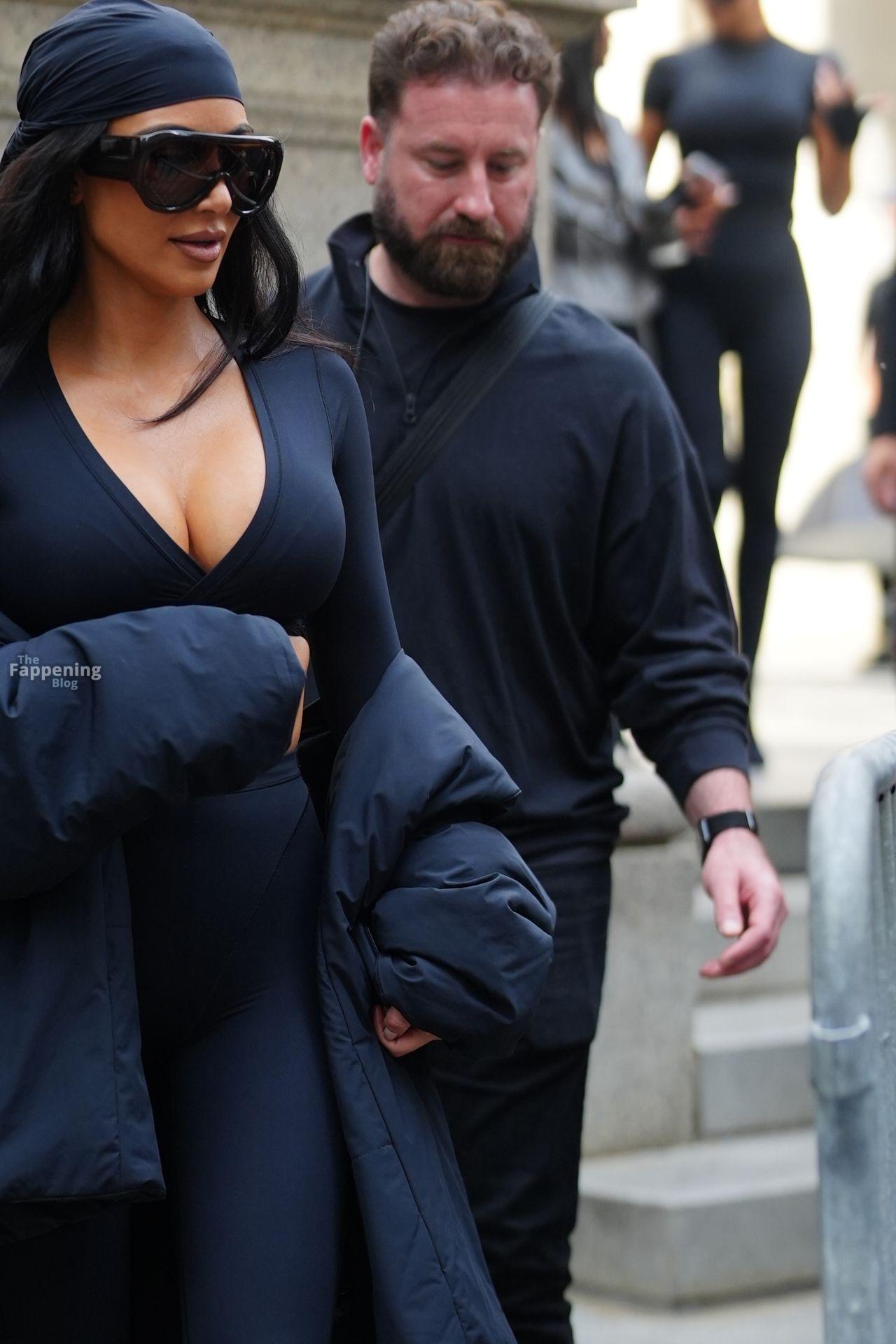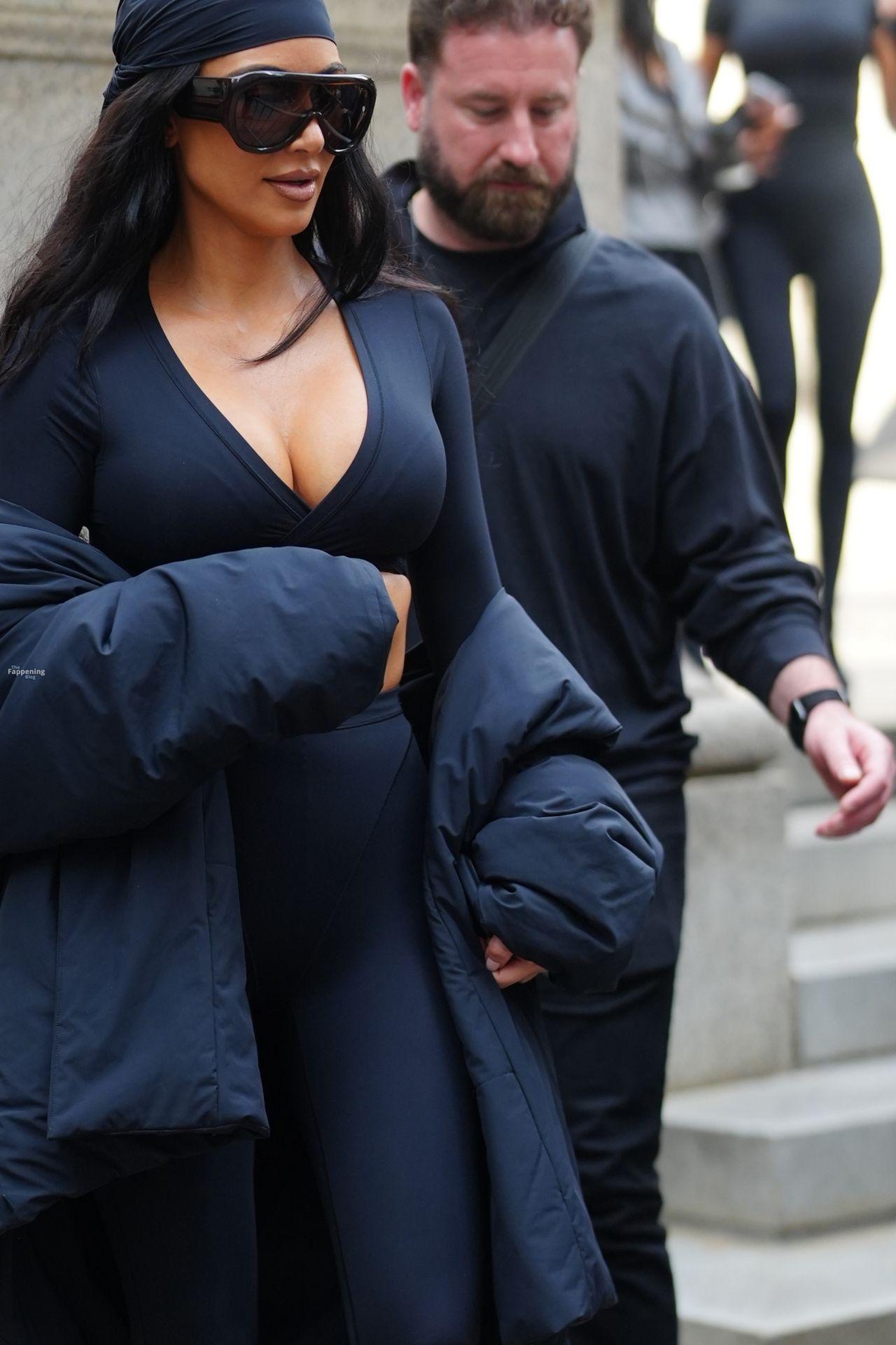 Kim Kardashian stepped out of the New York Public Library after the SKIMS x Nike fashion show. She posed for pics and grabbed the spotlight easy with her chic style in NYC.