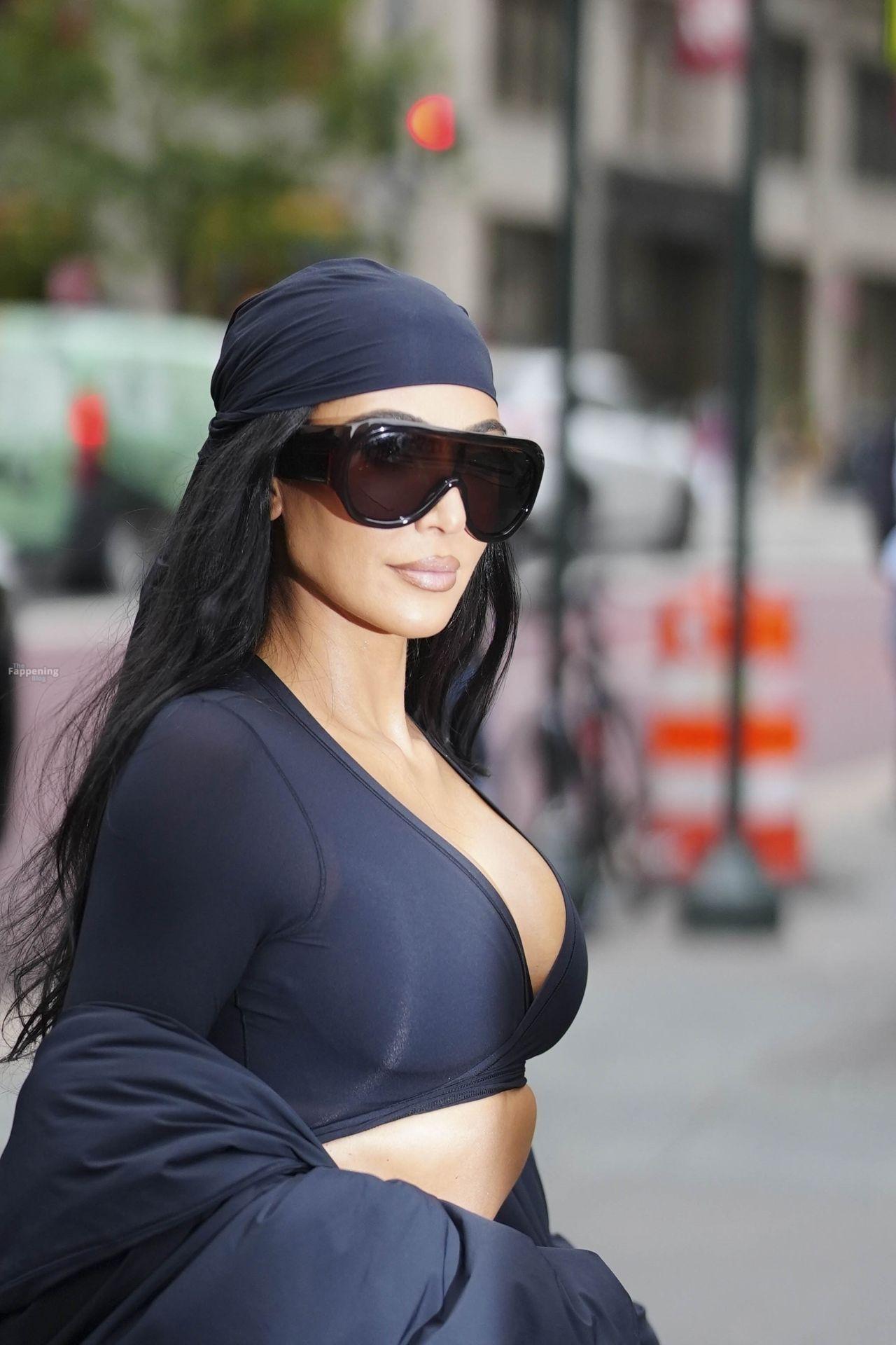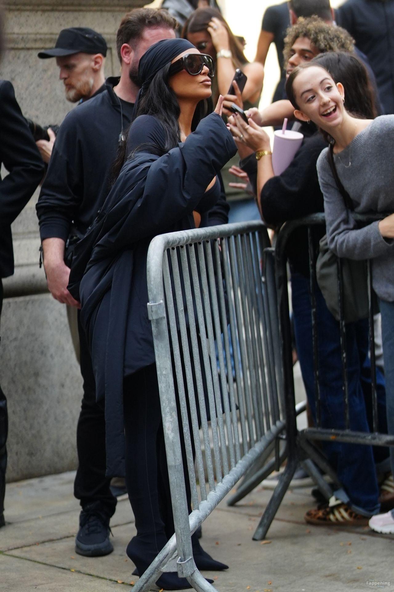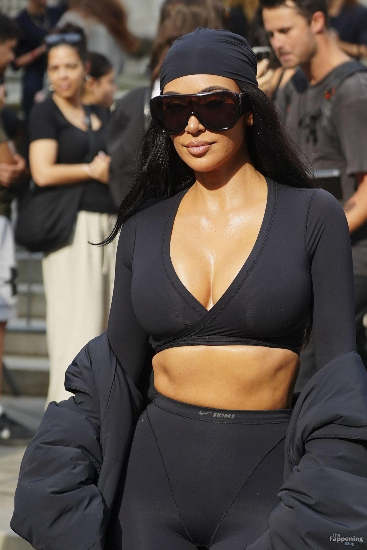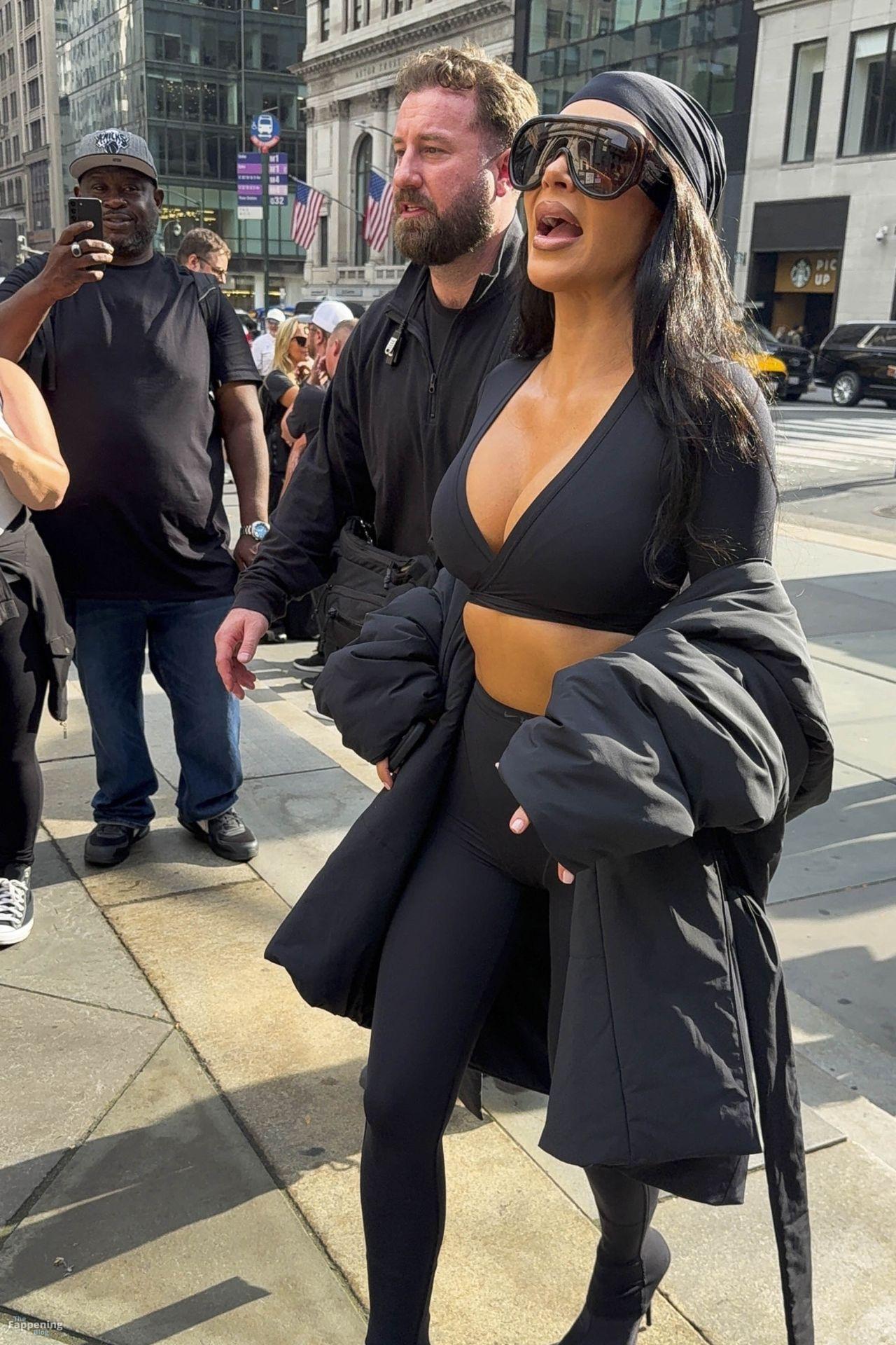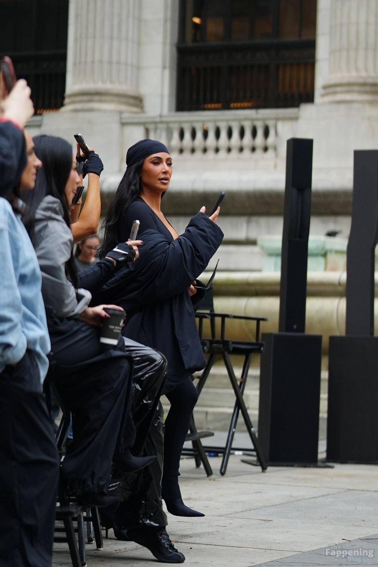 Kim Kardashian stepped out of the New York Public Library after the SKIMS x Nike fashion show. She posed for pics and grabbed the spotlight easy with her chic style in NYC.