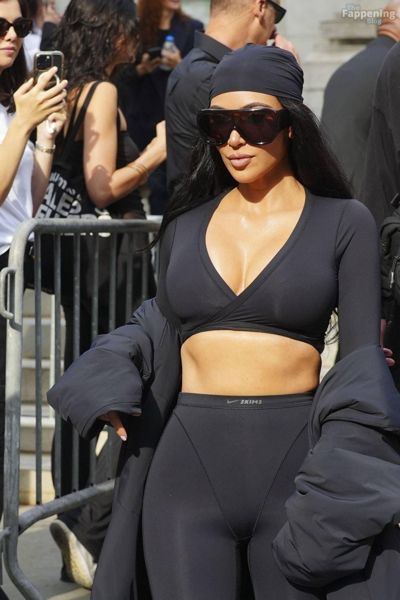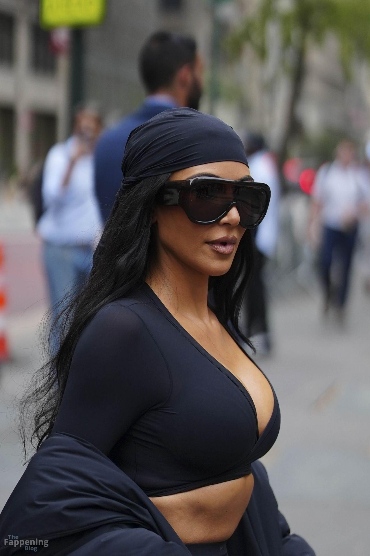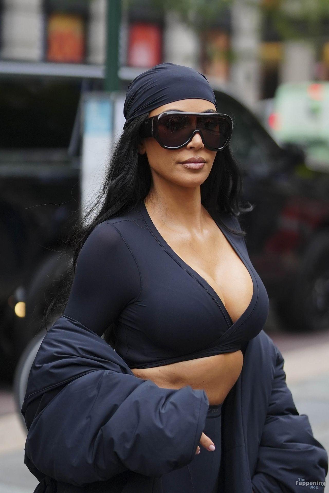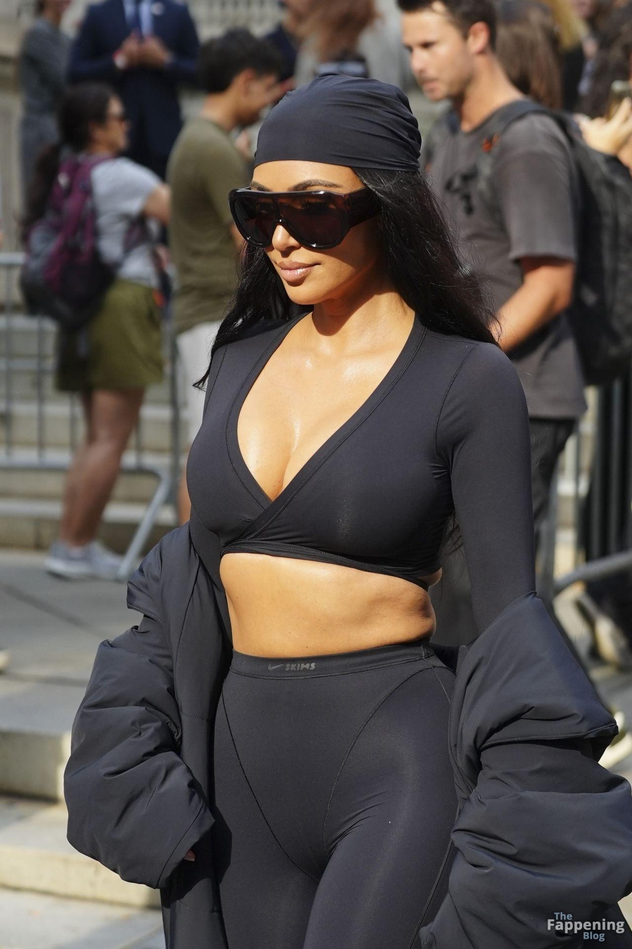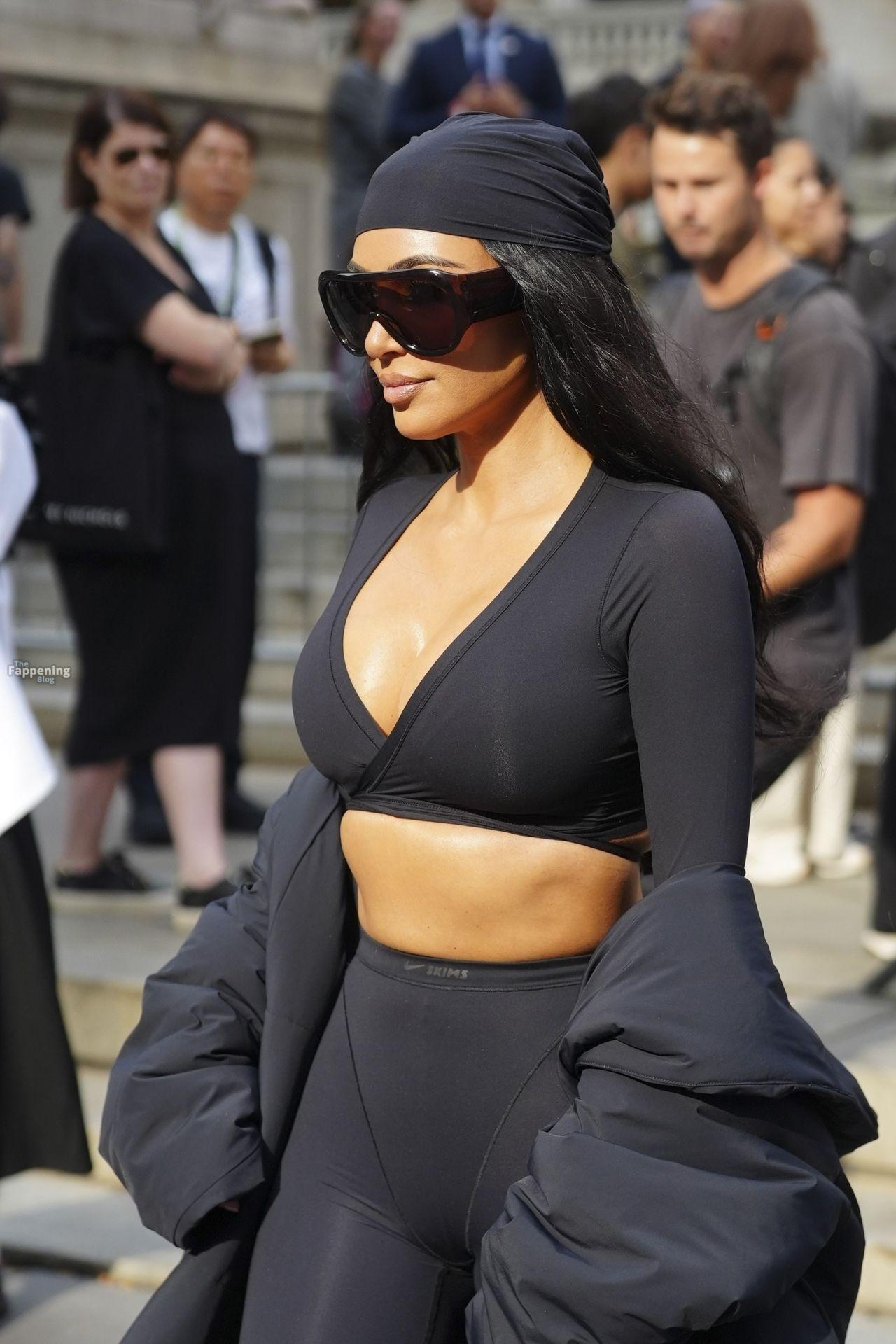 Kim Kardashian stepped out of the New York Public Library after the SKIMS x Nike fashion show. She posed for pics and grabbed the spotlight easy with her chic style in NYC.