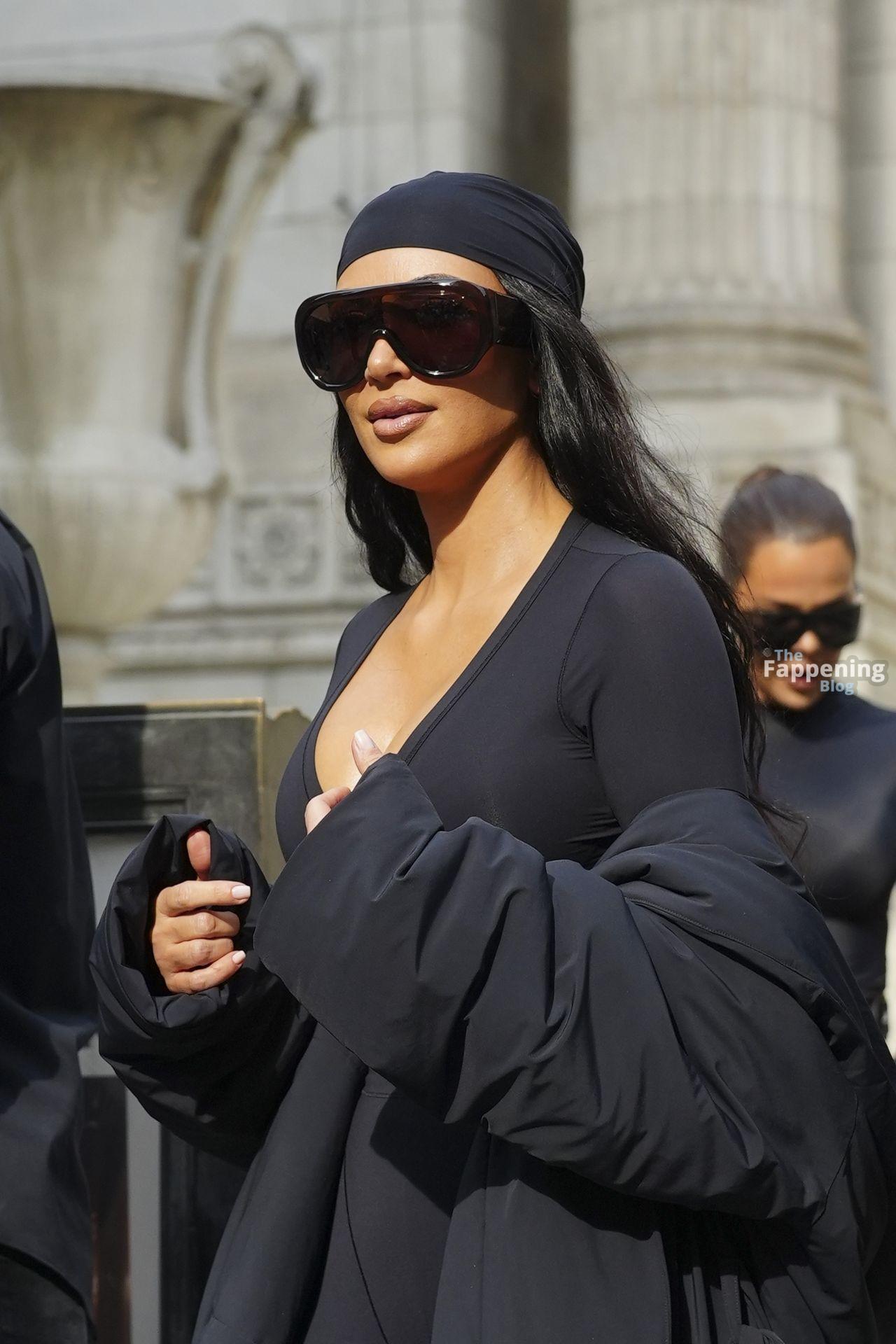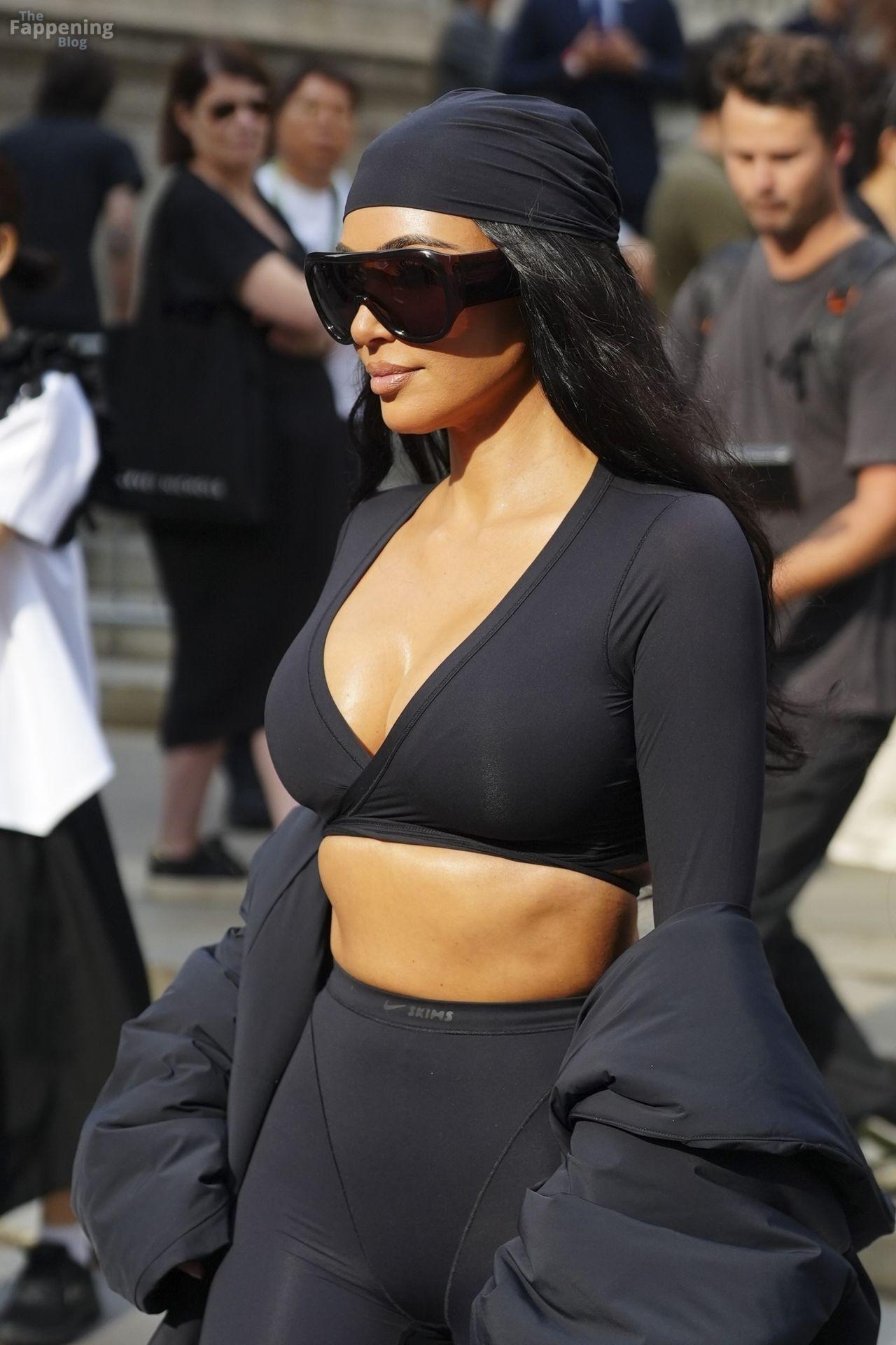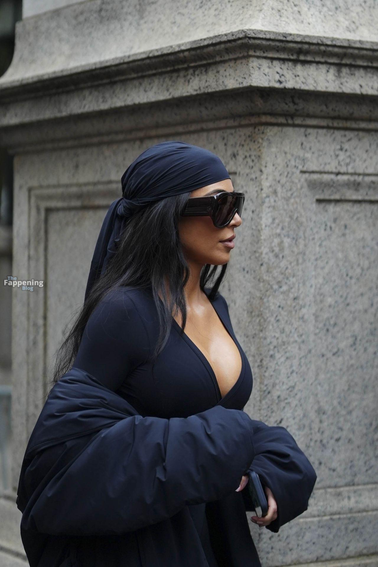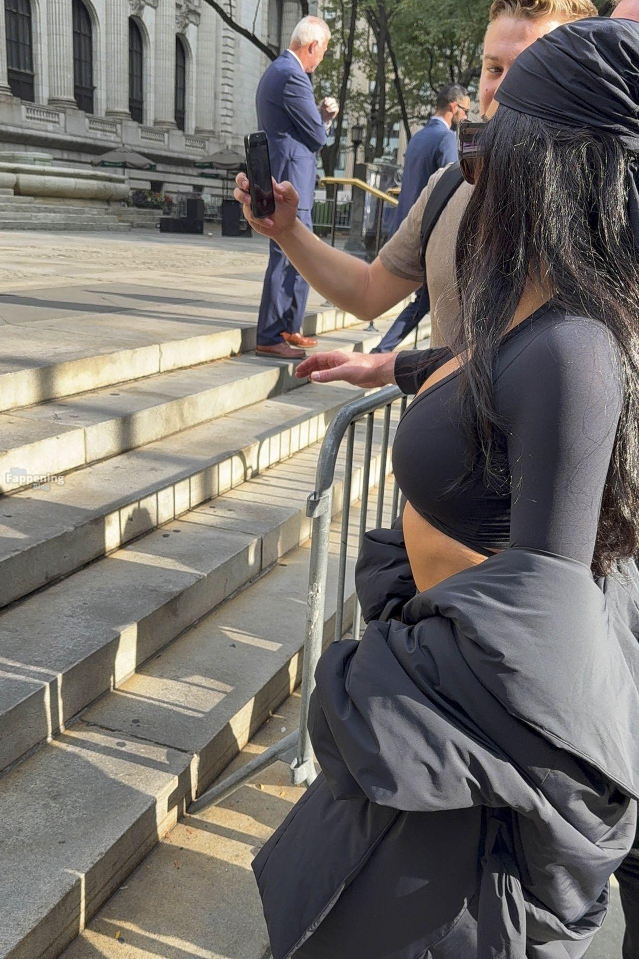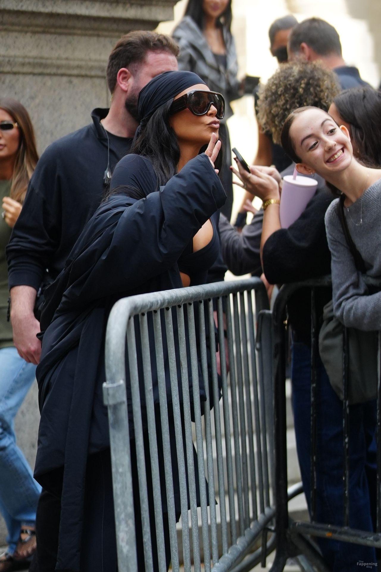 Kim Kardashian stepped out of the New York Public Library after the SKIMS x Nike fashion show. She posed for pics and grabbed the spotlight easy with her chic style in NYC.