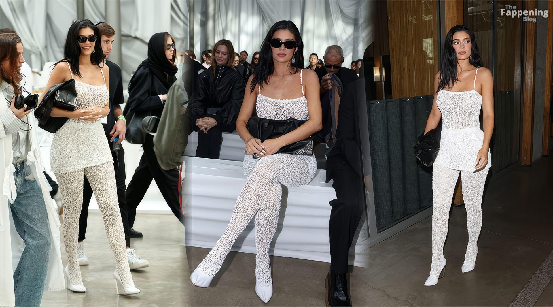Kylie Jenner showed off her full body in a see-through white crochet at Maison Margiela for Paris Fashion Week.