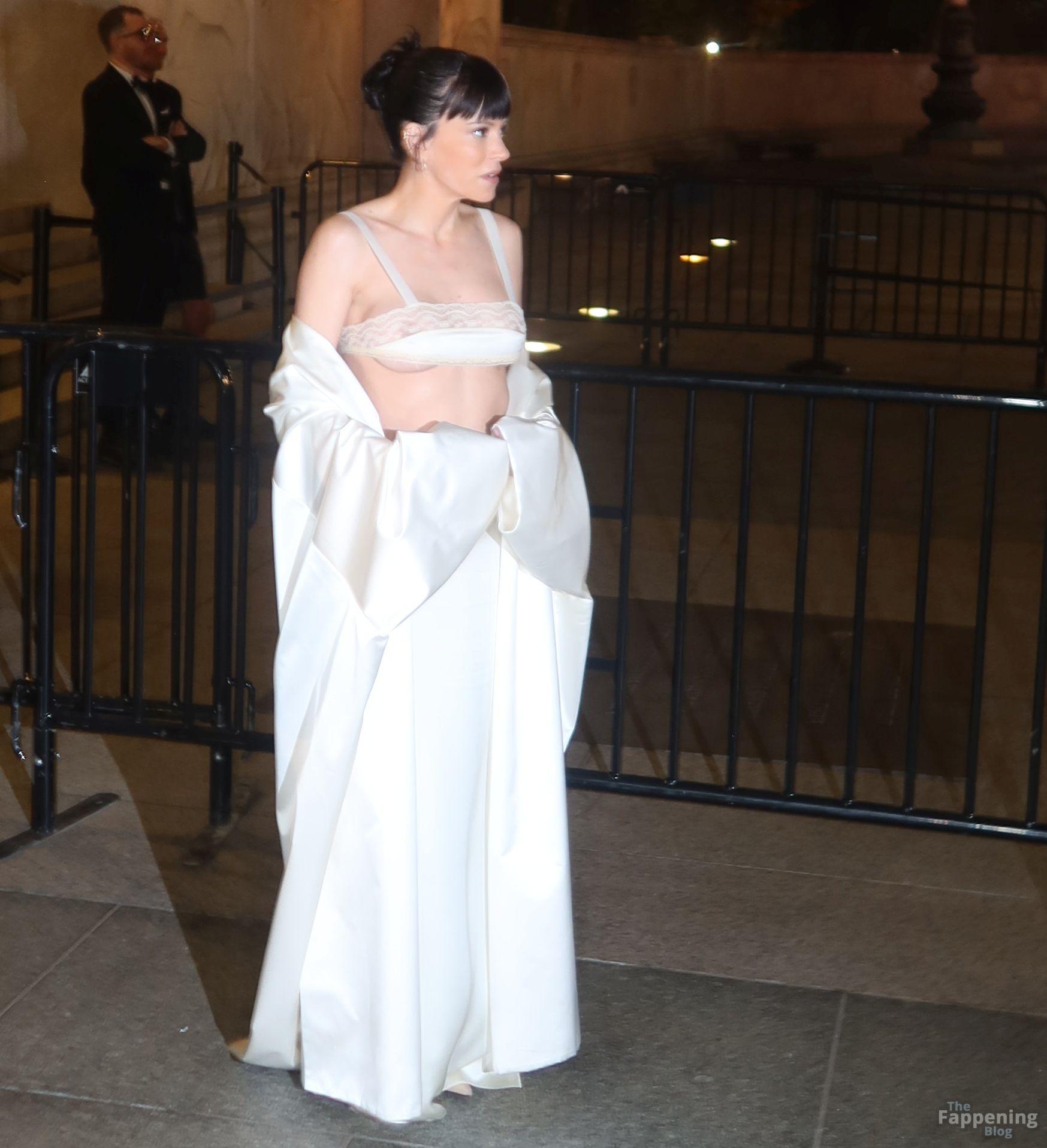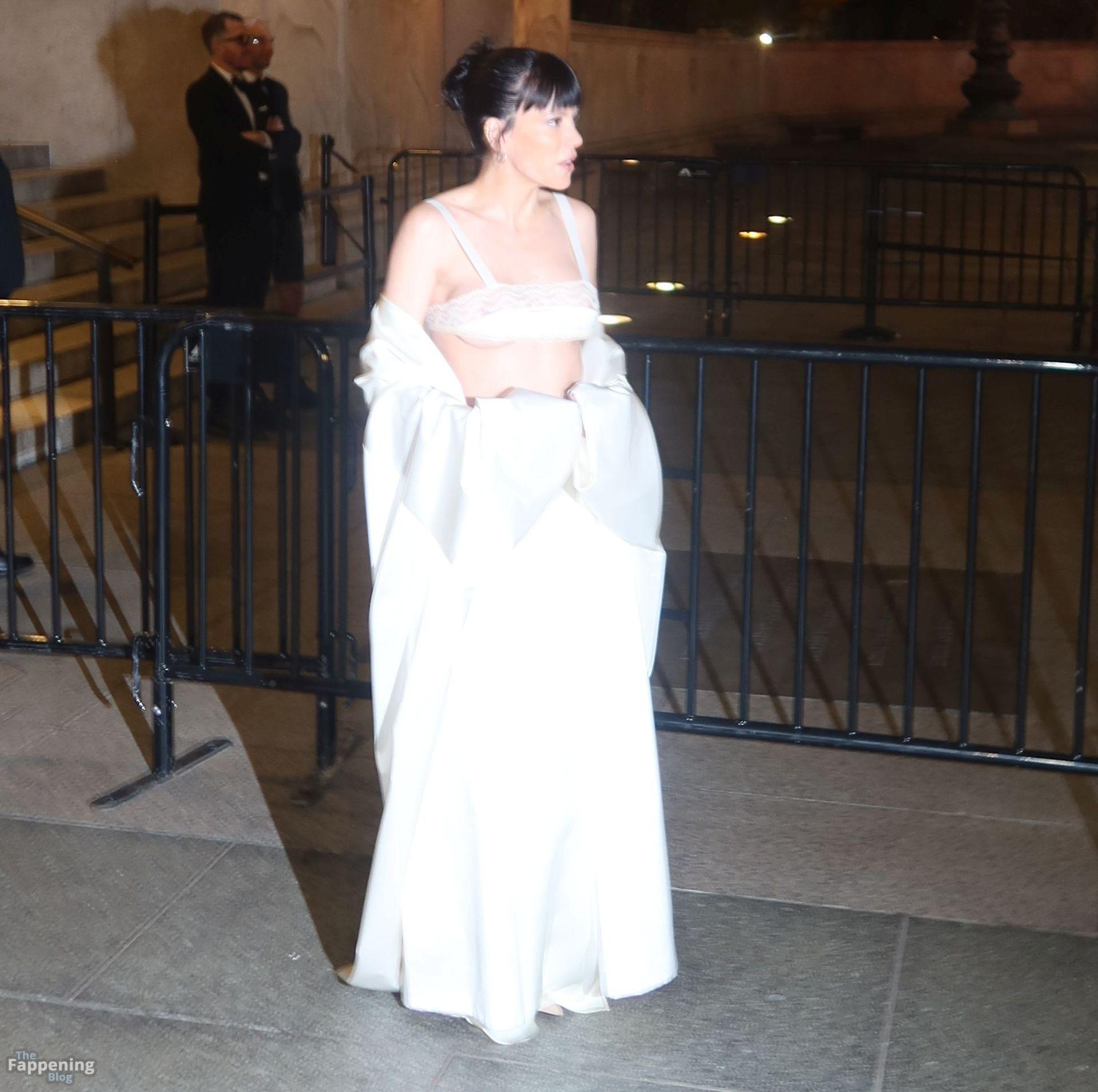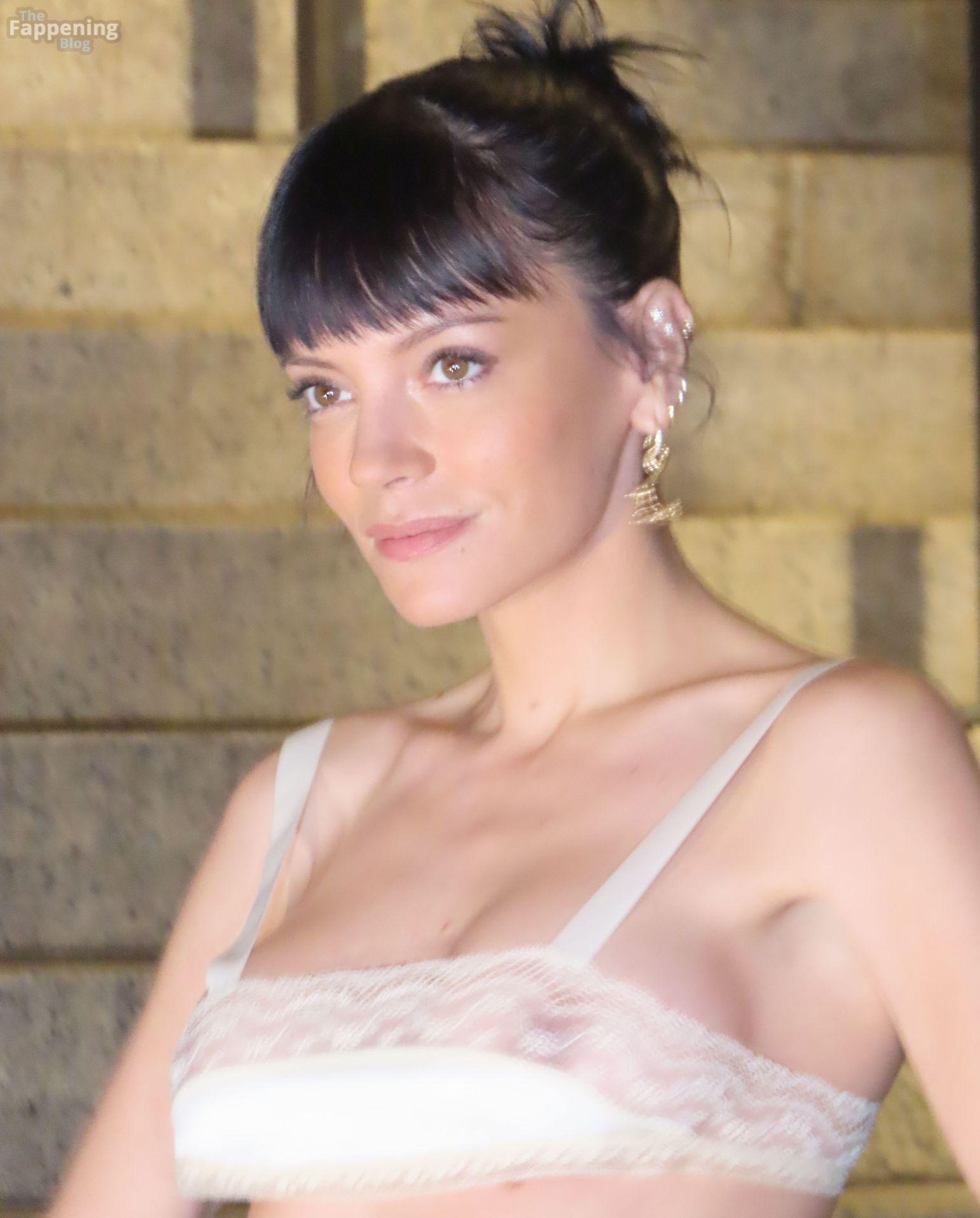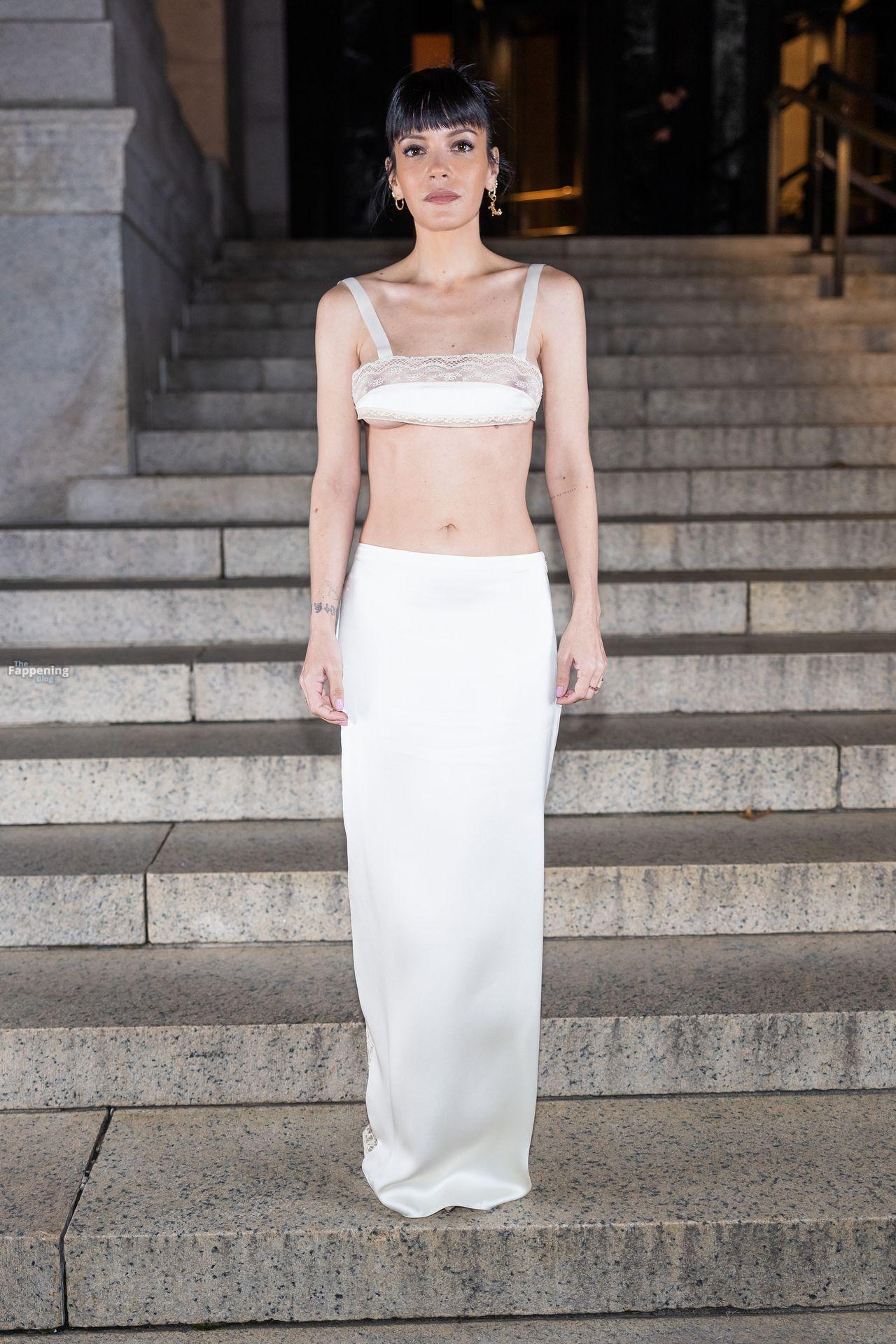 Singer Lily Allen is pictured braless while walkin’ on the red carpet at the 2025 CFDA Fashion Awards held at the American Museum of Natural History in New York.
