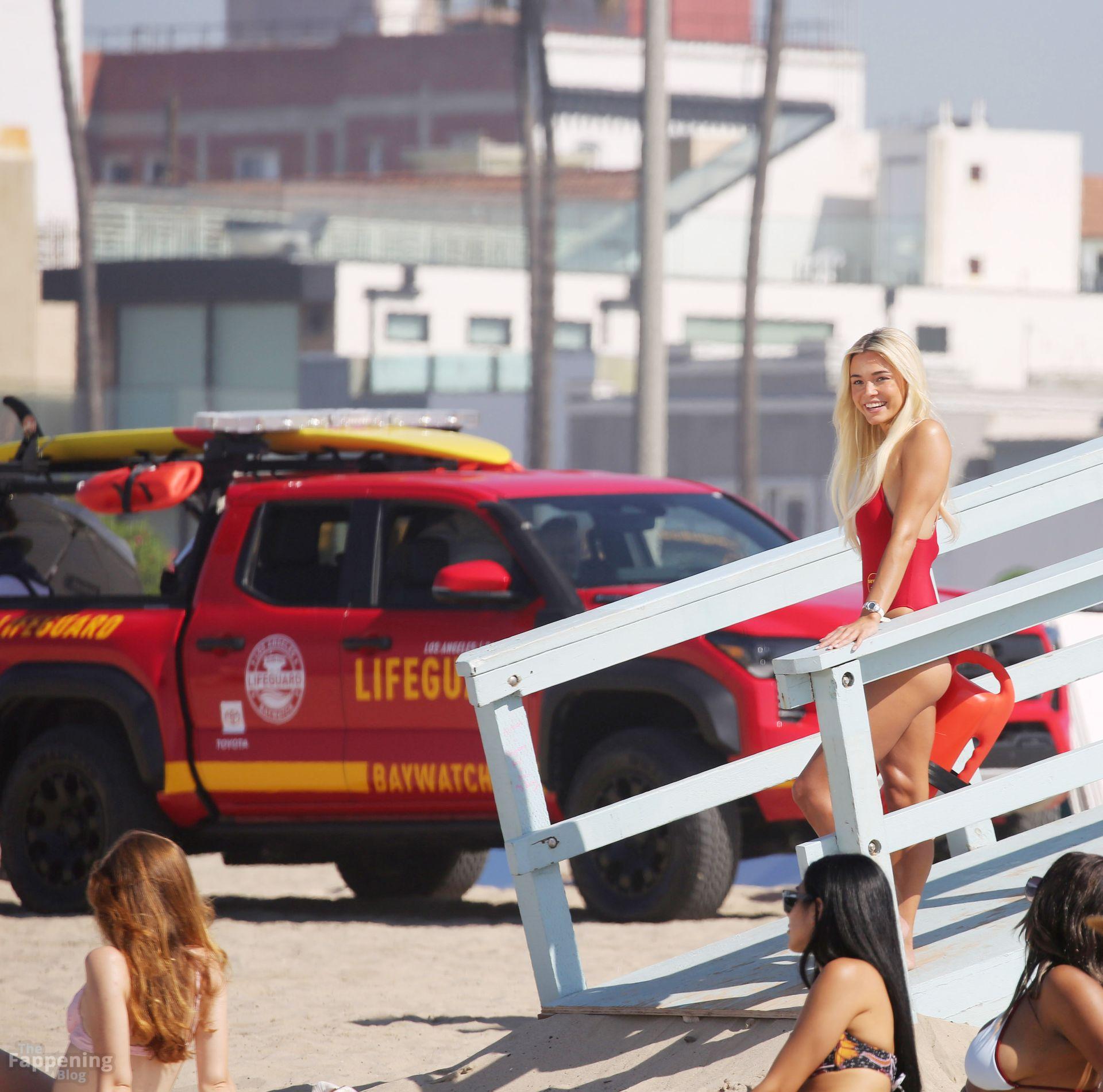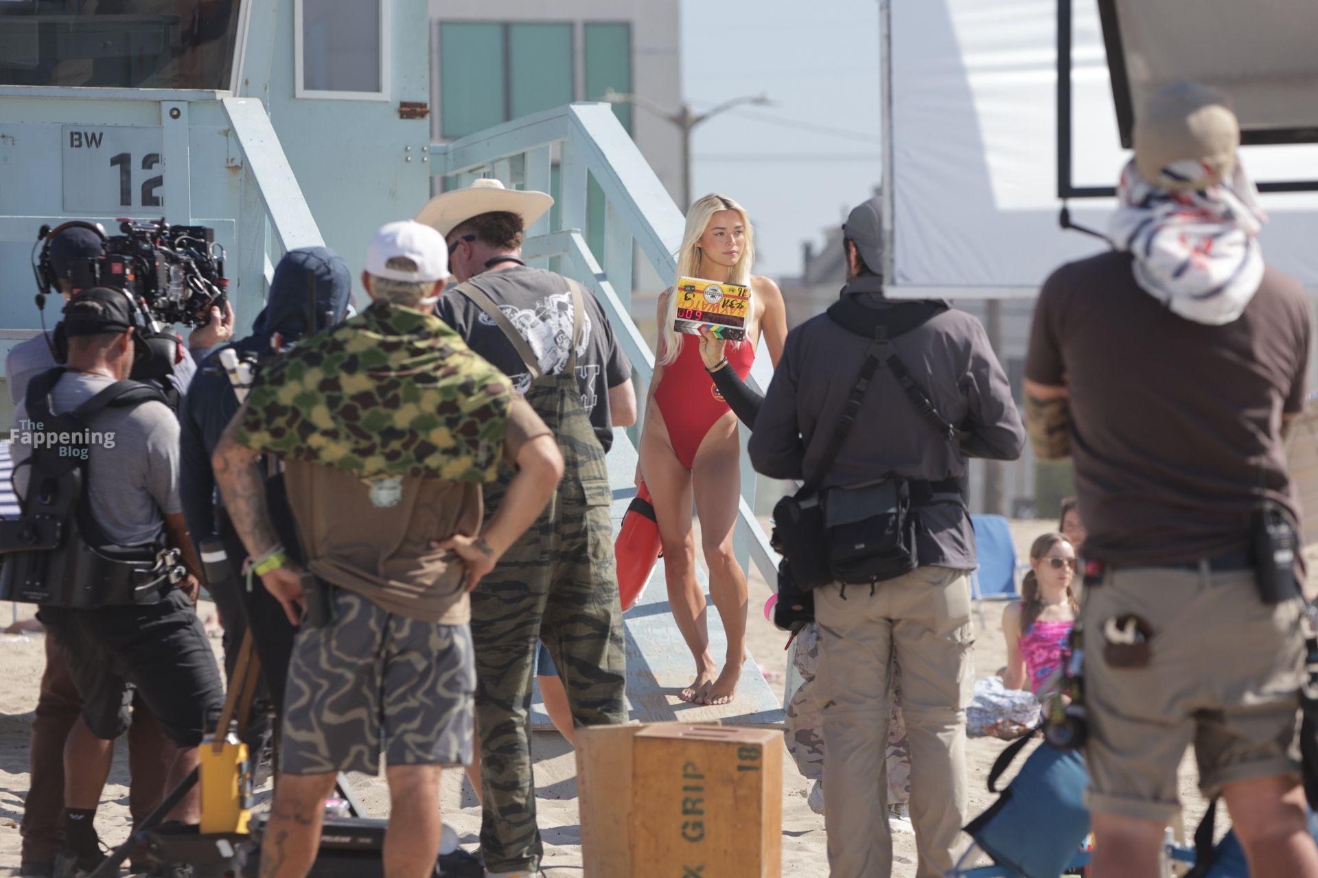 Livvy Dunne stuns in iconic red swimwear while filming the “Baywatch Reboot” in Malibu, bringing a fresh take to the classic beach look.