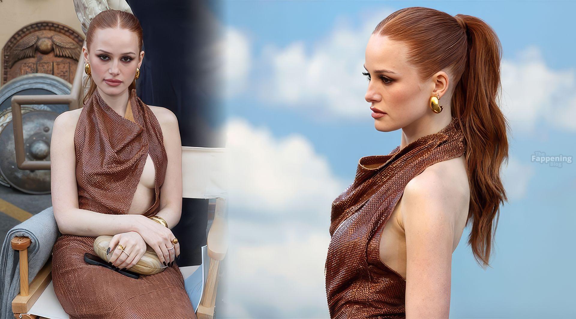 Braless actress Madelaine Petsch owned Vogue World 2025, rockin’ a boob-barin’ gown.