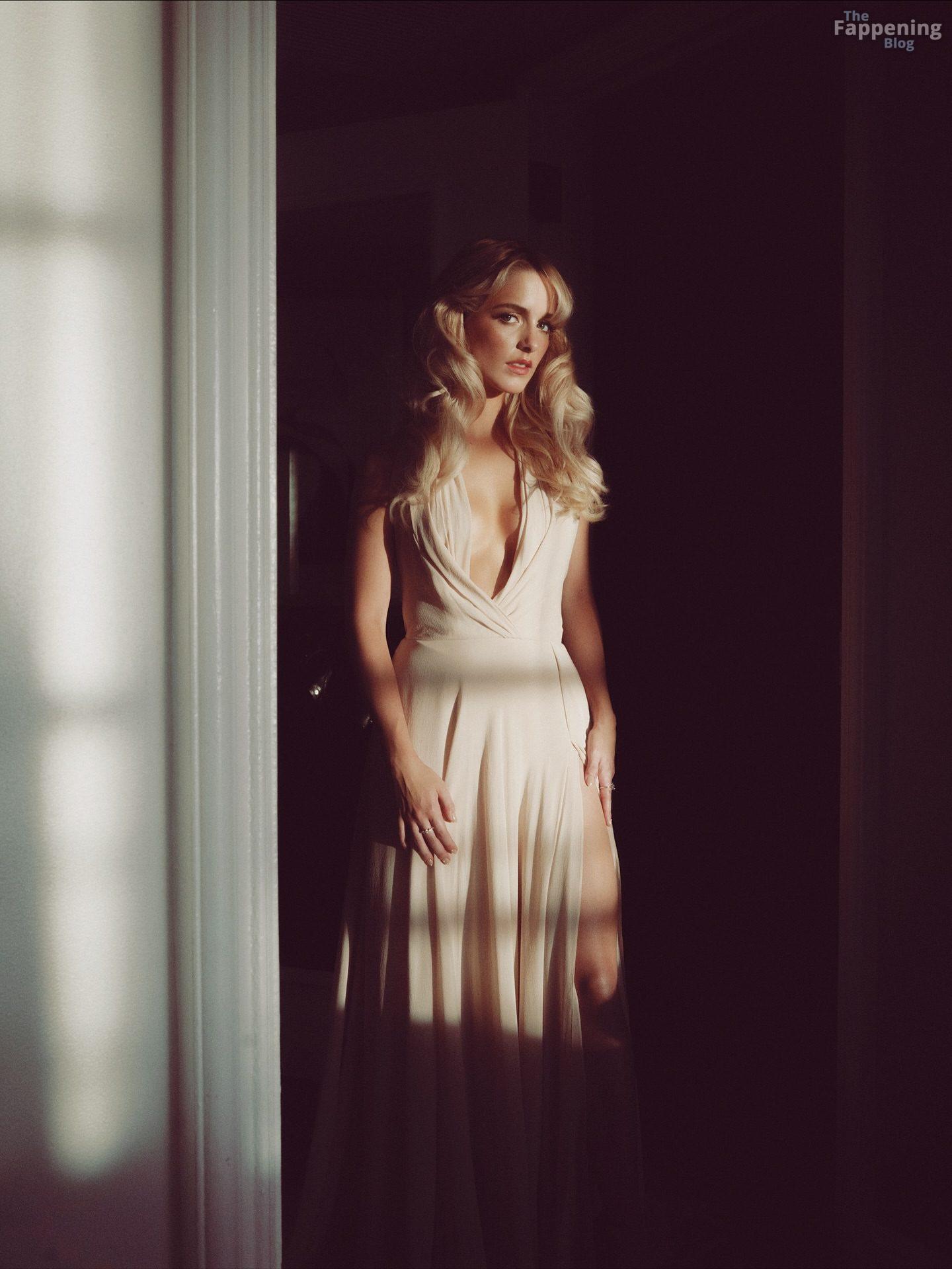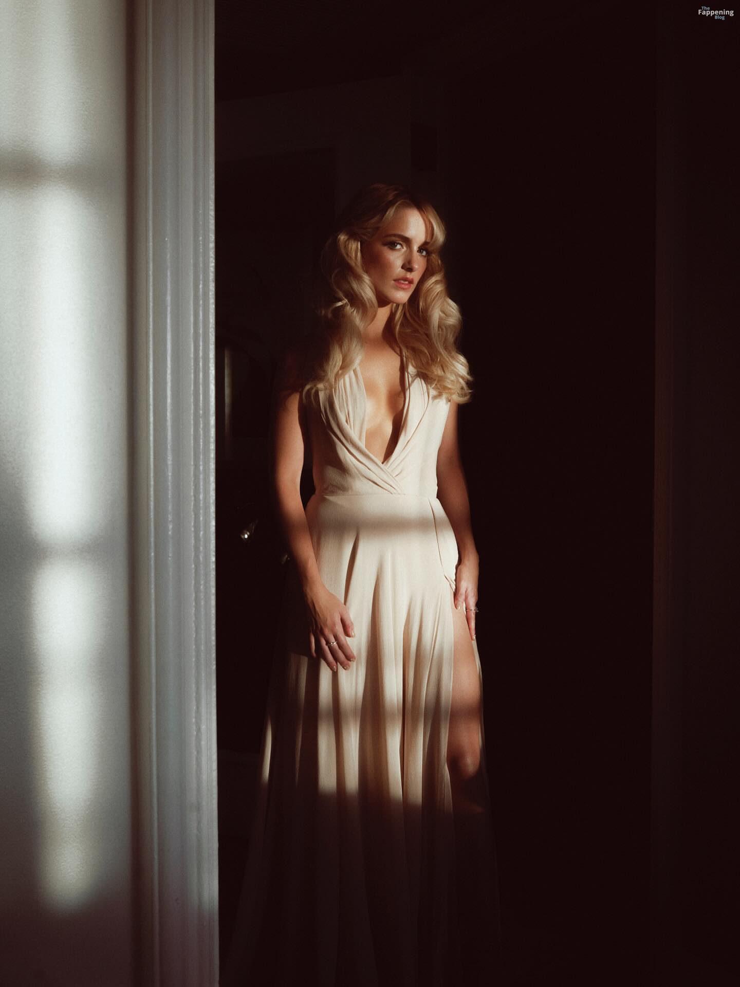 The “Regretting You” star Mckenna Grace poses in a daring deep-plunge gown for a seductive hotel shoot, flashin’ sexy tits and legs.