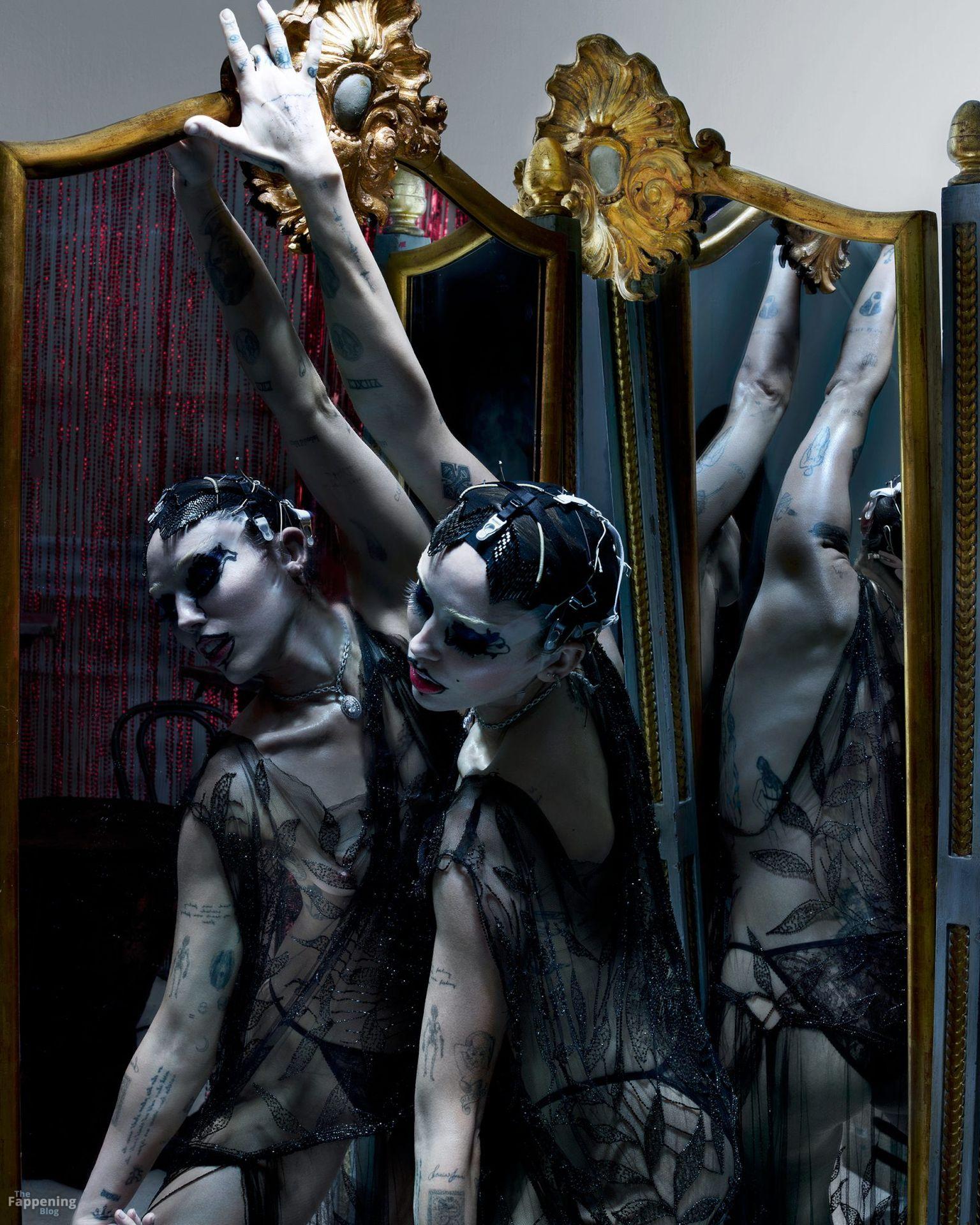 Miley Cyrus wildin’ out in CR Fashion Book October 2025, goin’ topless, all wet, and showin’ lingerie in Nick Knight’s hot photoshoot.
