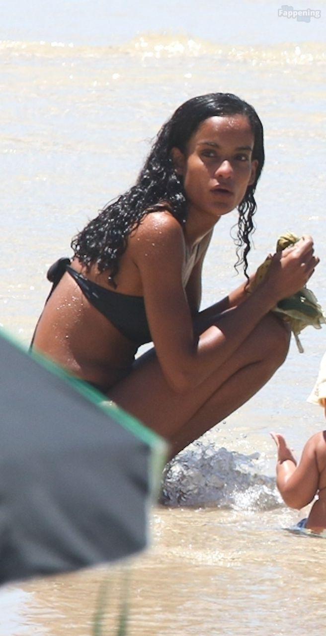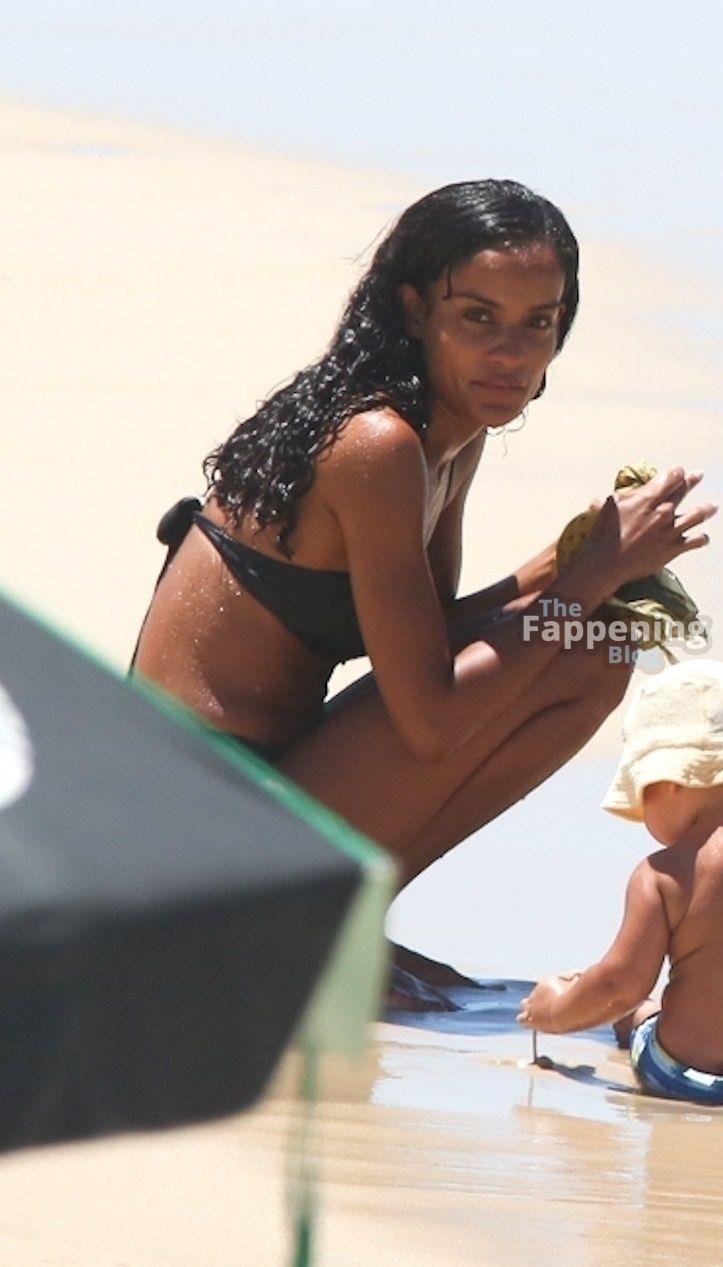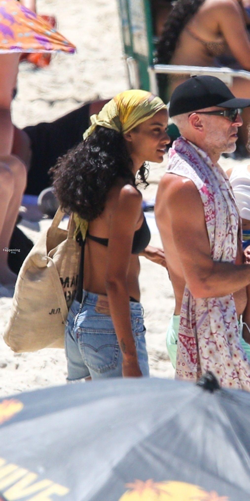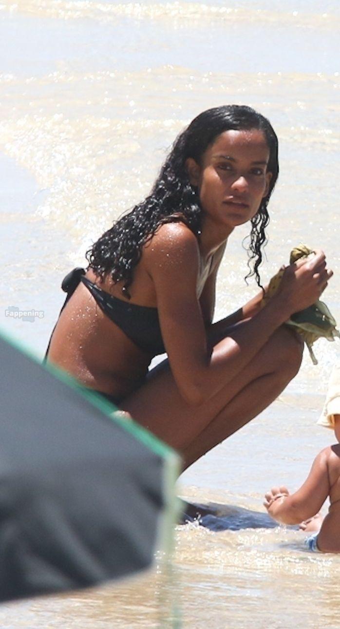 French actor and producer Vincent Cassel and his 29-year-old Brazilian partner, Narah Baptista, spend quality time with their son Caetano on the iconic shores of Rio de Janeiro at Ipanema Beach.