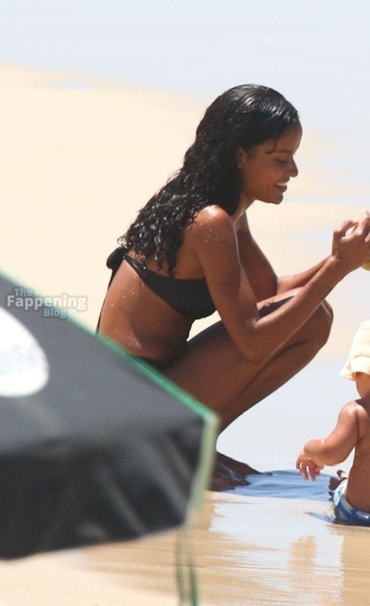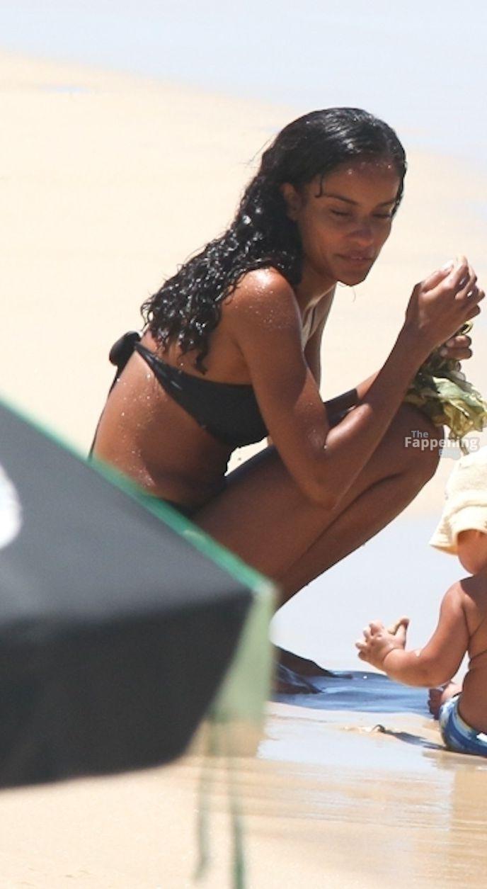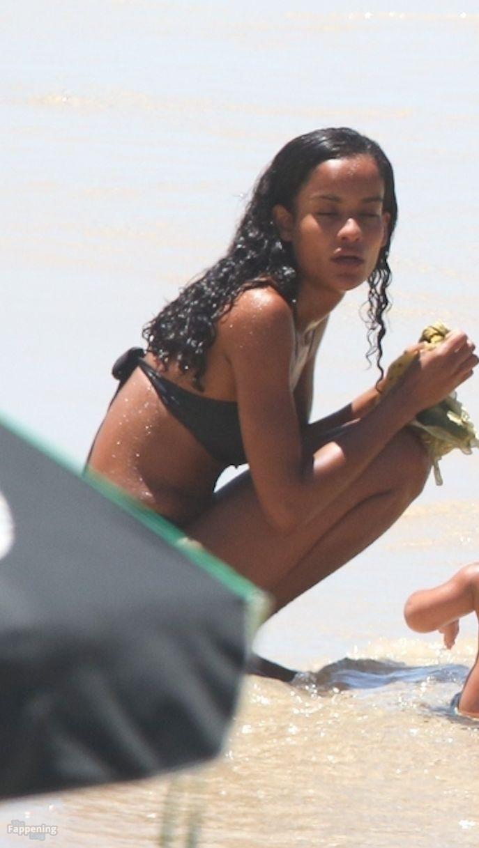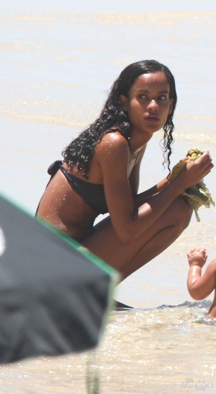 French actor and producer Vincent Cassel and his 29-year-old Brazilian partner, Narah Baptista, spend quality time with their son Caetano on the iconic shores of Rio de Janeiro at Ipanema Beach.