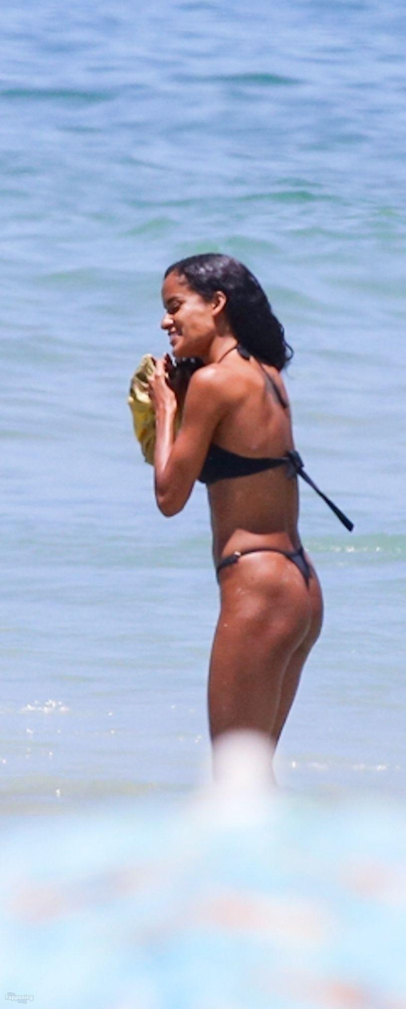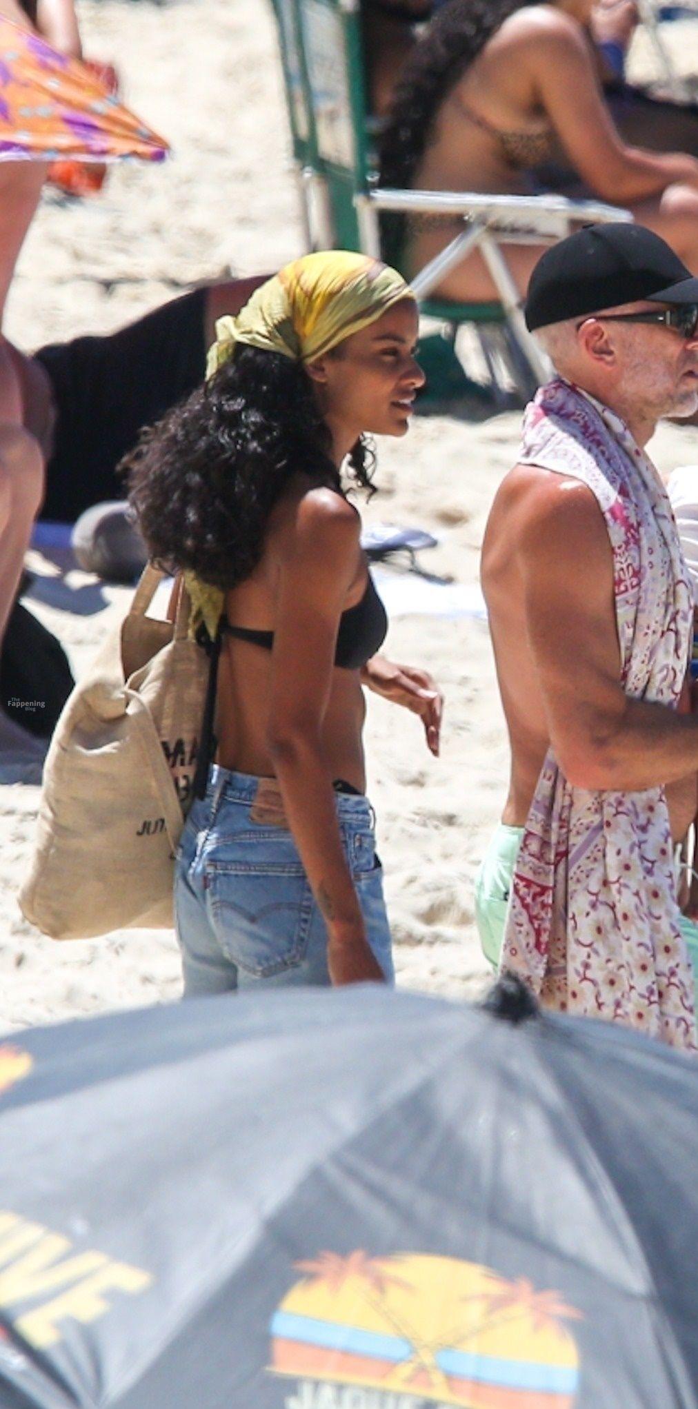 French actor and producer Vincent Cassel and his 29-year-old Brazilian partner, Narah Baptista, spend quality time with their son Caetano on the iconic shores of Rio de Janeiro at Ipanema Beach.