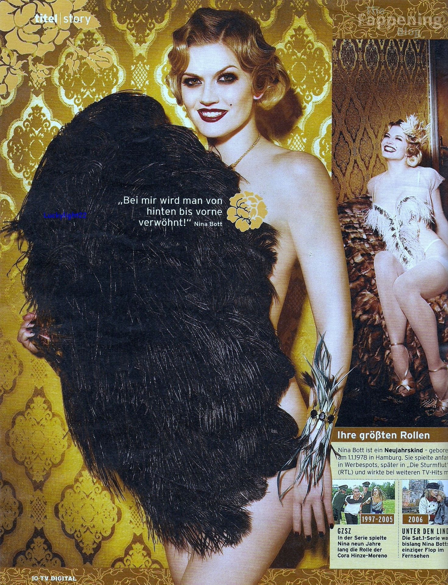 Nina Bott (born January 1, 1978, in Oldenburg) is a German actress known for her work in both television and film. She first gained recognition for her role in the popular German soap opera “Gute Zeiten, schlechte Zeiten” (Good Times, Bad Times) where she played the character Cora Hinze. Her involvement in the show, from 1997 to 2000, made her a familiar face in German households and established her as a prominent actress.