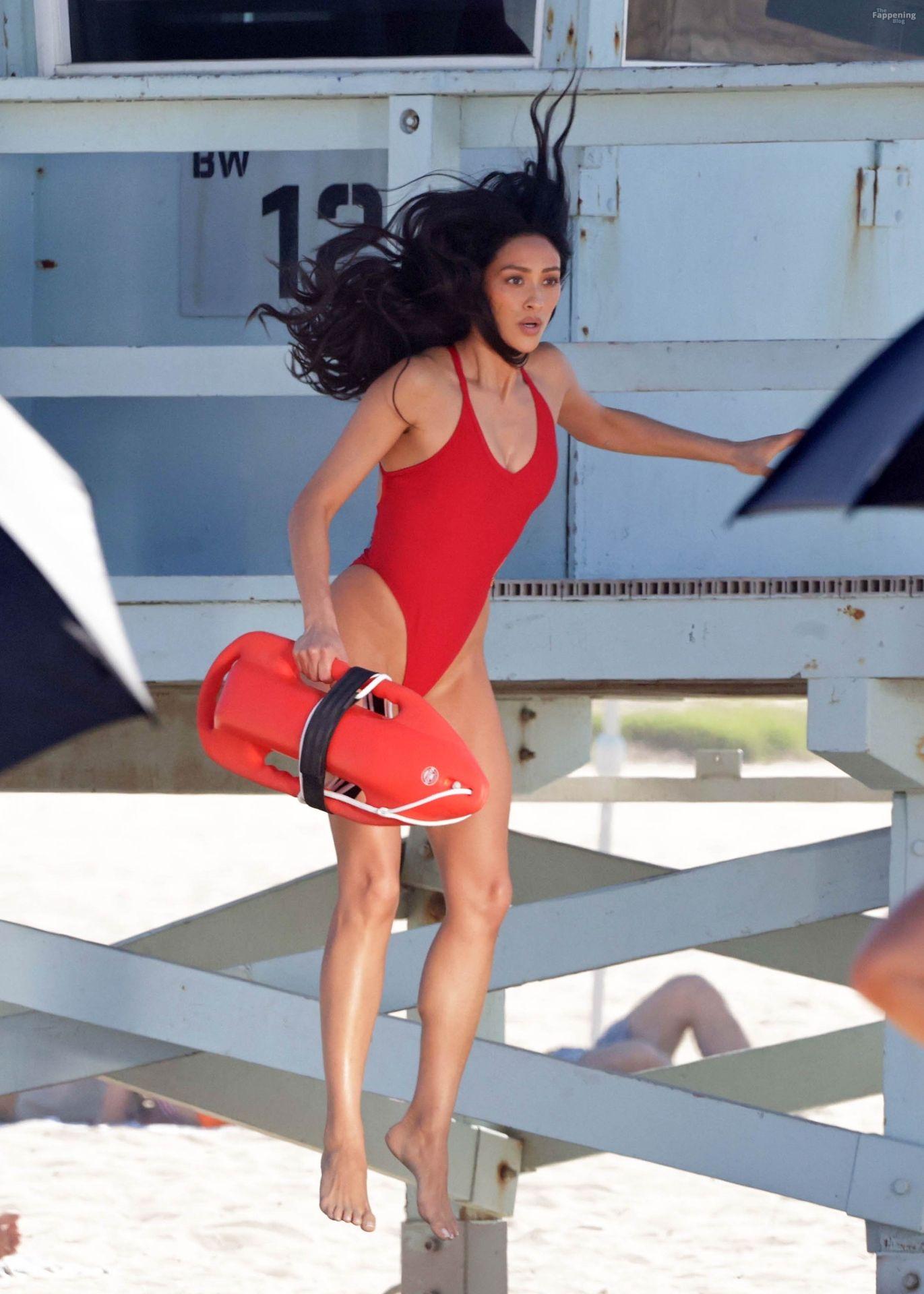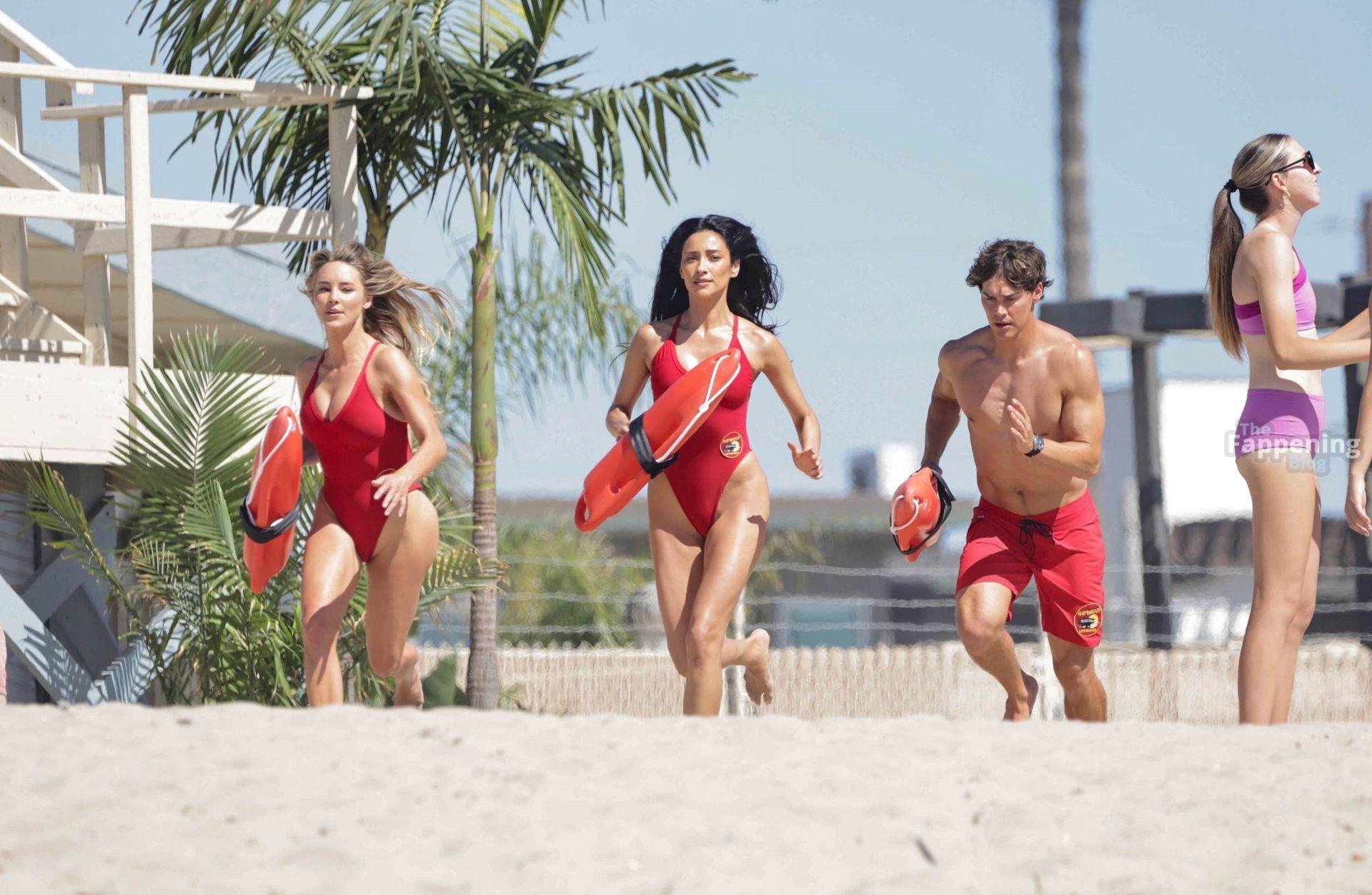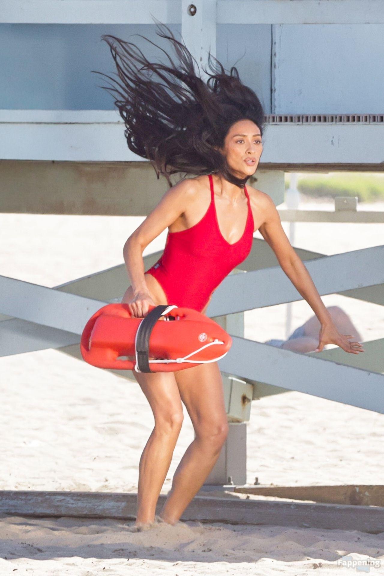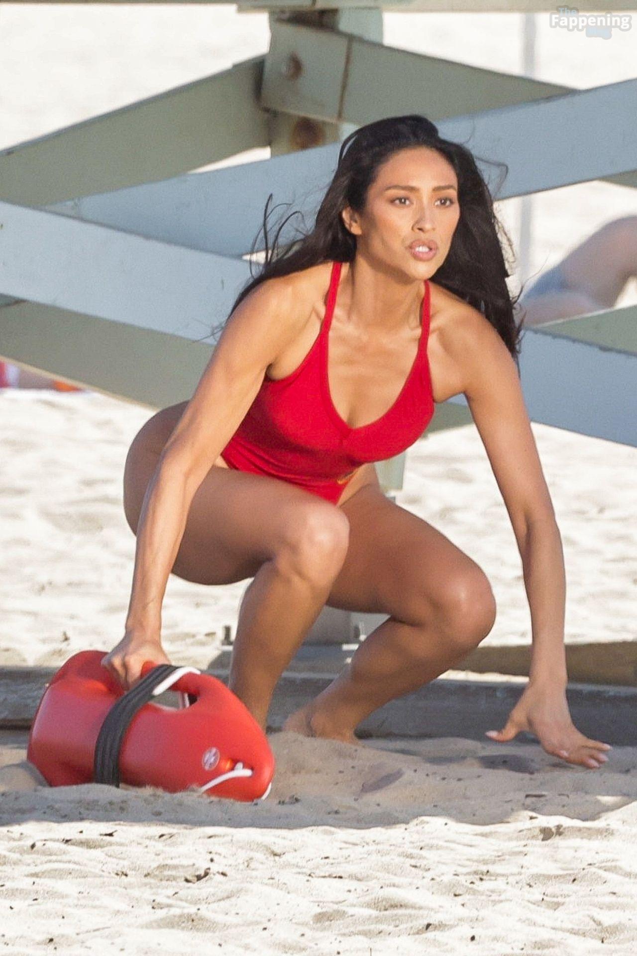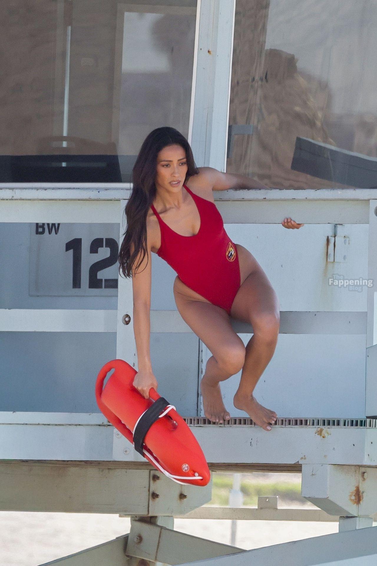 Shay Mitchell displayed her sexy beach-ready body while filming scenes this morning for Fox’s “Baywatch” Reboot.