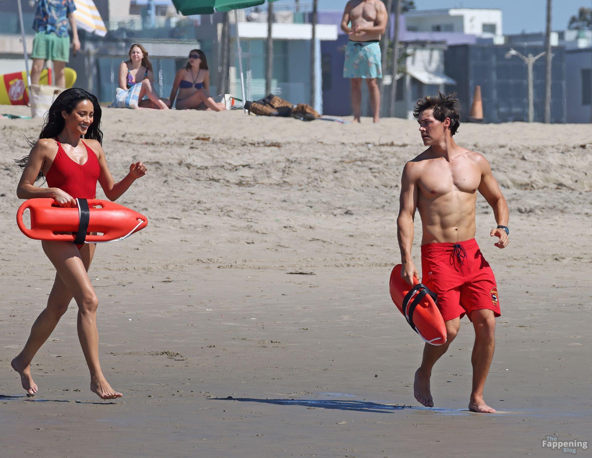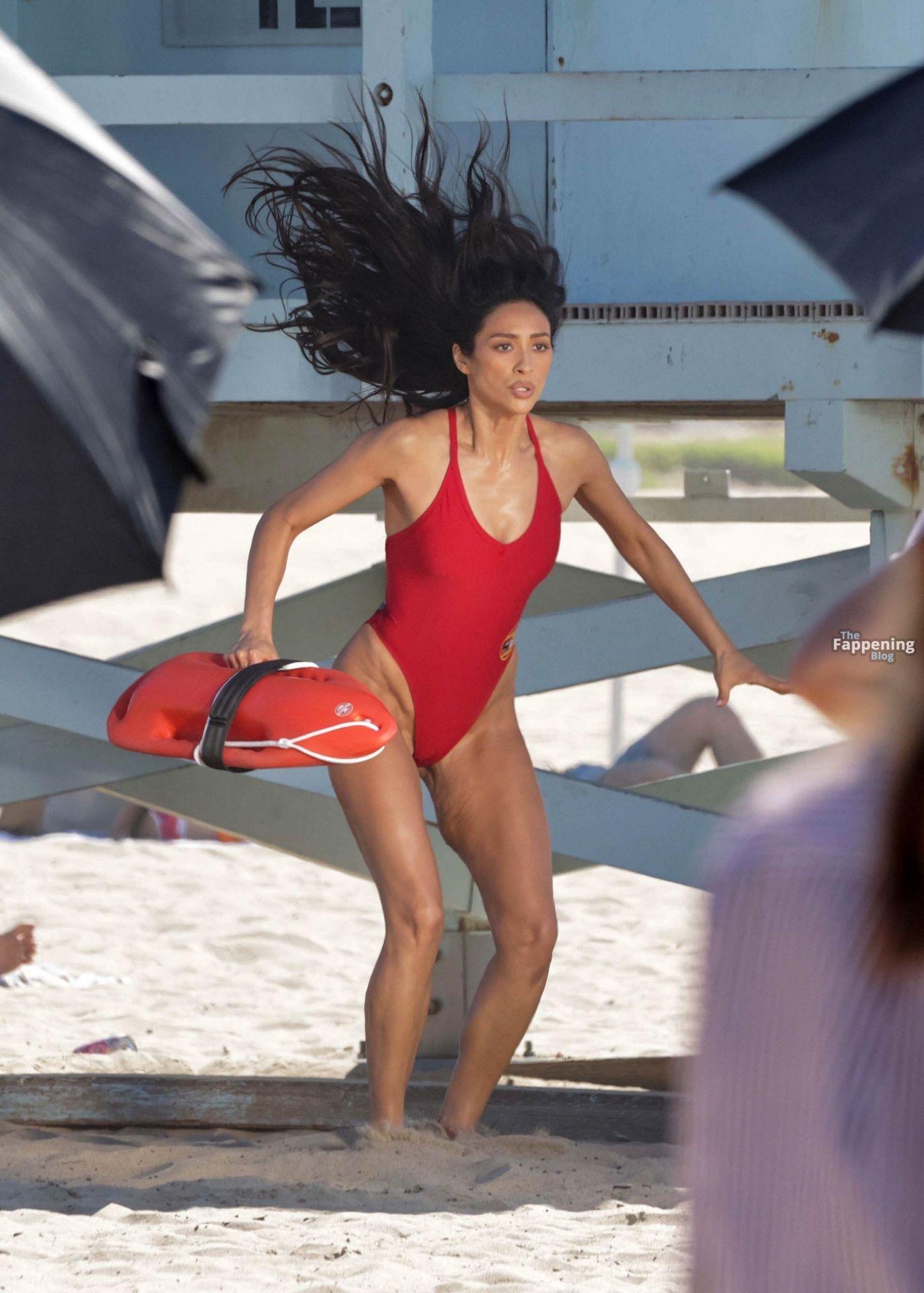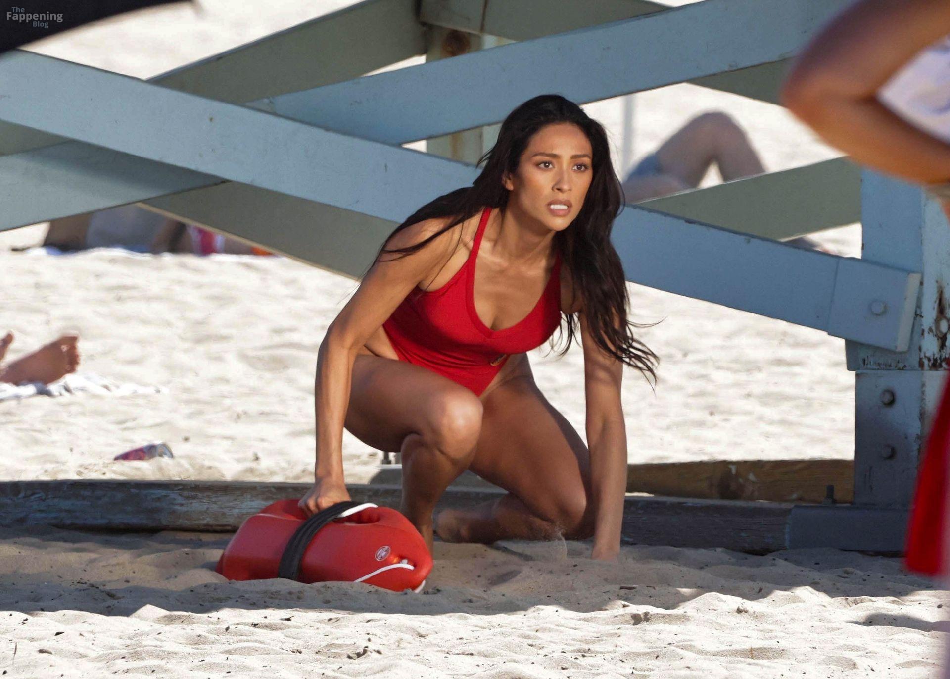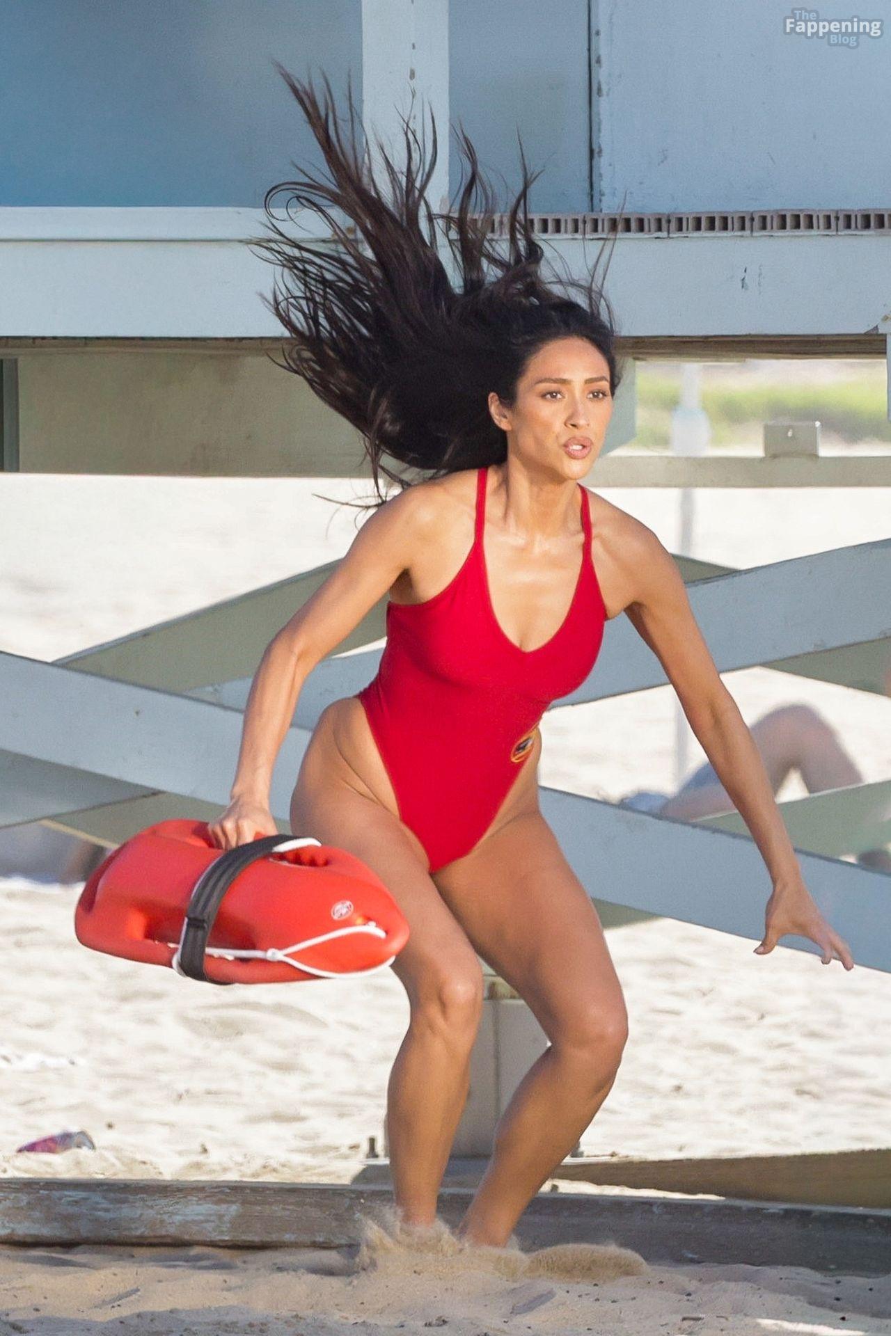 Shay Mitchell displayed her sexy beach-ready body while filming scenes this morning for Fox’s “Baywatch” Reboot.